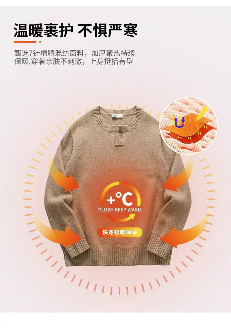 무거운 480G 자체 가열 스웨터 소년 봄과 가을 새로운 회색 트렌드 조커 느슨한 긴 소매 캐주얼 겉옷 남성