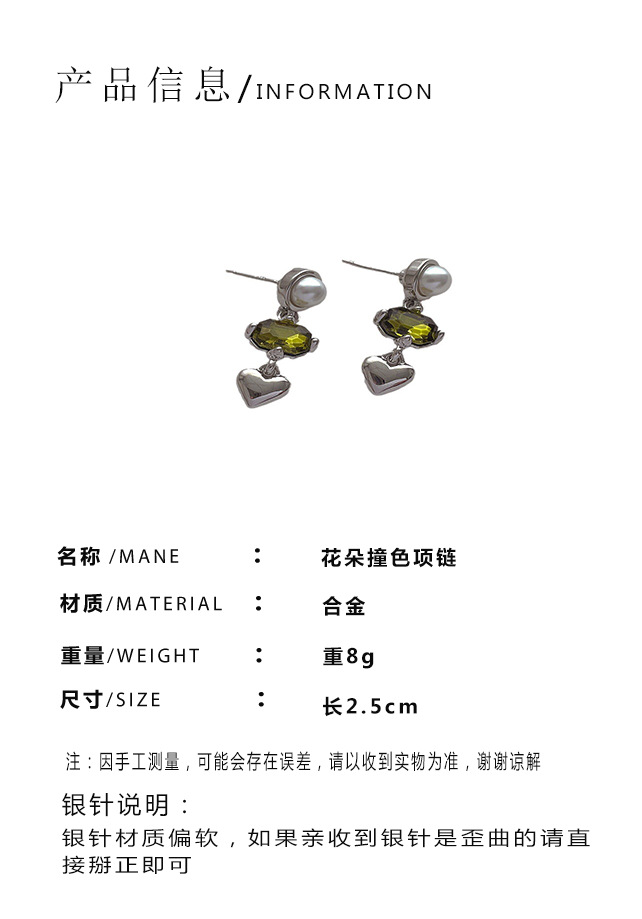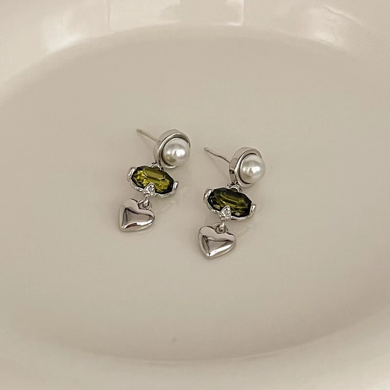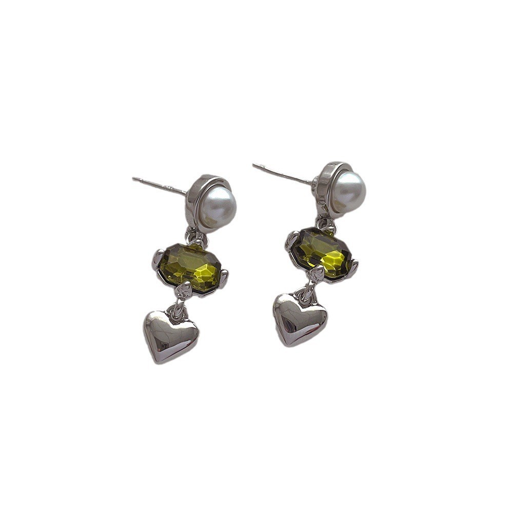 심플 디자인 불규칙한 녹색 지르콘 사랑 술 귀걸이 여성 틈새 기질 하이 엔드 올 매치 귀걸이스토어 가기