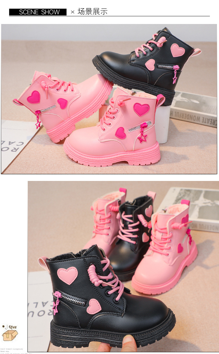 국경 간 소녀 마틴 부츠 2024 가을 및 겨울 새로운 어린이 가죽 부츠 기모 발목 부츠 소녀 싱글 부츠 웨스턴 스타일 프린세스 부츠스토어 가기