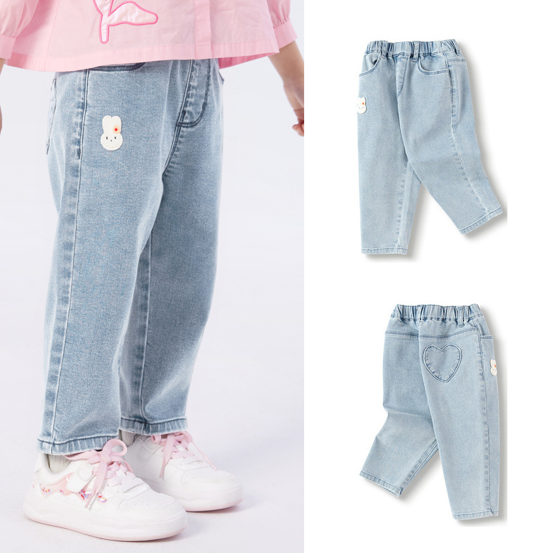새로운 바지 어린이 착용 아기 어린이 바지 청바지 소녀 스트레이트 2025 느슨한 가을 새 가을 착용