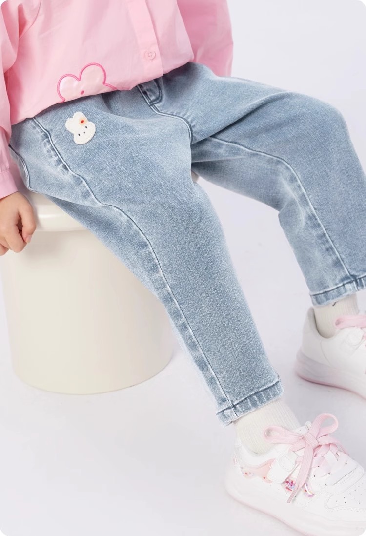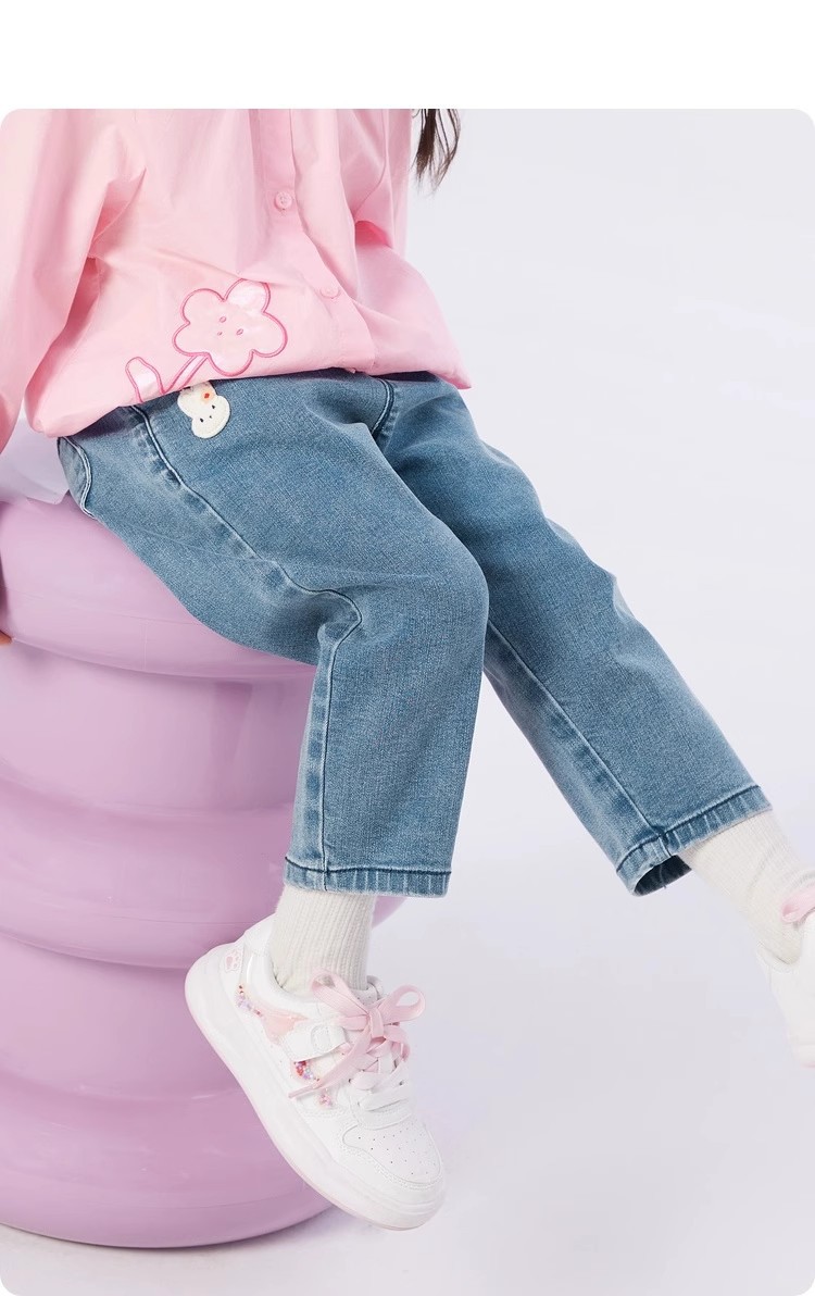 새로운 바지 어린이 착용 아기 어린이 바지 청바지 소녀 스트레이트 2025 느슨한 가을 새 가을 착용스토어 가기