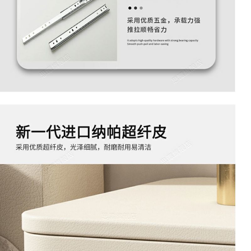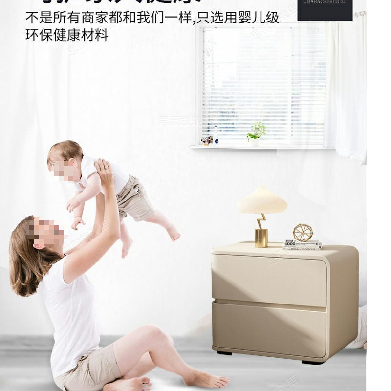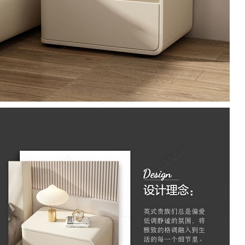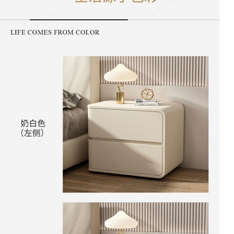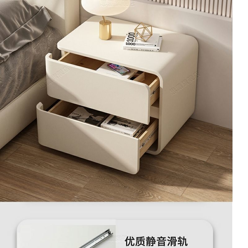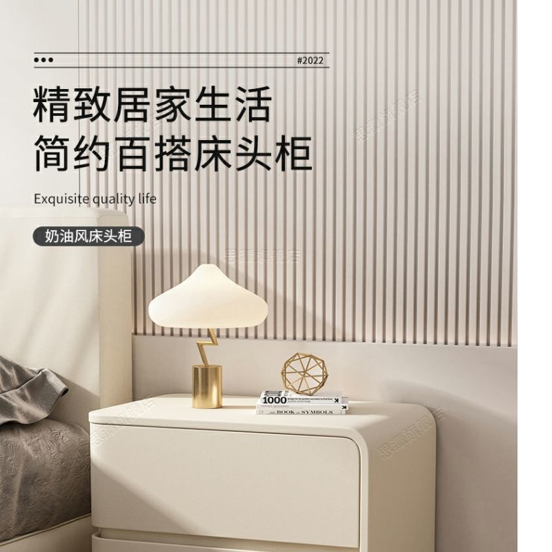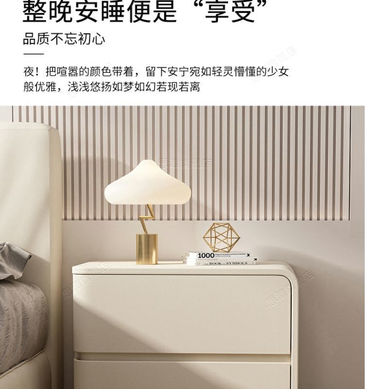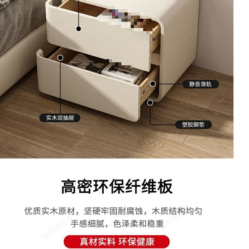크림 스타일 침대 옆 테이블 빛 고급 작은 단단한 나무 가죽 침실 높은 수준의 설치-무료 침실 캐비닛 미니멀리스트 저장 캐비닛