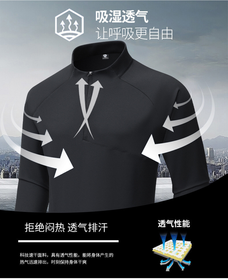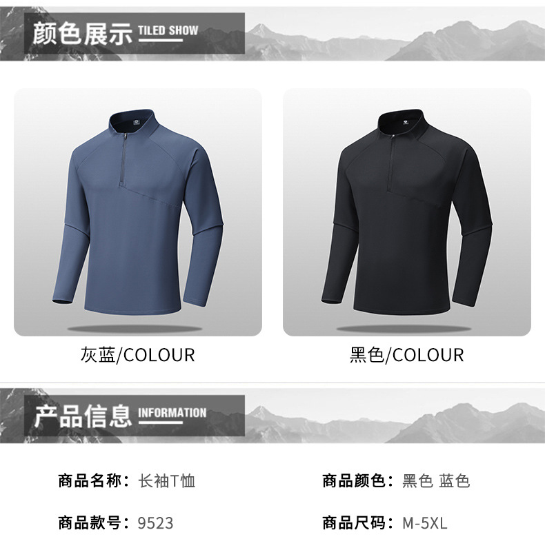 2025 봄과 가을 지퍼 하프 칼라 남성용 긴 소매 운동복 야외 달리기 빠른 건조 의류 남성용 스포츠 티셔츠 하프 지퍼