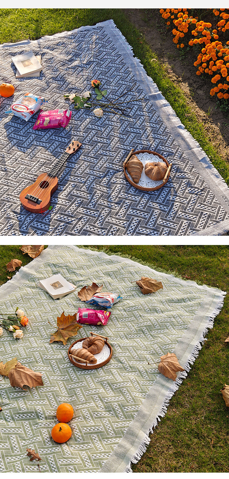[국경 전용] T 자형 격자 피크닉 매트 방습 매트 피크닉 천 야외 캠핑 담요 흰색 담요 비치 매트스토어 가기