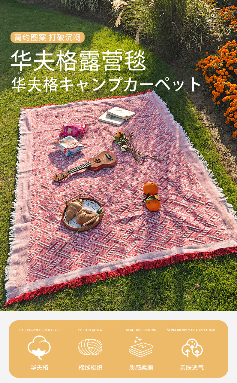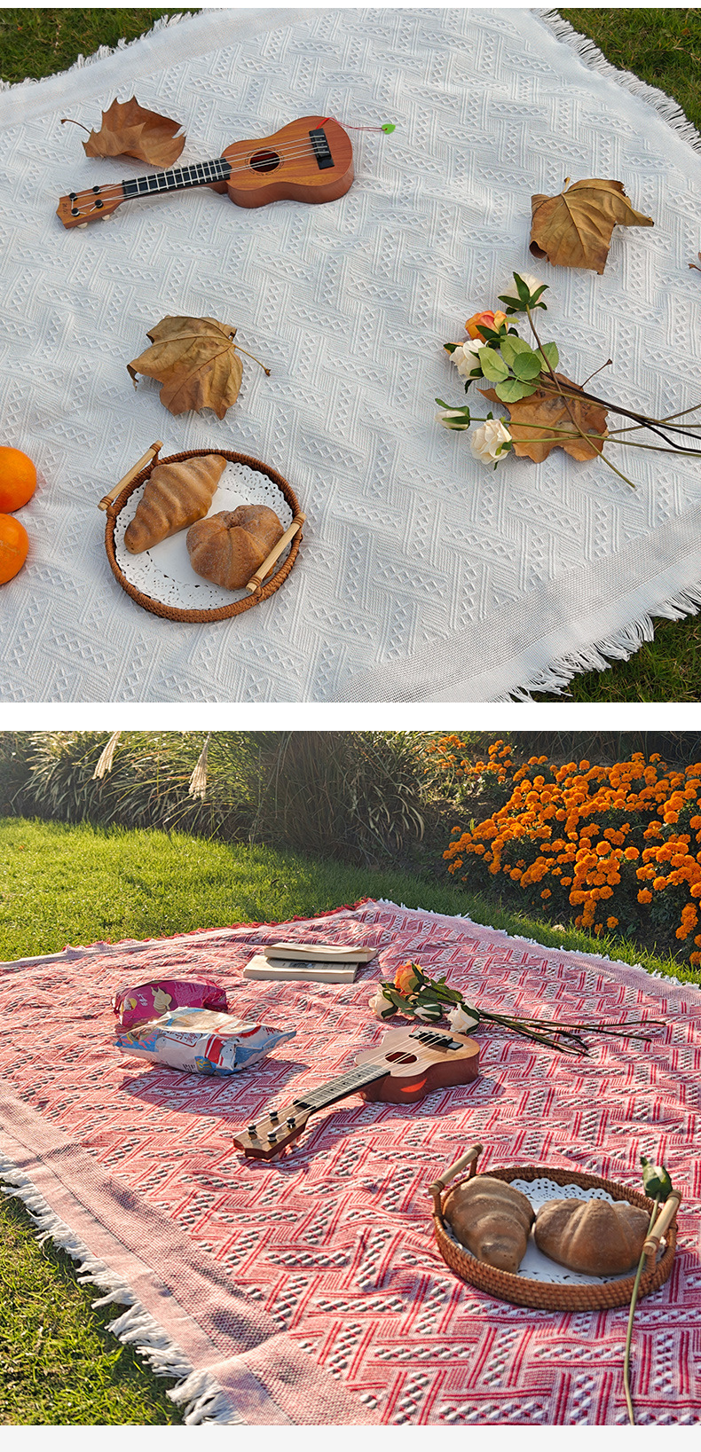 [국경 전용] T 자형 격자 피크닉 매트 방습 매트 피크닉 천 야외 캠핑 담요 흰색 담요 비치 매트