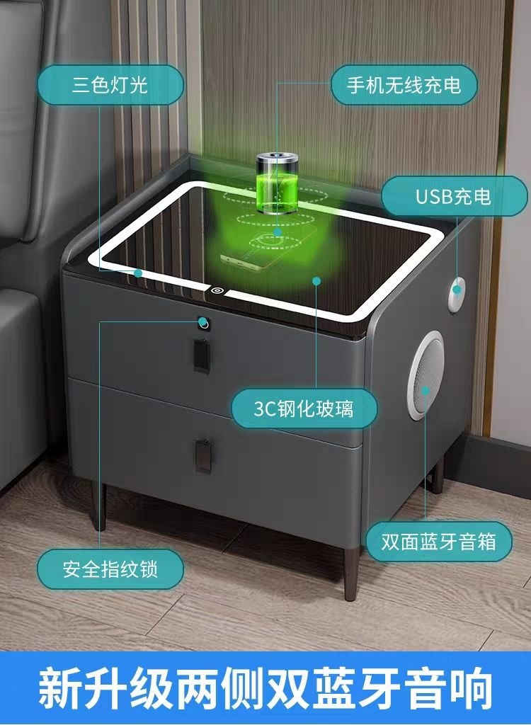 스마트 침대 테이블 현대 간단한 단단한 나무 인터넷 인기있는 간단한 마스터 침실 다기능 무선 충전 블루투스 스피커