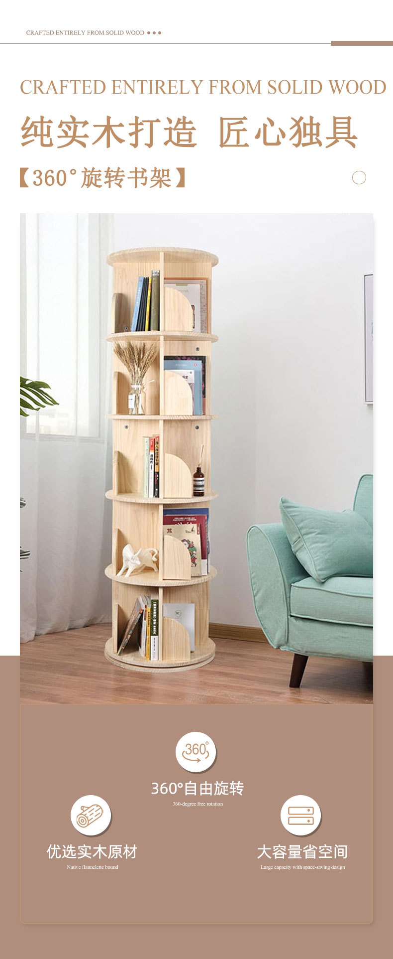 모든 단단한 나무 회전 책꽂이 360 도 인터넷 기념 바닥 책장 홈 사물함 작은 아파트 코너 거실 보관
