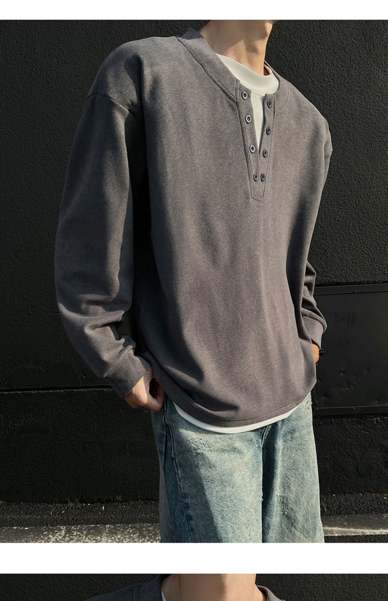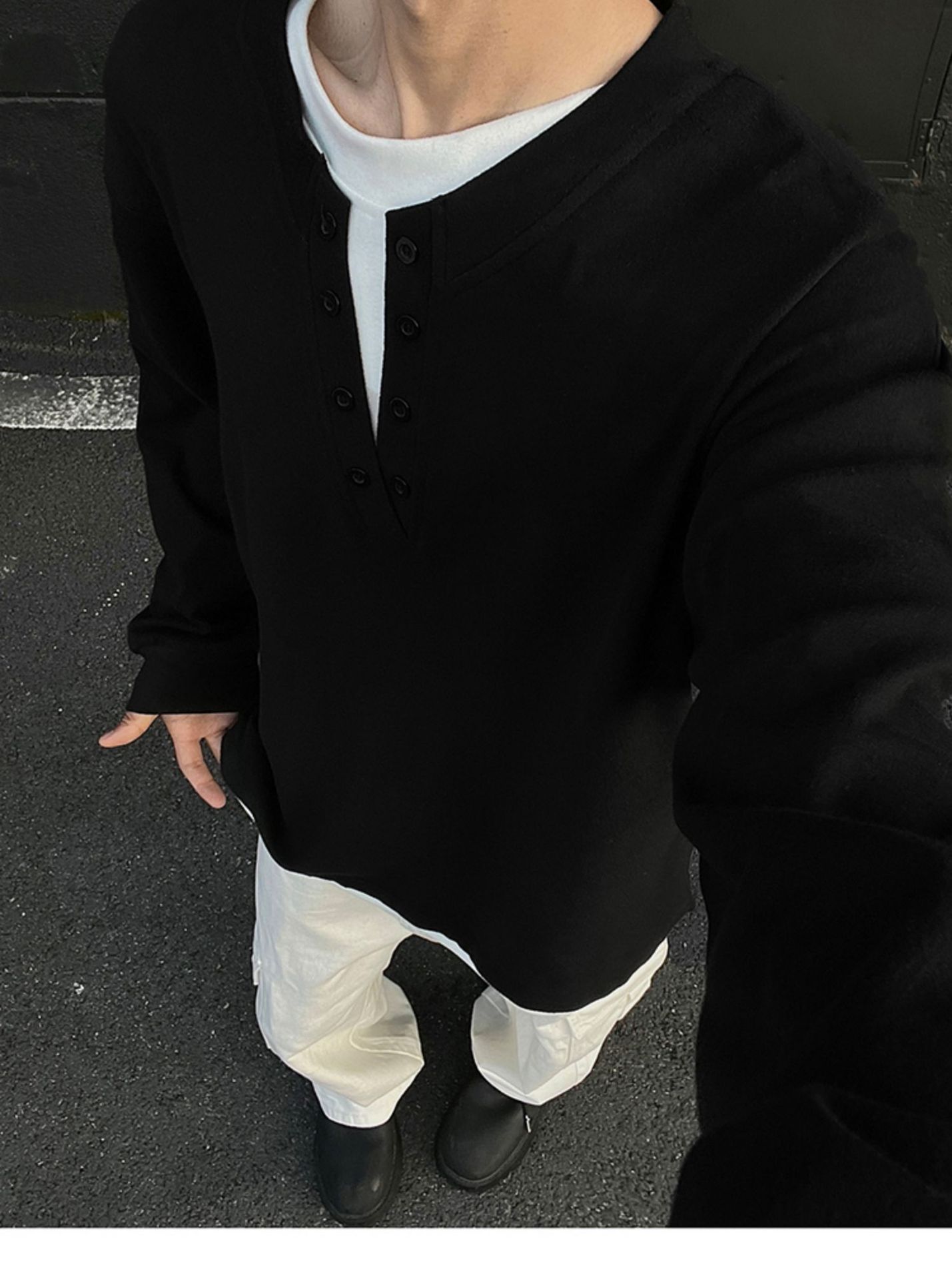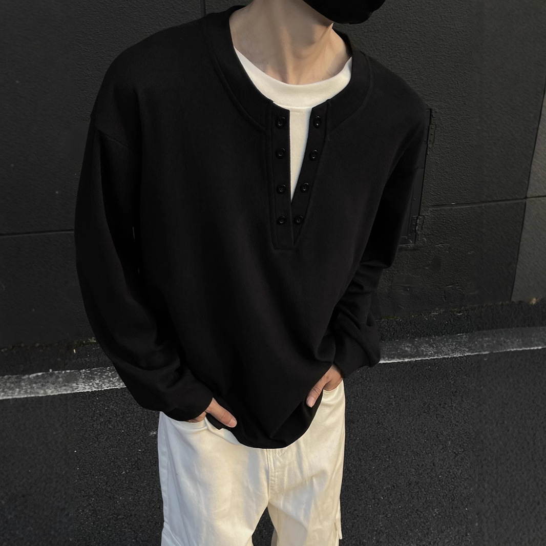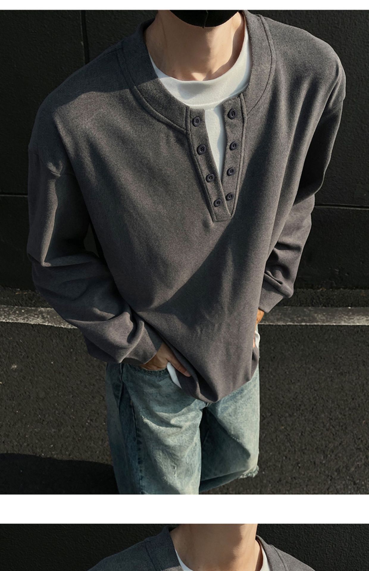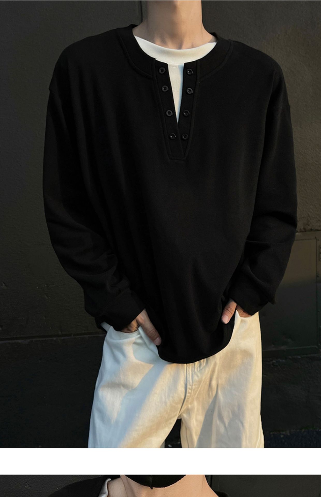 양면 벨벳 헨리 칼라 긴팔 티셔츠 남자 가을 겨울 미국 패션 브랜드 Ins 가짜 투피스 듀플렉스 핸즈섬 내베이스 셔츠스토어 가기