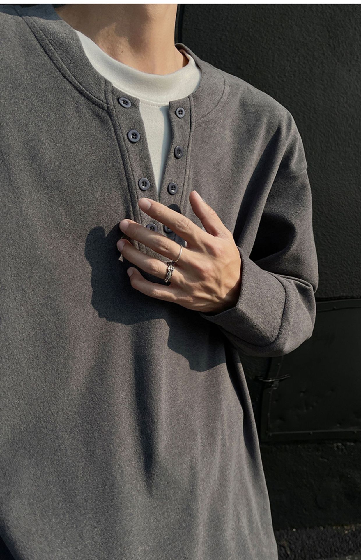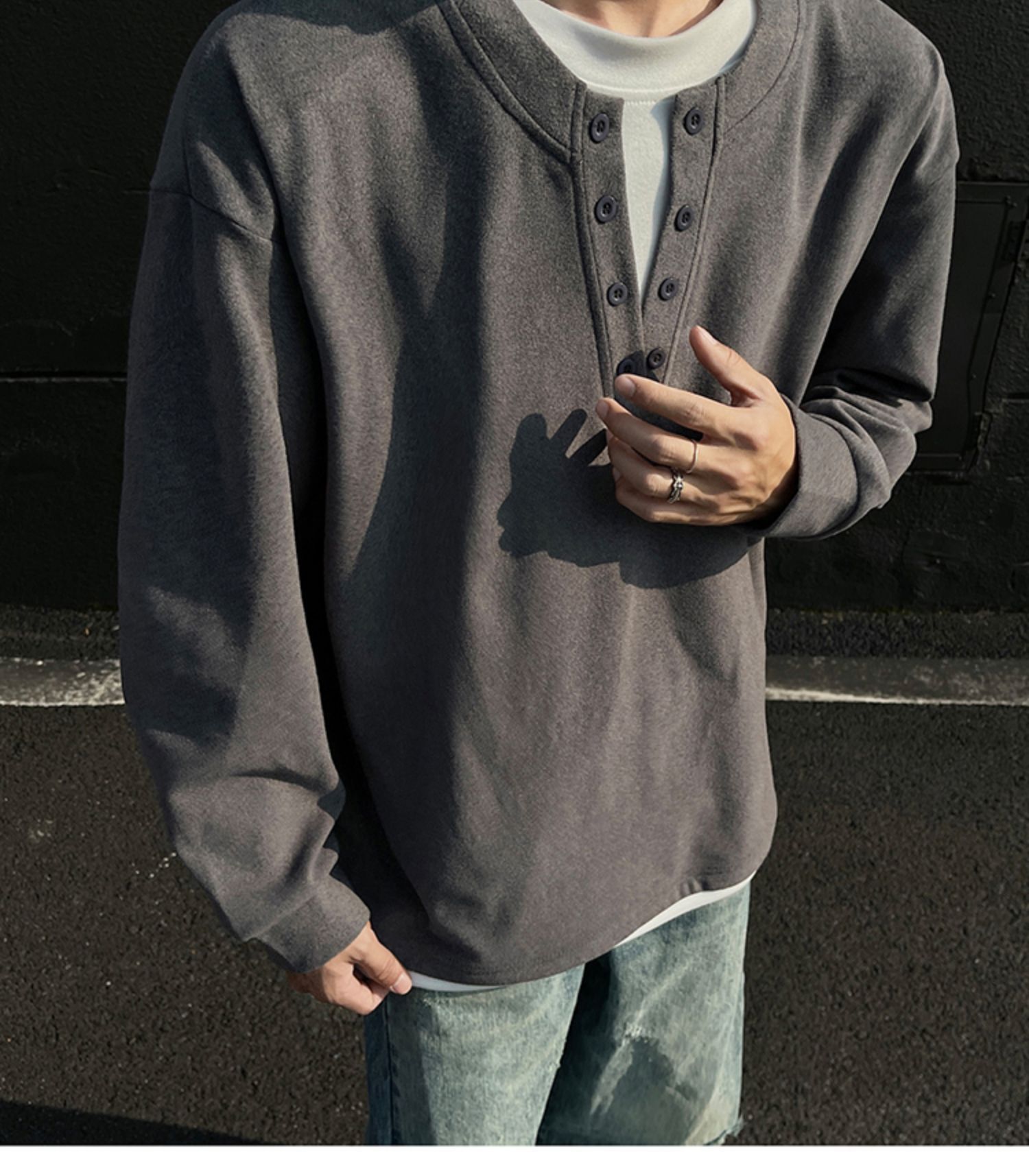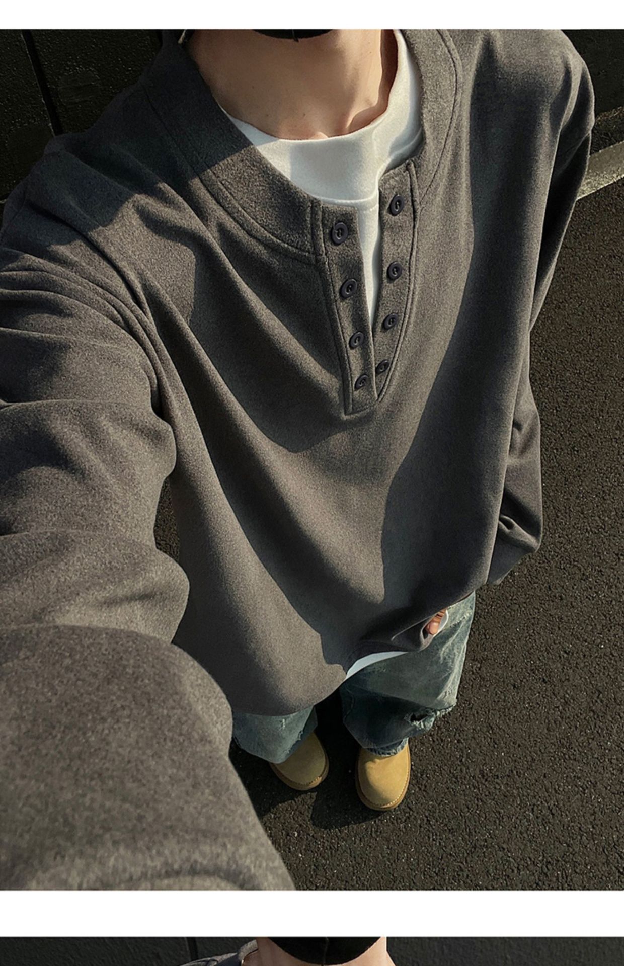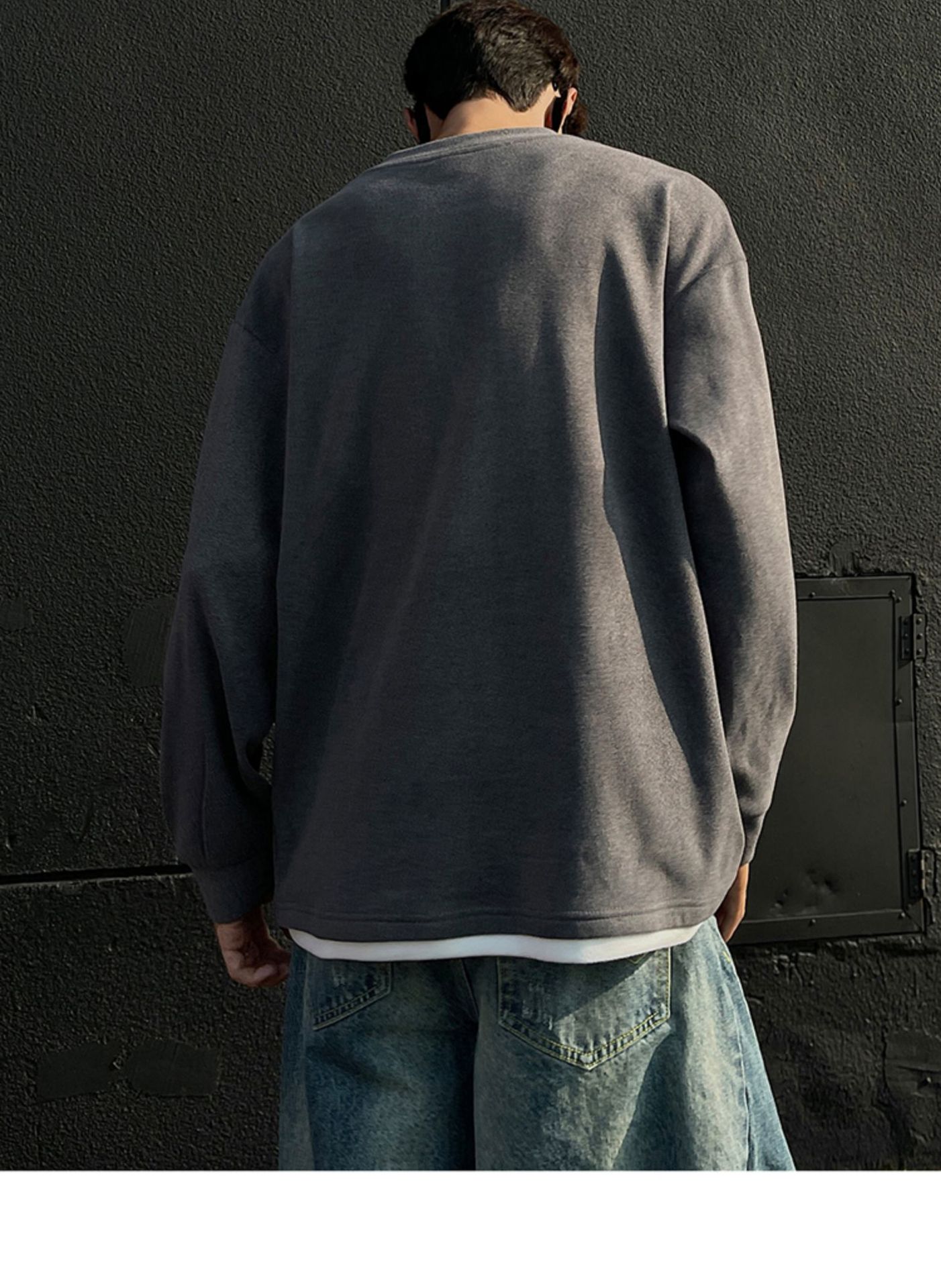 양면 벨벳 헨리 칼라 긴팔 티셔츠 남자 가을 겨울 미국 패션 브랜드 Ins 가짜 투피스 듀플렉스 핸즈섬 내베이스 셔츠스토어 가기