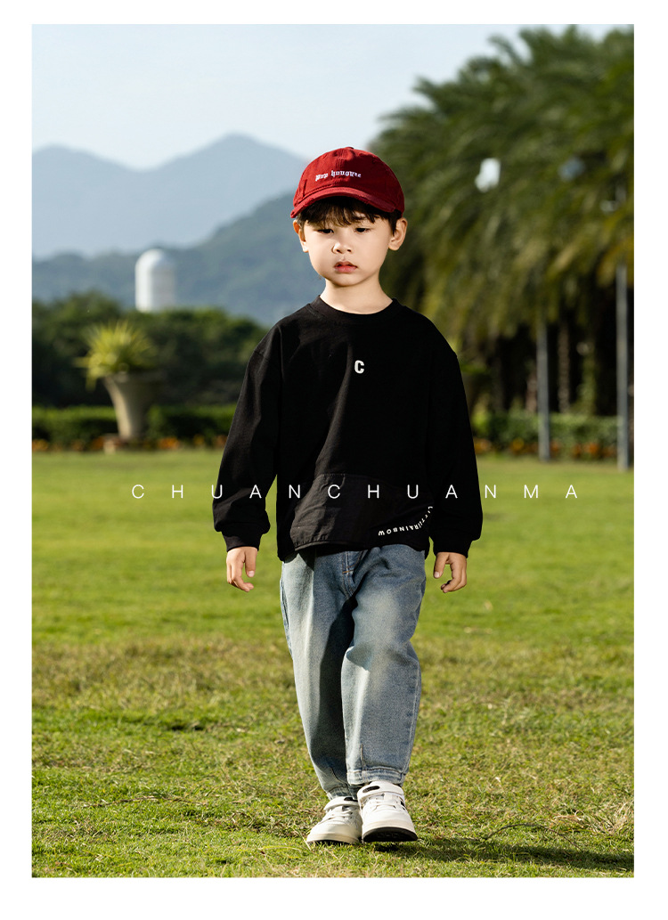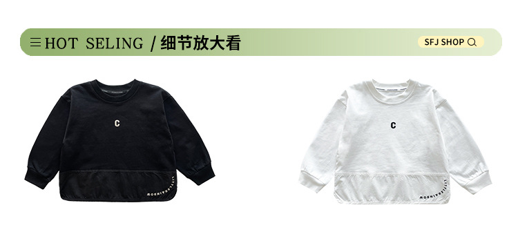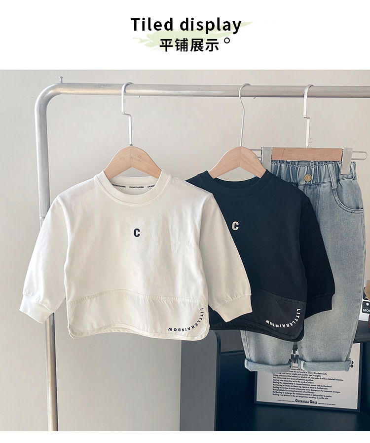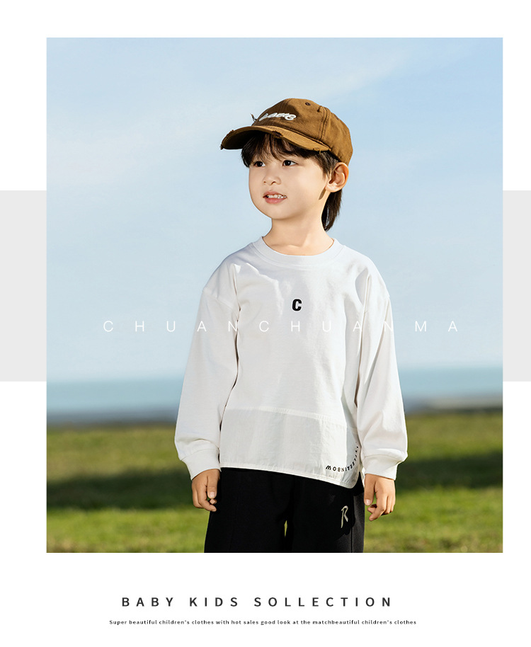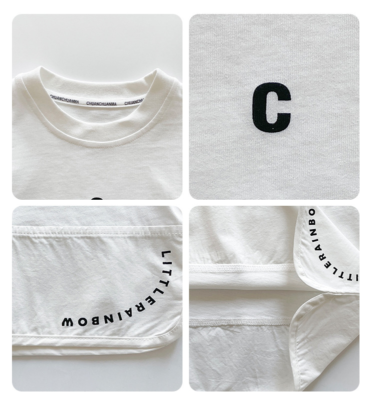 윈드밸리 2025 봄새 아동복 한국식 스플라이스 레터 화이트 티셔츠 남녀용 올매치 베이스 셔츠