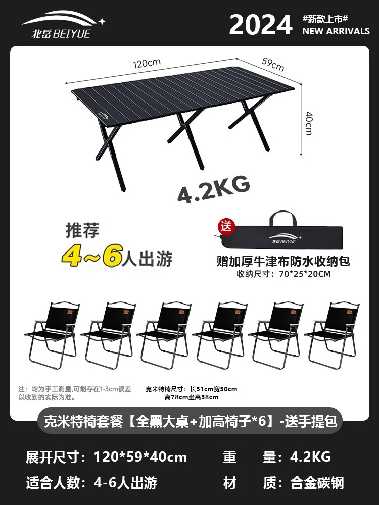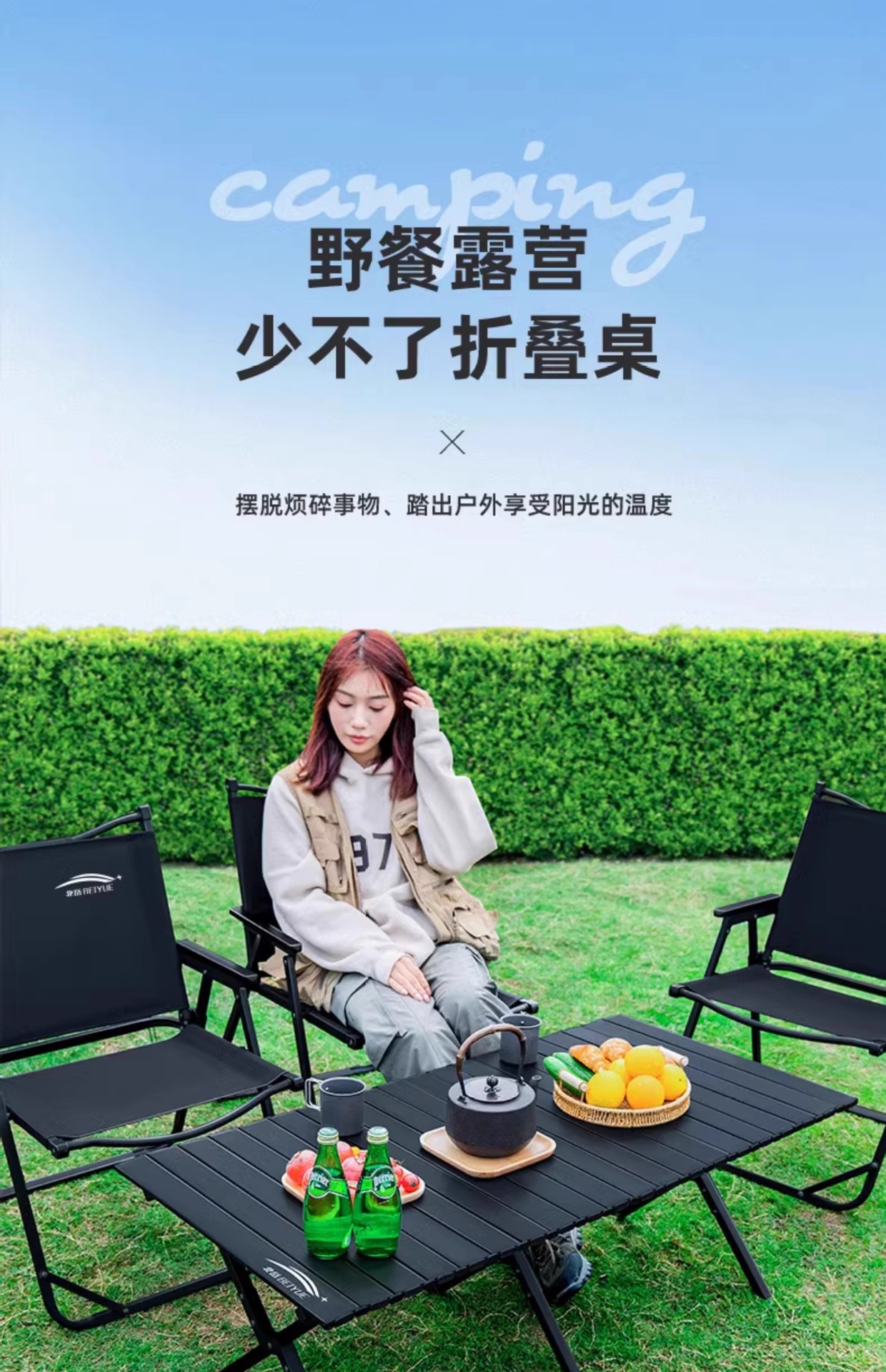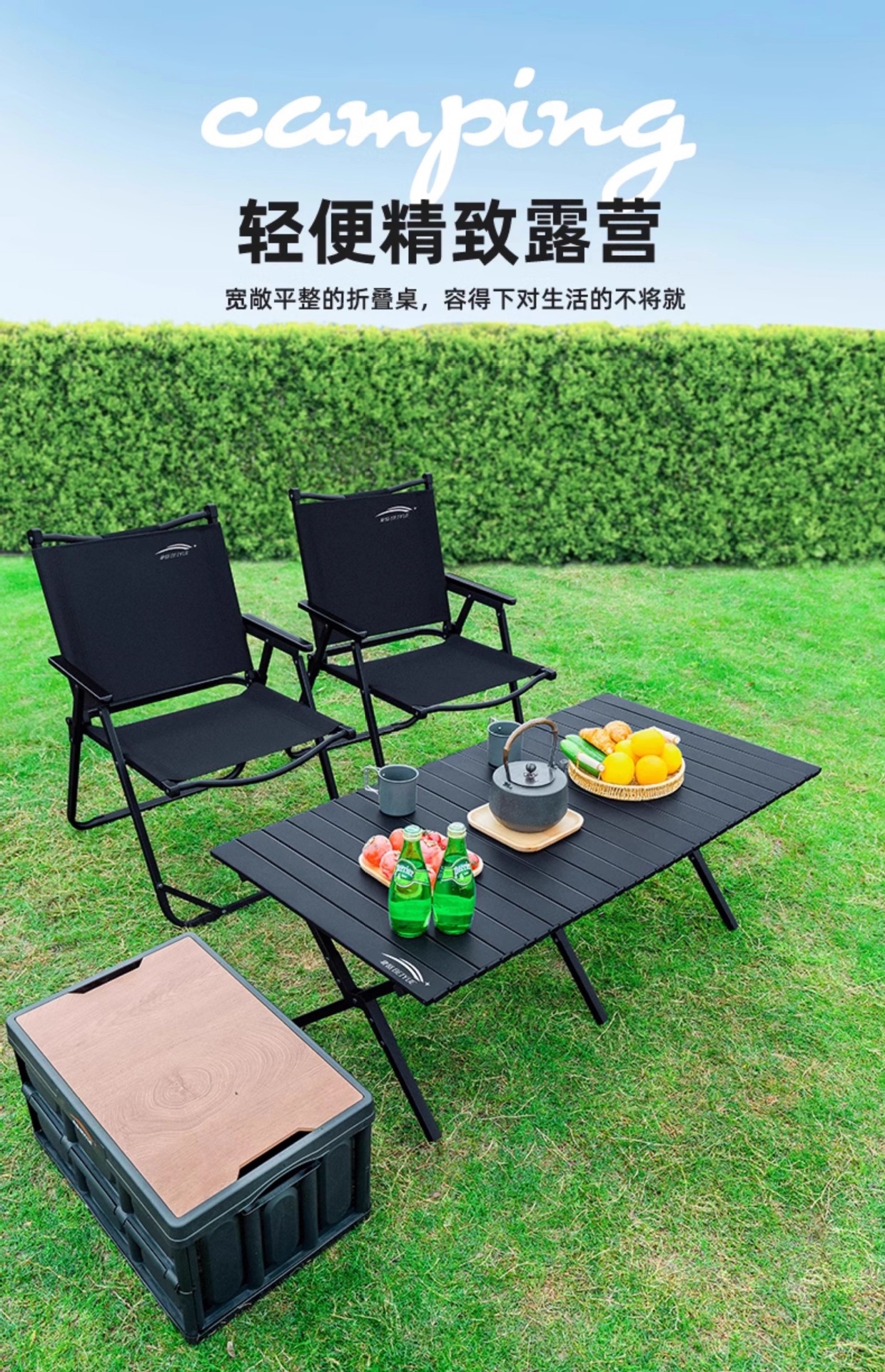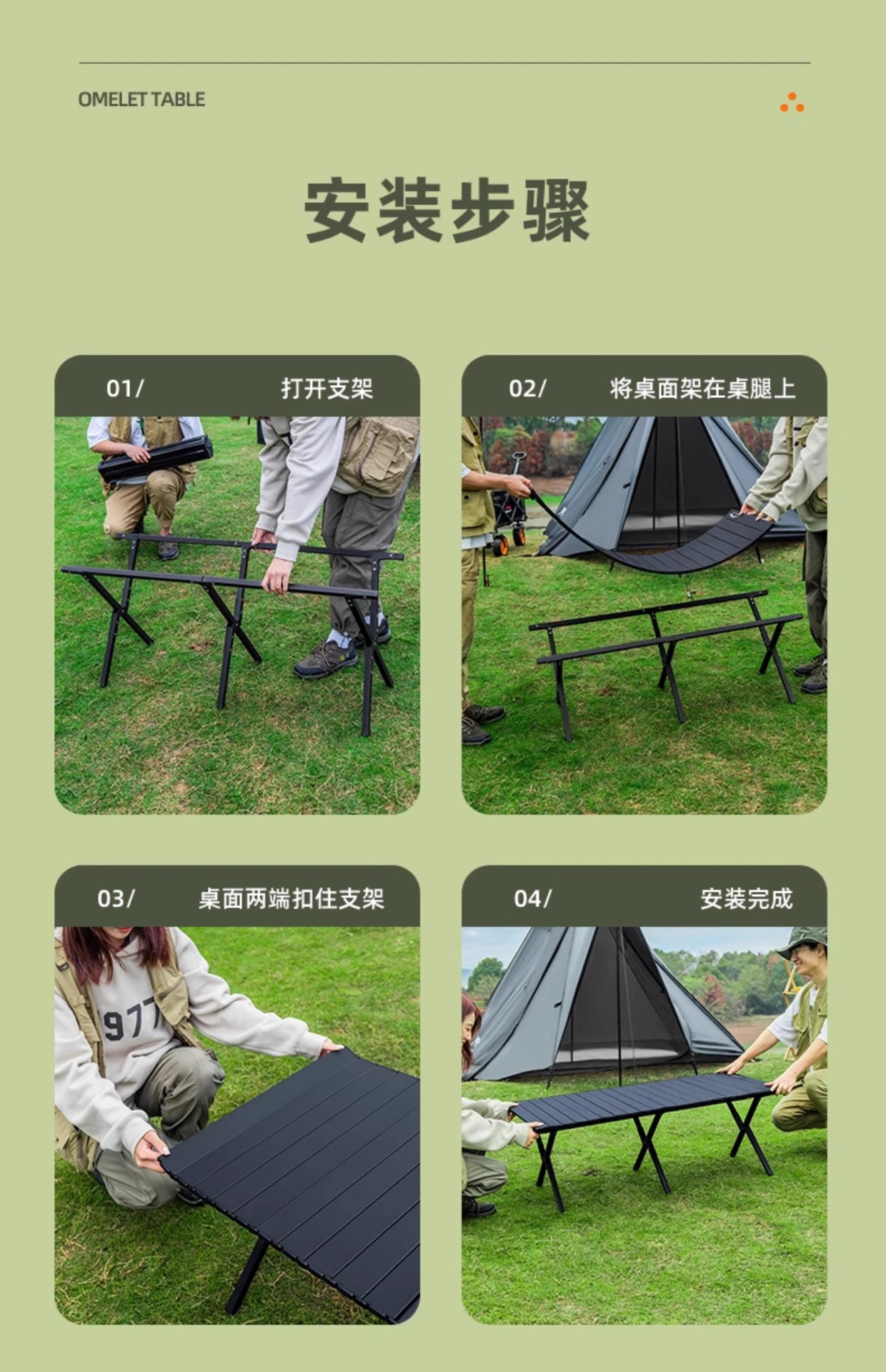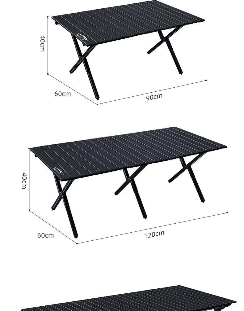 야외 접이식 테이블 휴대용 계란 롤 테이블 블랙 캠핑 장비 공급 전체 세트 피크닉 테이블과 의자 BBQ 긴 테이블스토어 가기