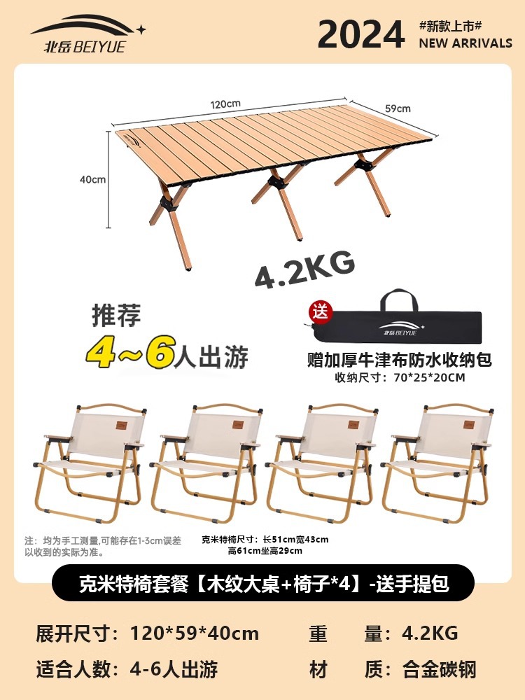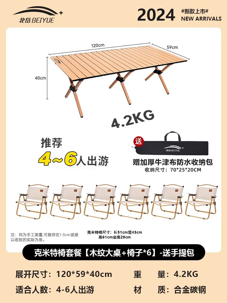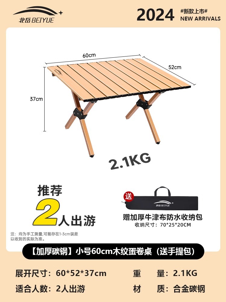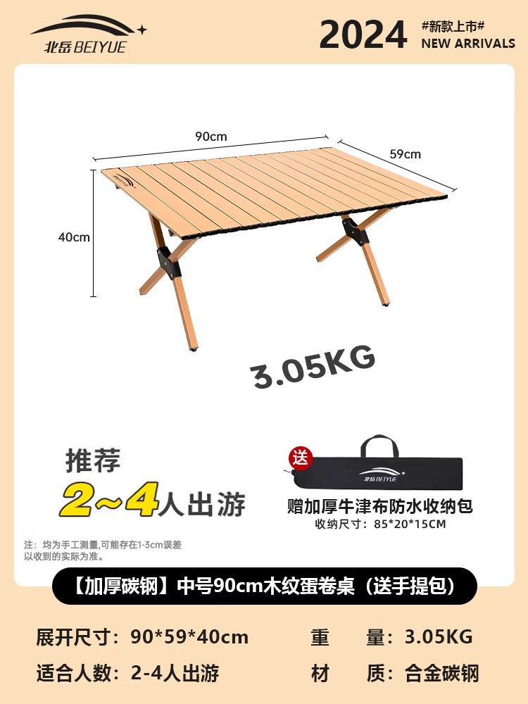• [두꺼운 탄소강] 작은 60cm 나뭇결 계란말이 테이블(핸드백 포함)