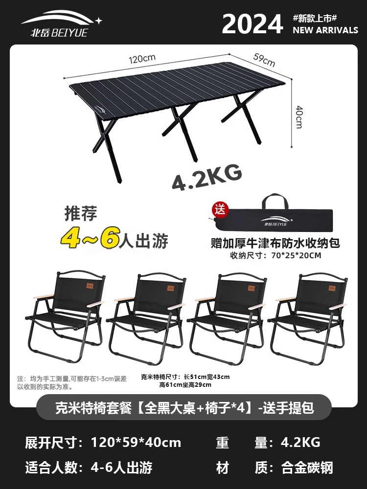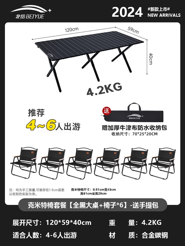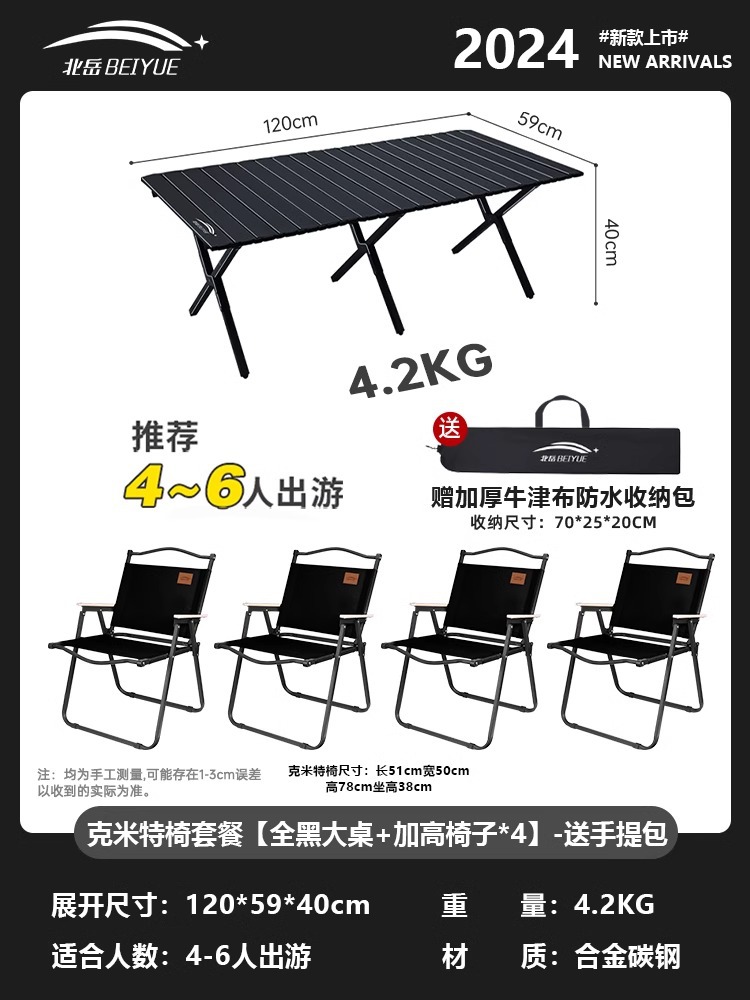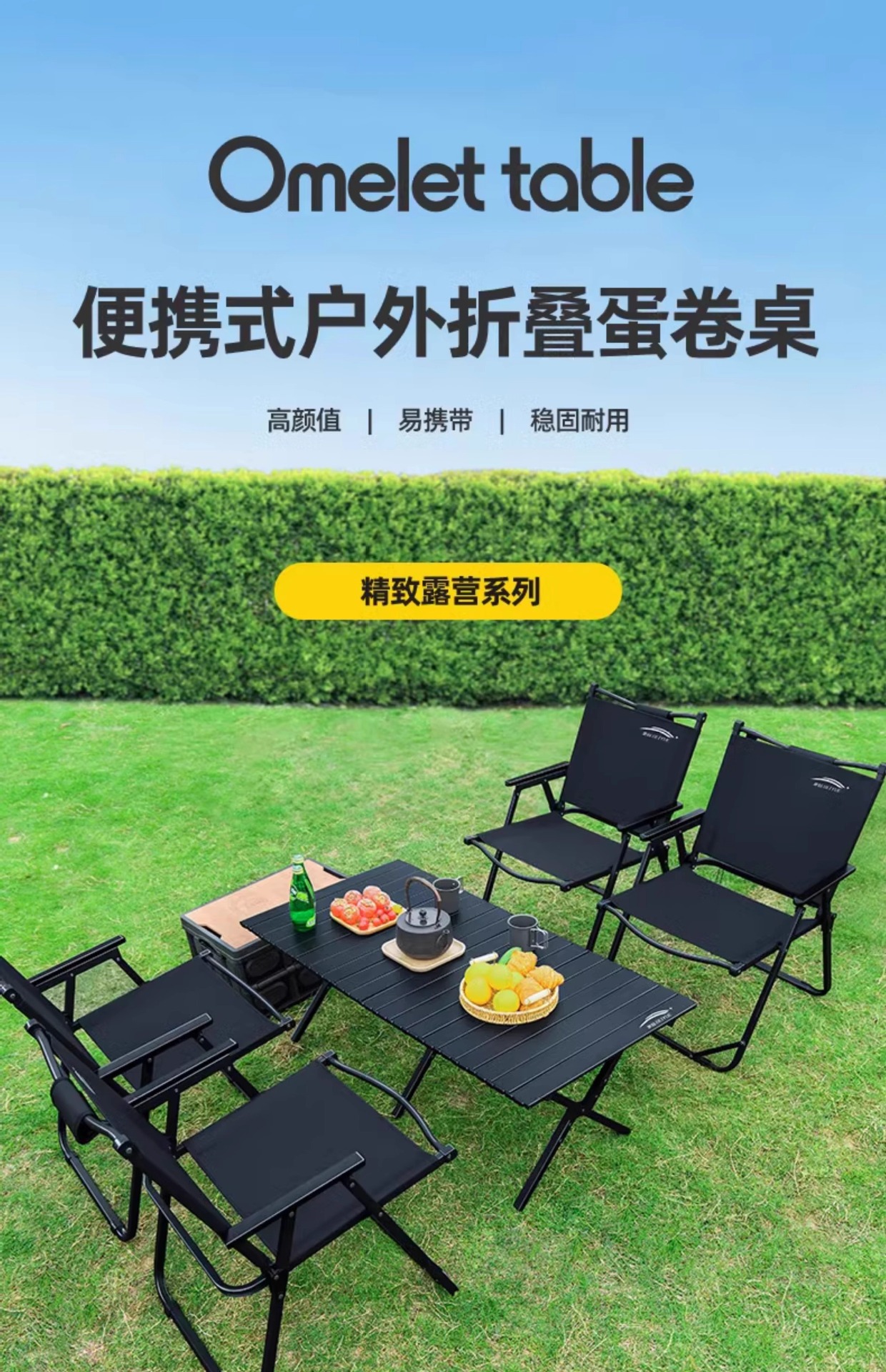 야외 접이식 테이블 휴대용 계란 롤 테이블 블랙 캠핑 장비 공급 전체 세트 피크닉 테이블과 의자 BBQ 긴 테이블