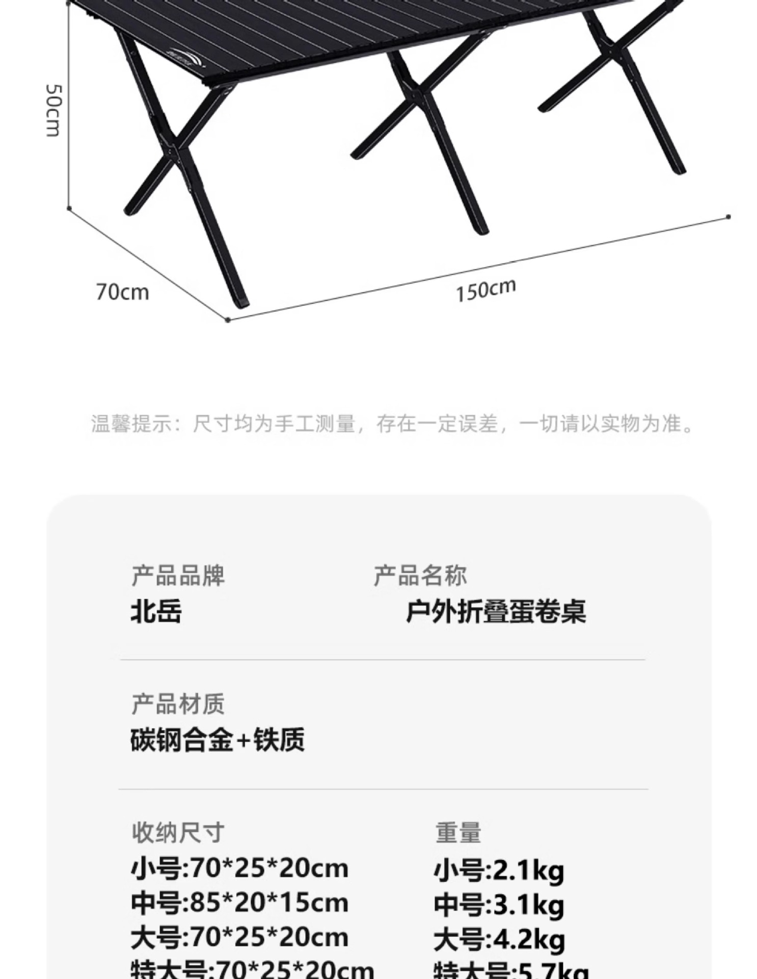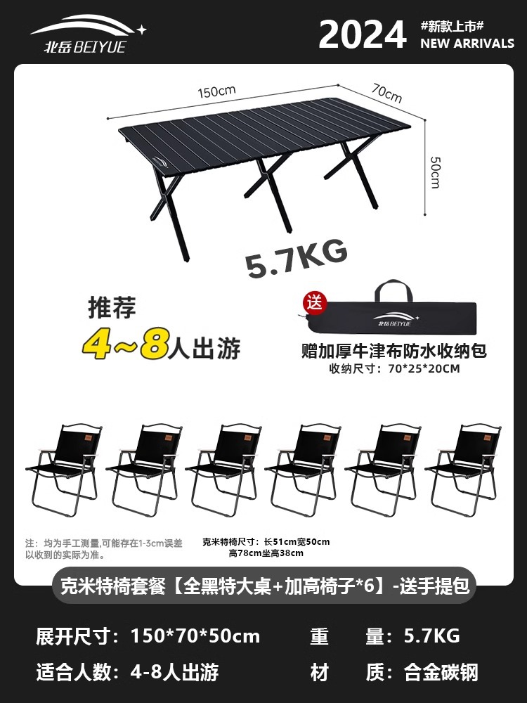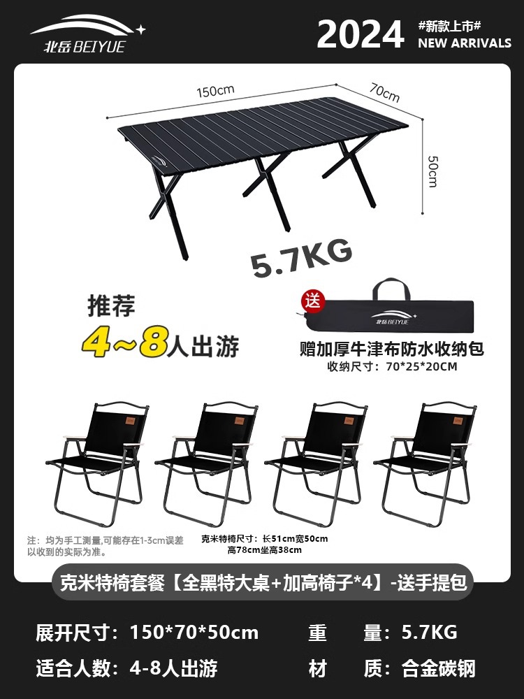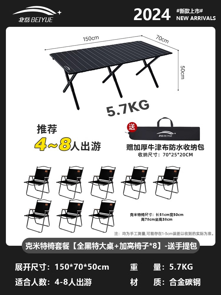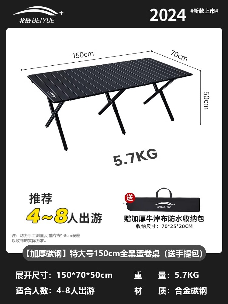 • [두꺼운 탄소강] 초대형 150cm 올블랙 에그롤 테이블(핸드백 포함)