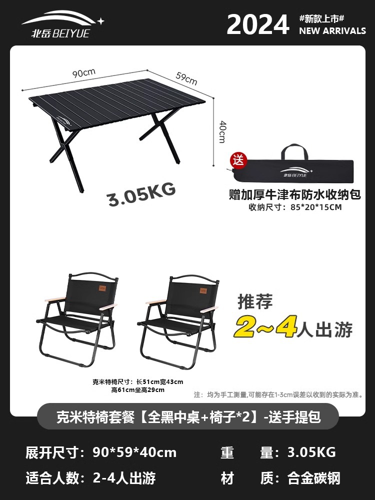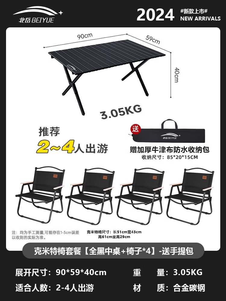 • [두꺼운 탄소강] 중형 90cm 올블랙 에그롤 테이블(핸드백 포함)