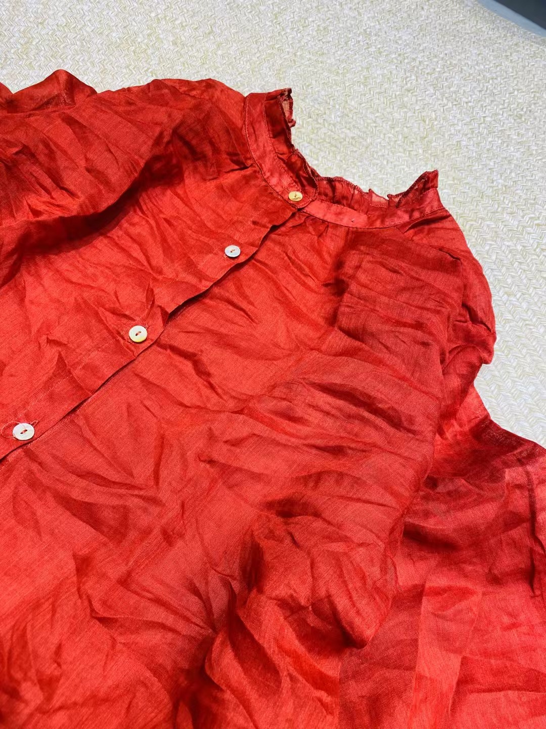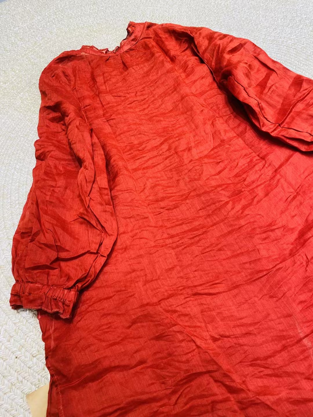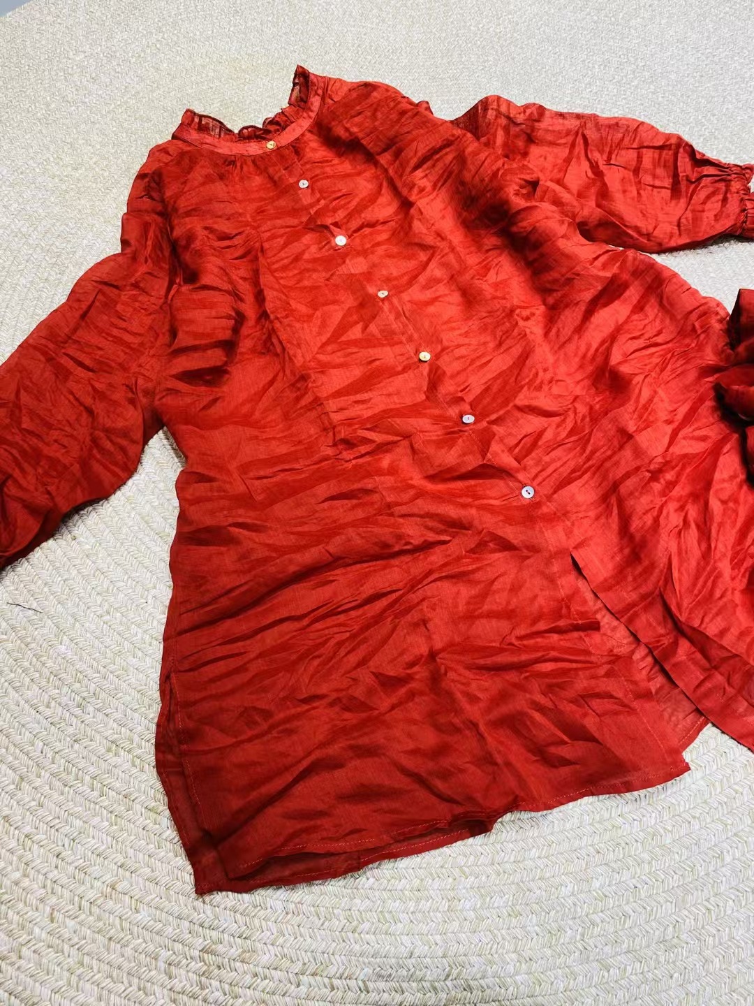 Ramie Ear Blouse 여자 중간 길이 2025 봄 새로운 느슨한 올매치 레드 예술적 새해 원피스스토어 가기