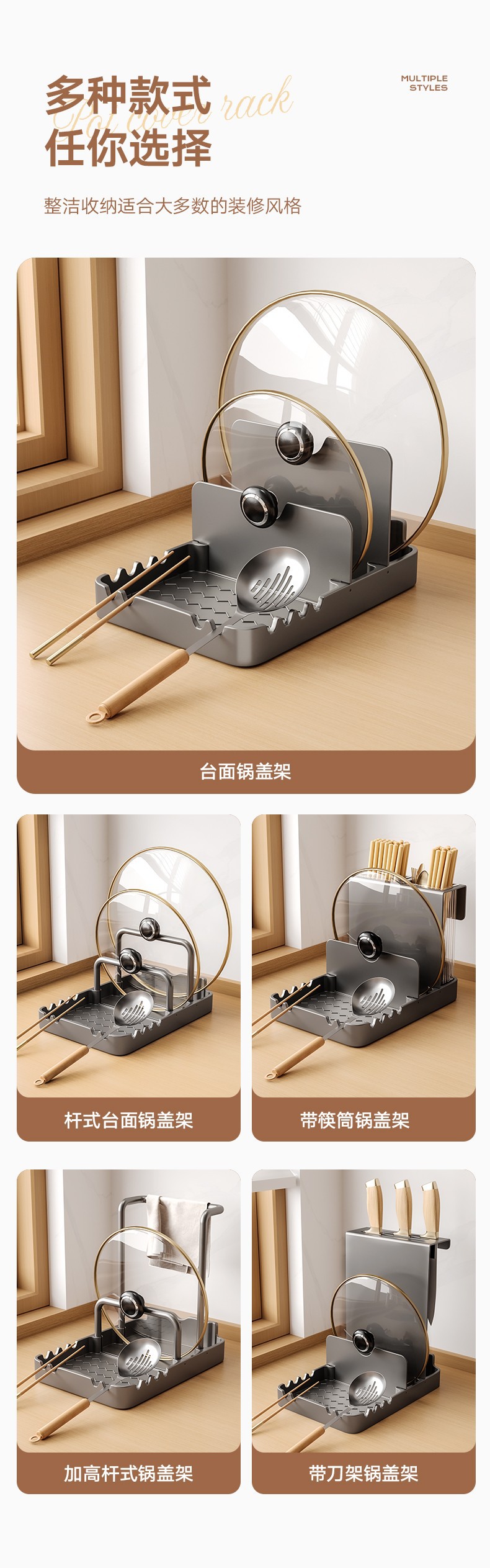 주방 냄비 커버 플레이서 다기능 카운터 탑 스토리지 랙 슬래브 커팅 보드 팩 시트 랙 도마 보드 랙