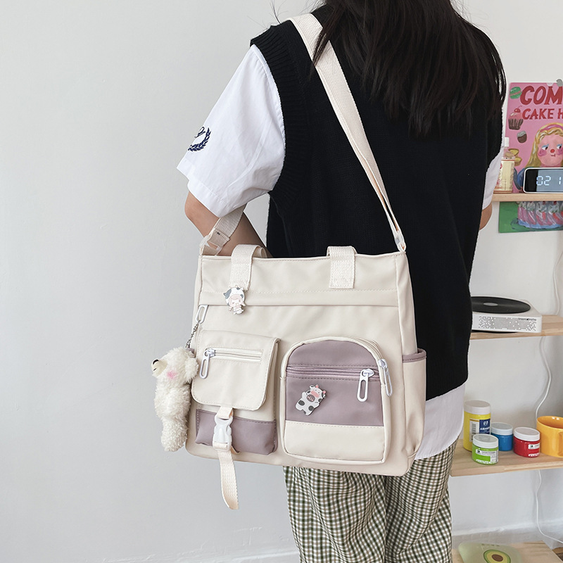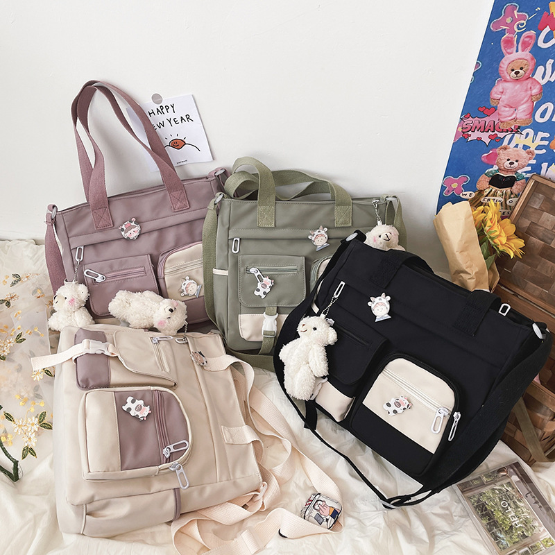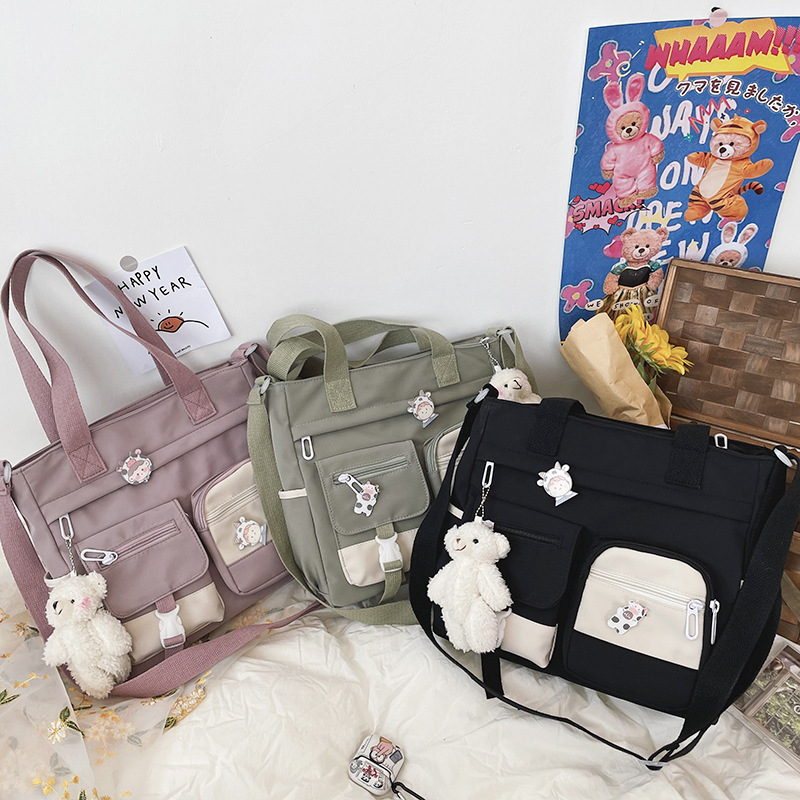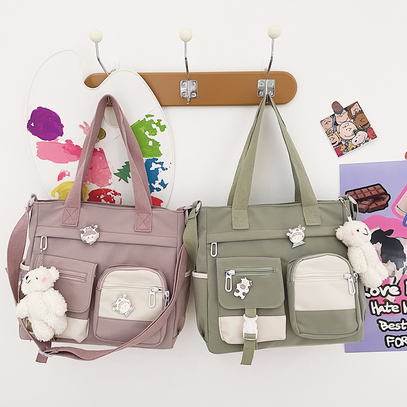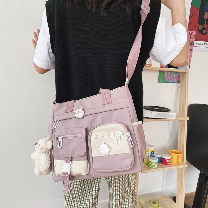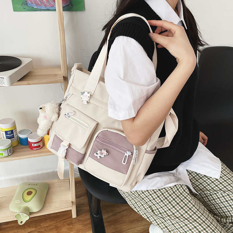 한국식 ulzzang 아카데미 스타일 빈티지 모리 스타일 예술적 올매치 소녀 학생 컬러 대용량 어깨 가방