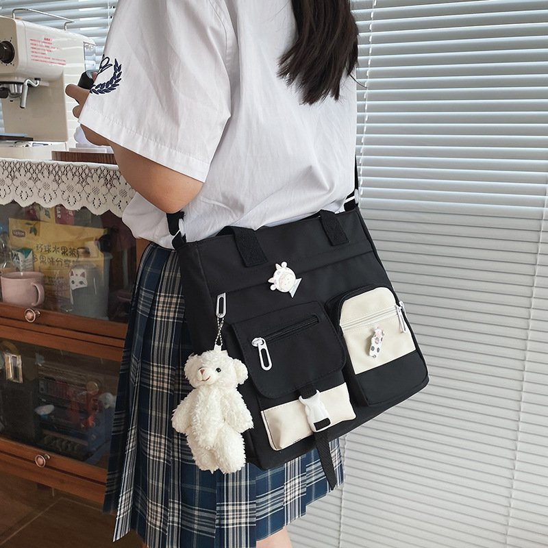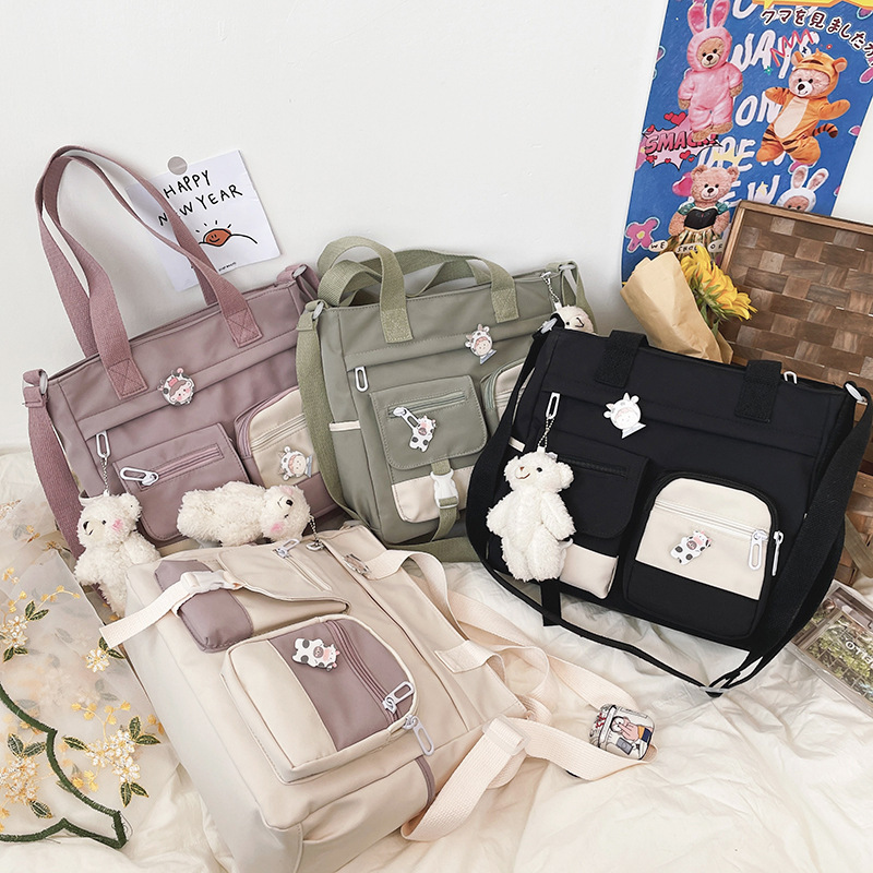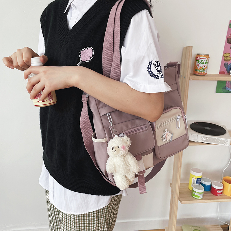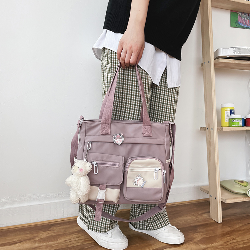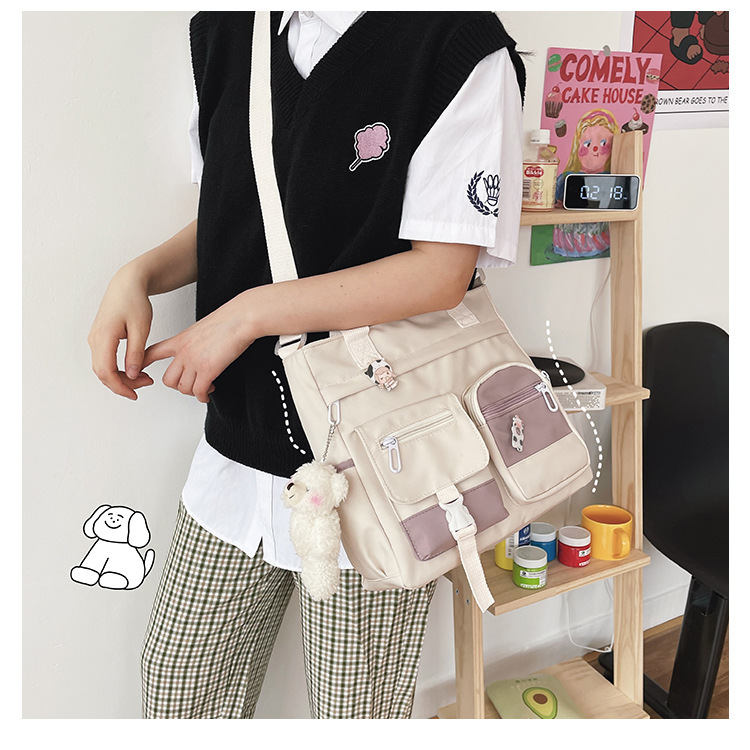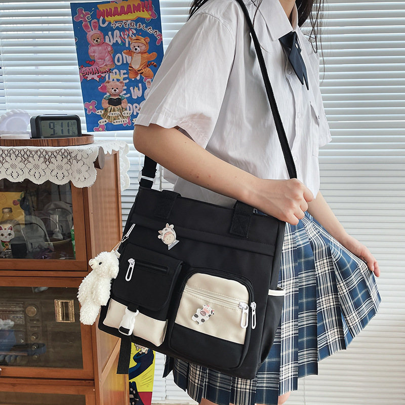 한국식 ulzzang 아카데미 스타일 빈티지 모리 스타일 예술적 올매치 소녀 학생 컬러 대용량 어깨 가방