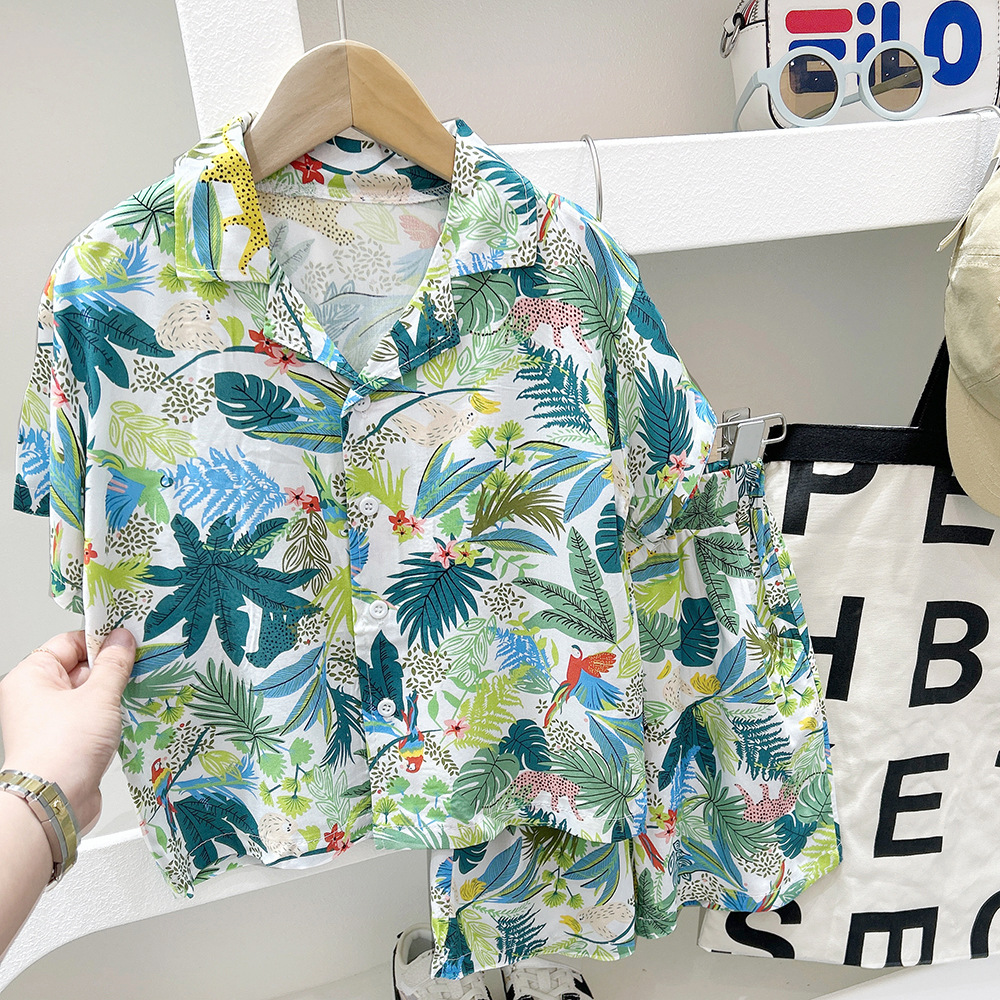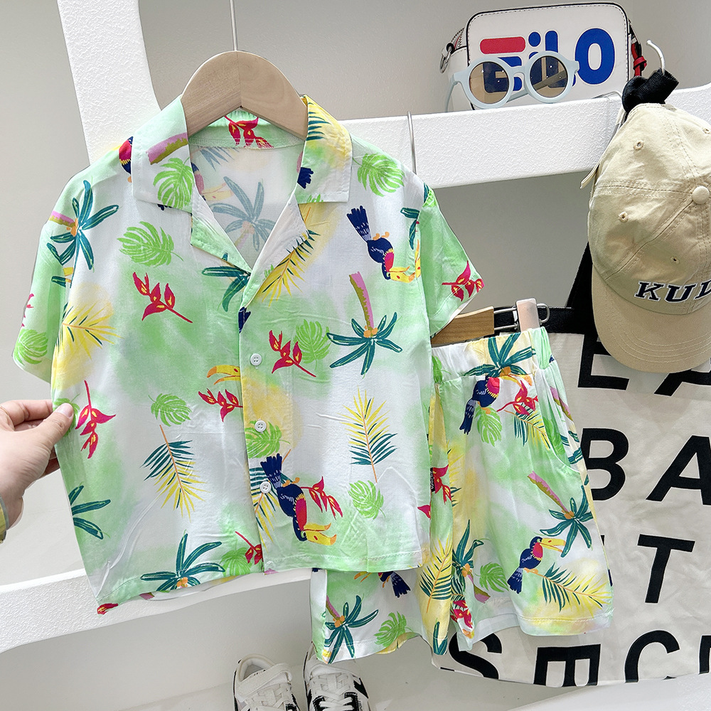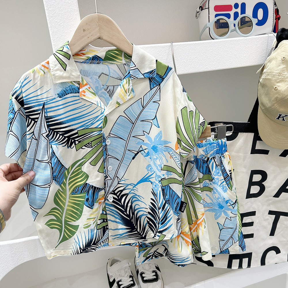 남학생 여름 서양식 어린이 해변 반팔 세트 2025 여름 새 스타일 셔츠 투피스 세트