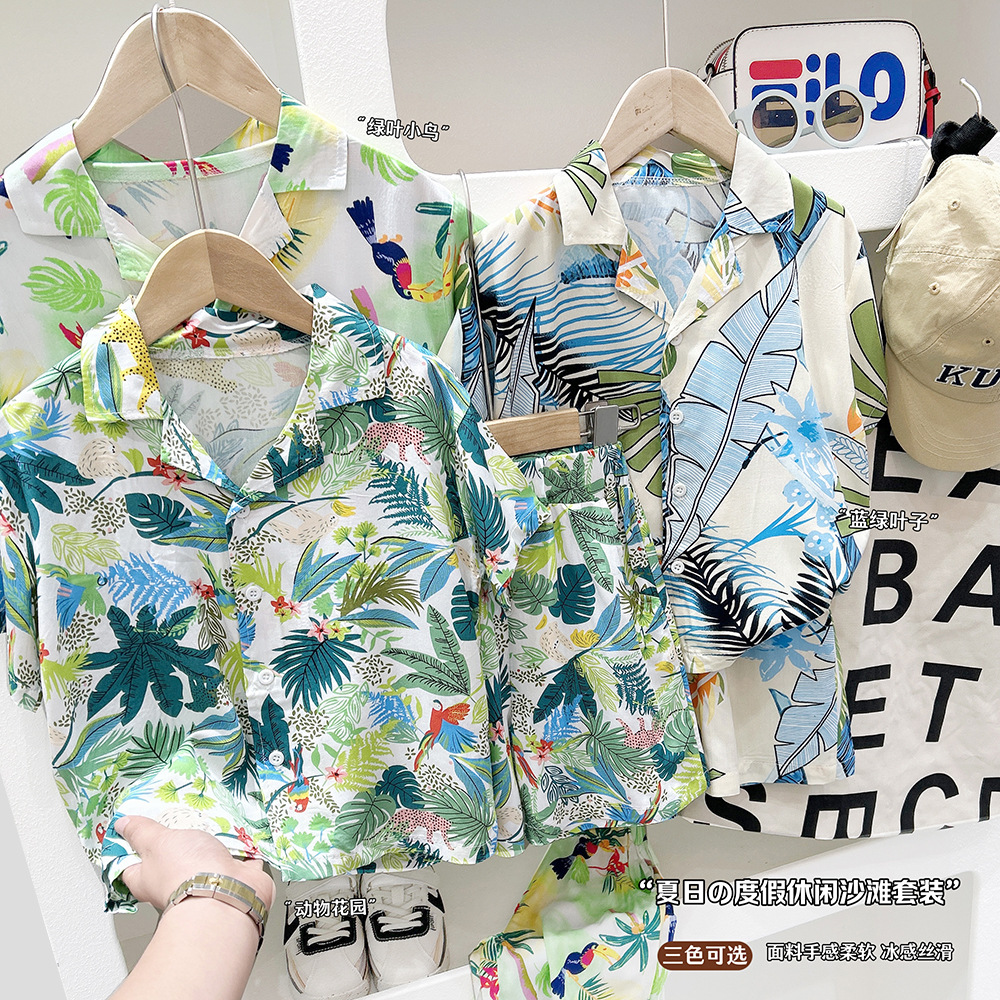 남학생 여름 서양식 어린이 해변 반팔 세트 2025 여름 새 스타일 셔츠 투피스 세트스토어 가기