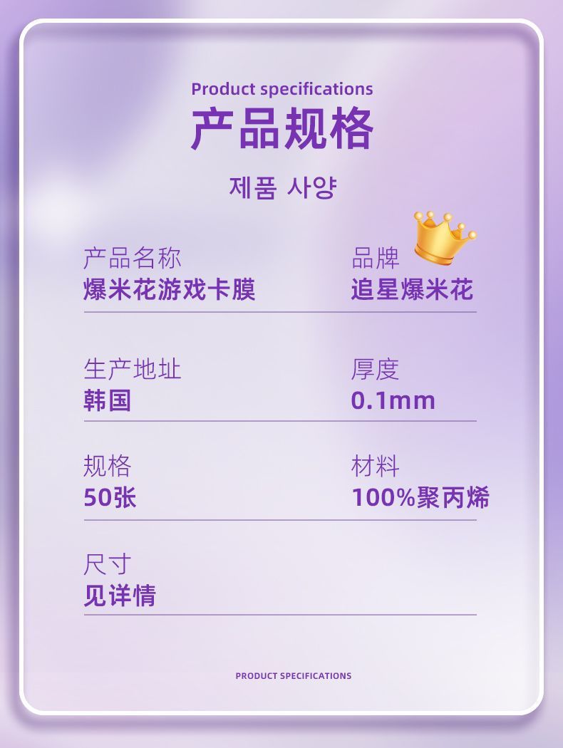 한국 팝콘 카드 필름 카드 슬리브 20 실크 플랫 0.1mm 사랑 콩 사진 작은 카드 보호 필름 cpp 높은 투자율 카드 슬리브