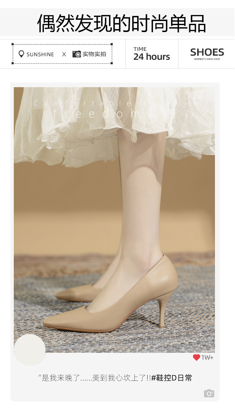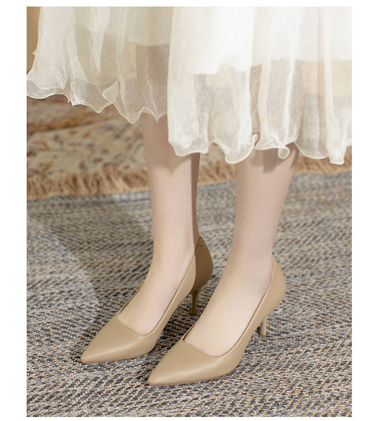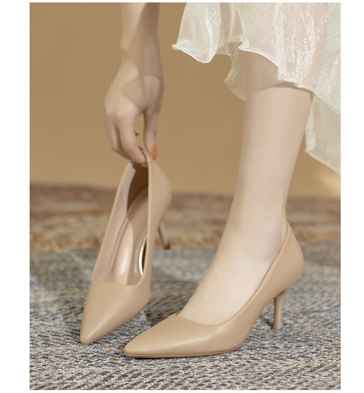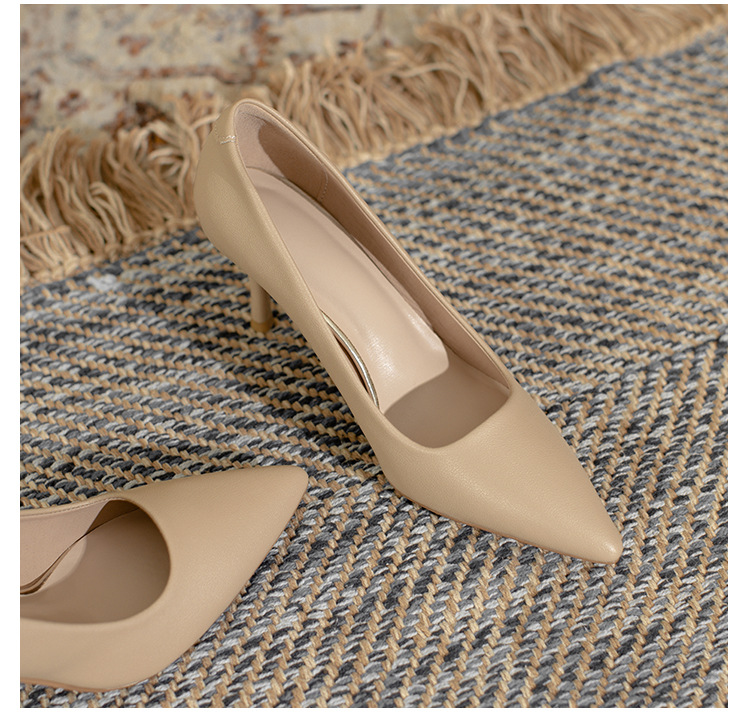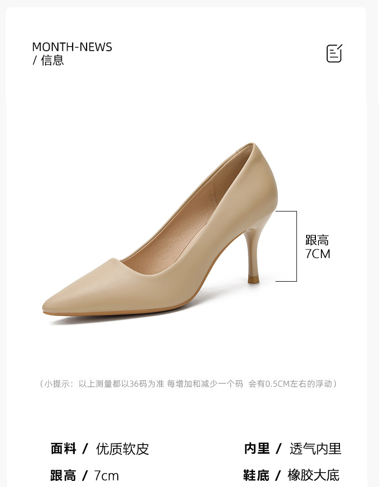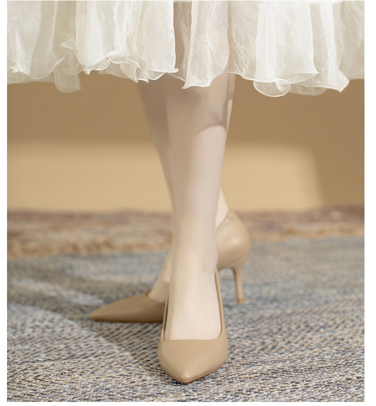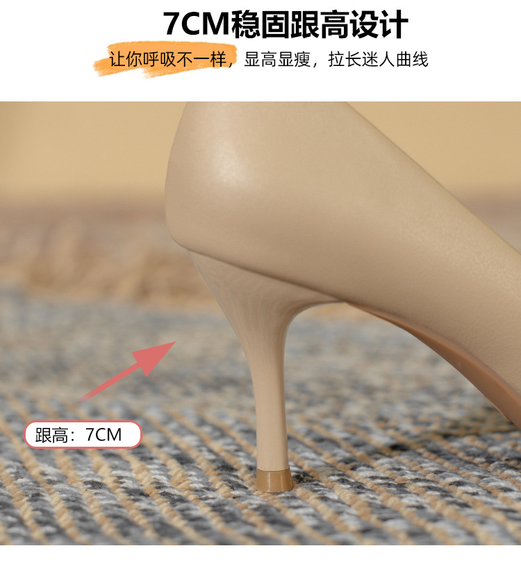 누드 컬러 부드러운 가죽 하이힐 여성용 얇은 굽 2026년 신상 우아한 블랙 오피스룩 편안한 포인티드 토 싱글 슈즈 7CM스토어 가기