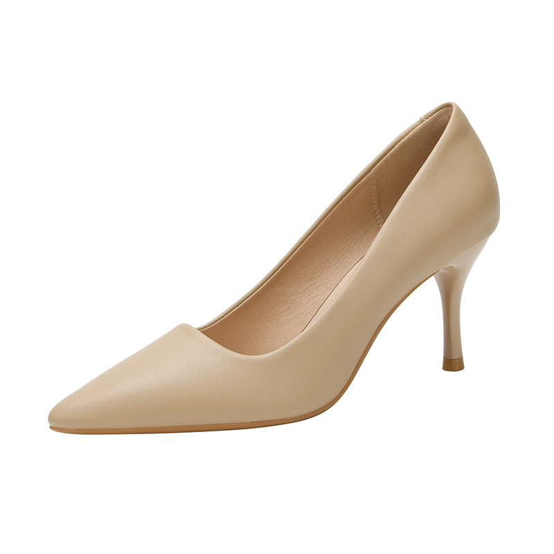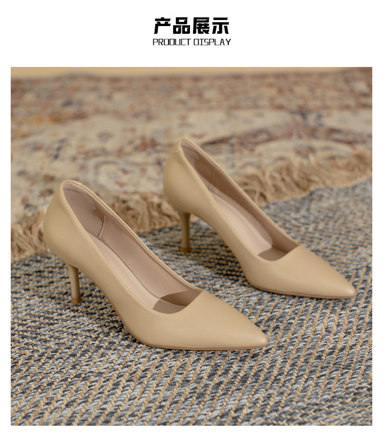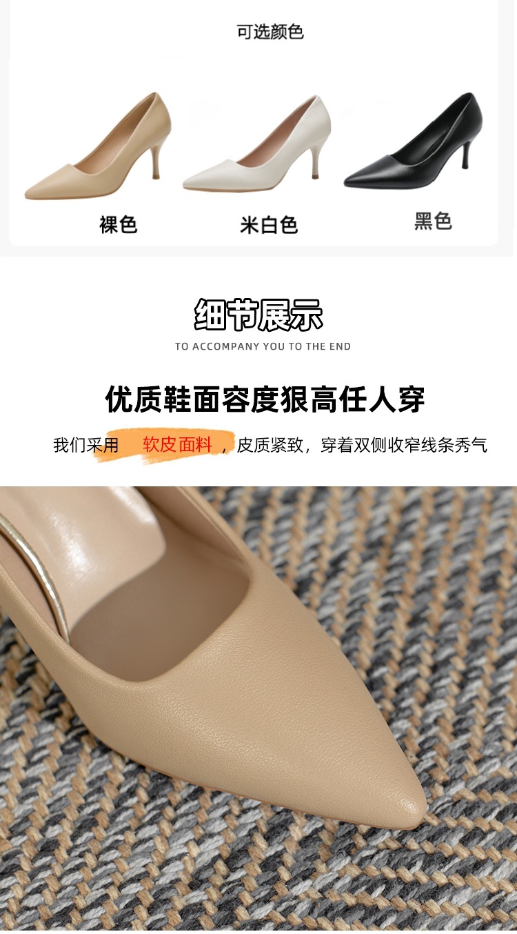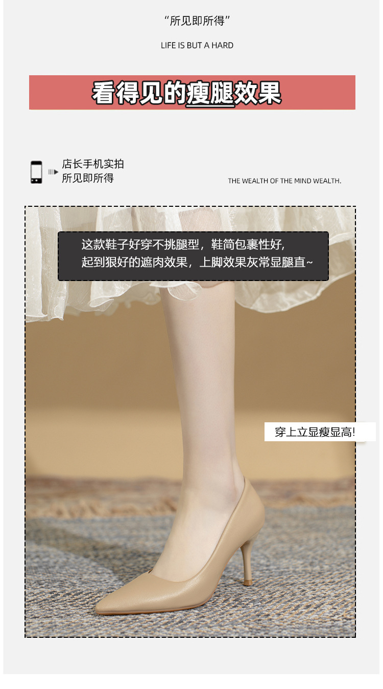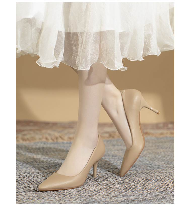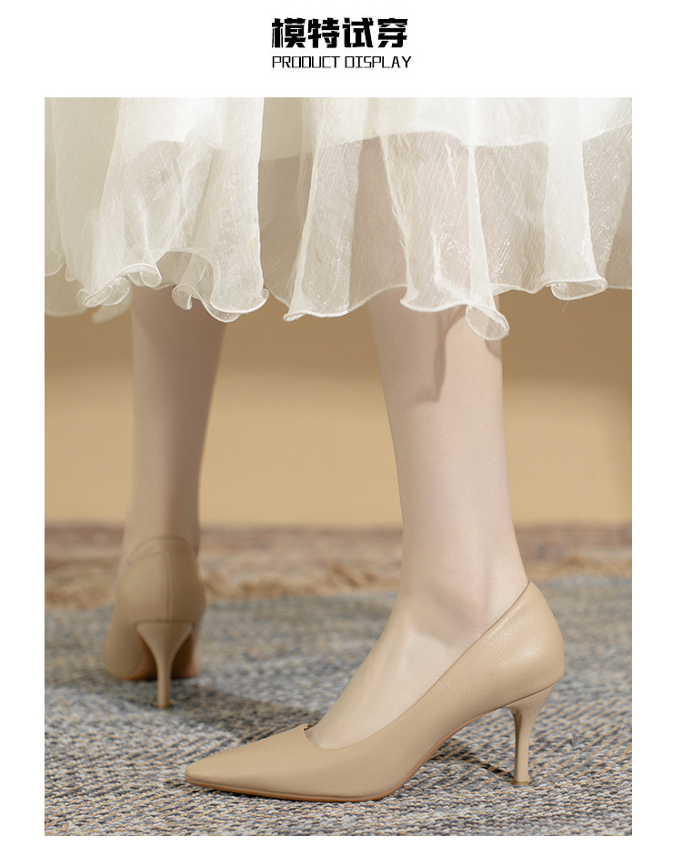 누드 컬러 부드러운 가죽 하이힐 여성용 얇은 굽 2026년 신상 우아한 블랙 오피스룩 편안한 포인티드 토 싱글 슈즈 7CM스토어 가기