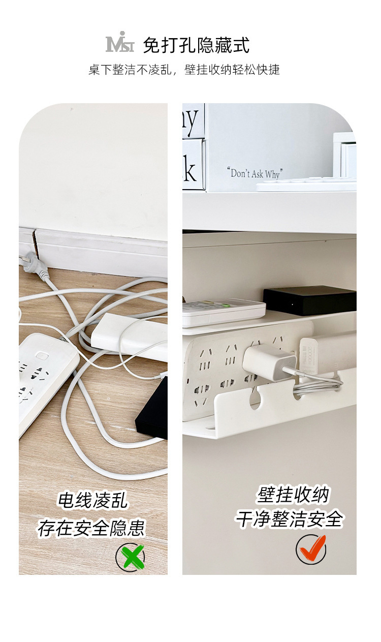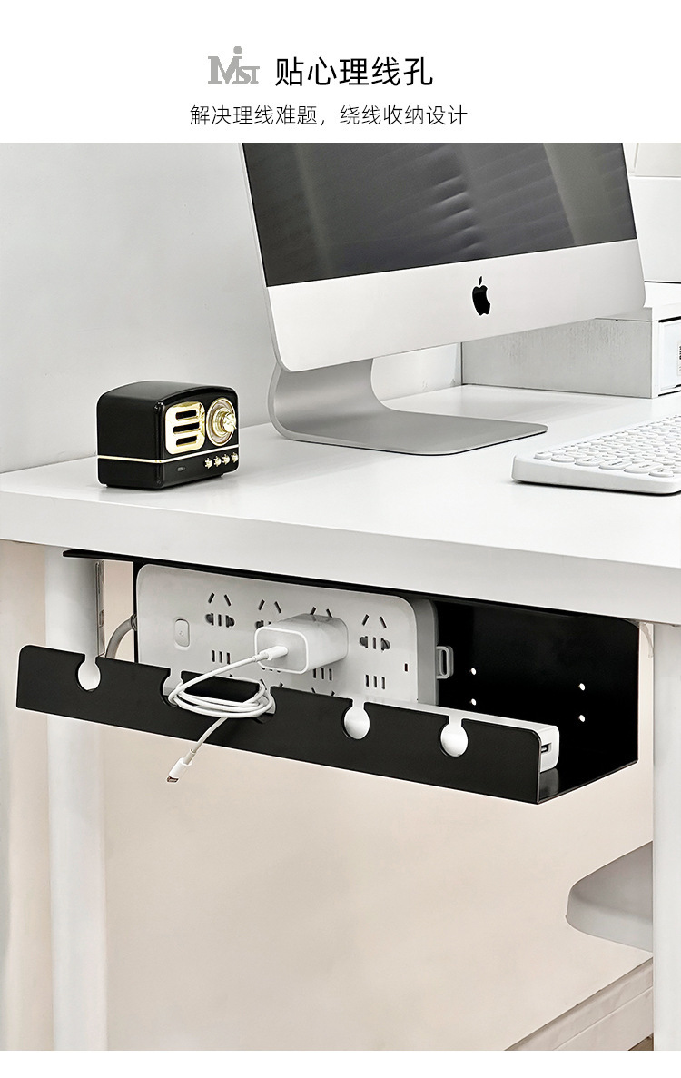 책상 아래 케이블 관리 랙 소켓 플러그 바 와이어 스토리지 홀더 데스크 하단 컴퓨터 케이블 관리 상자 슬롯 구멍이없는
