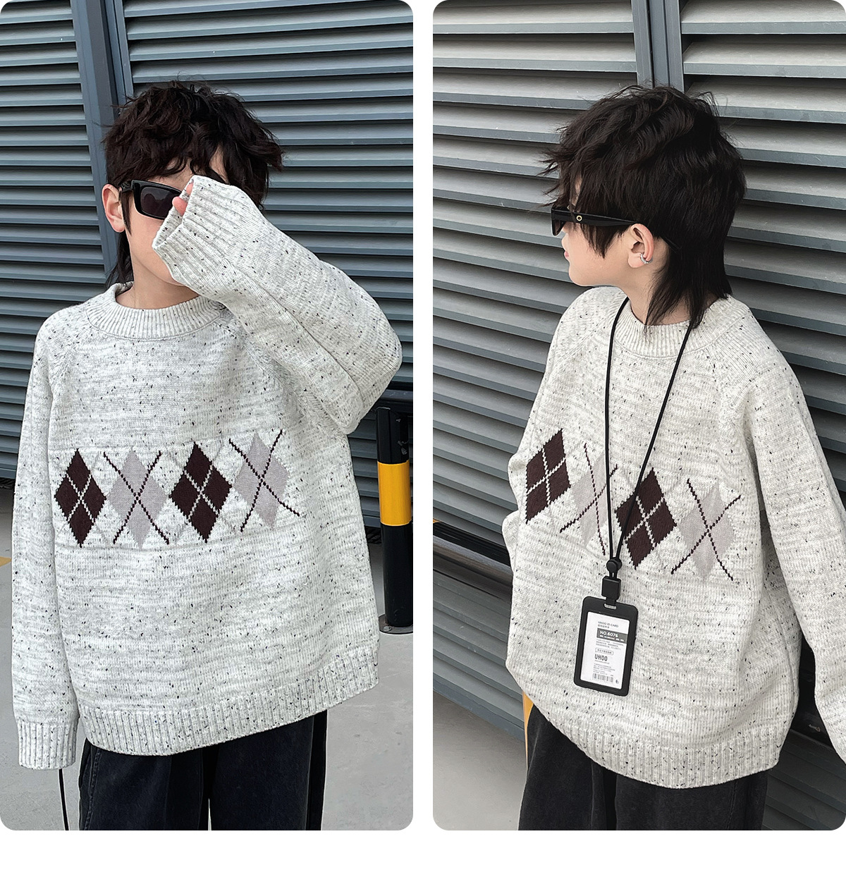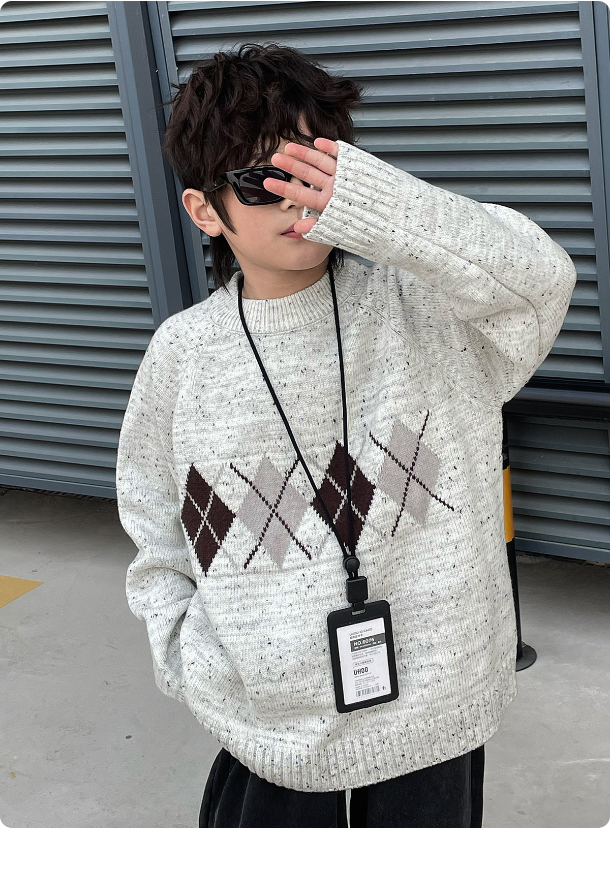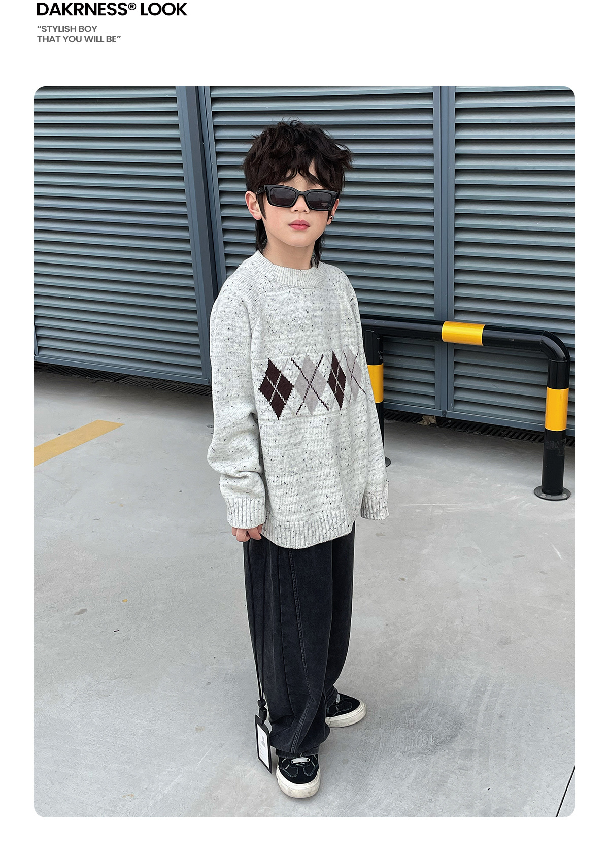 DK 아동복 가을 겨울 대학 스타일 마름모 무늬 울 스웨터 어린이 남아 여아 패셔너블 두꺼운 캐주얼 스웨터 니트웨어스토어 가기
