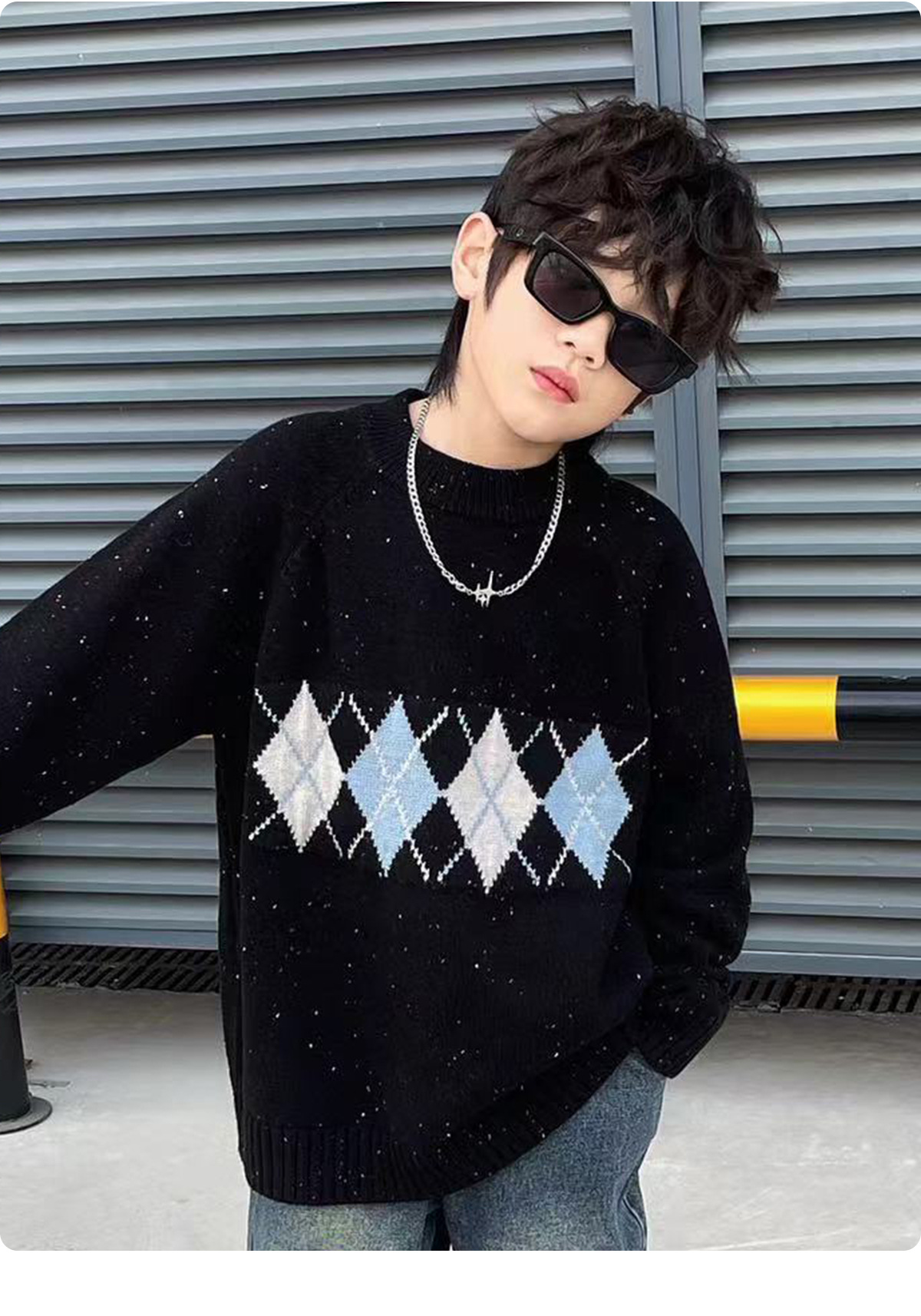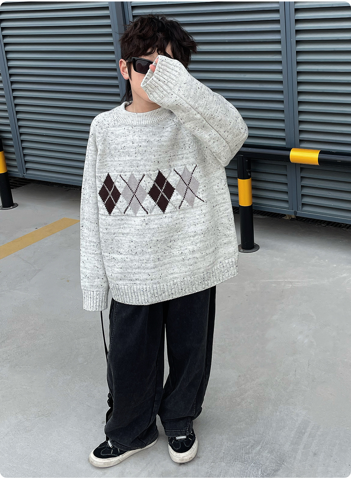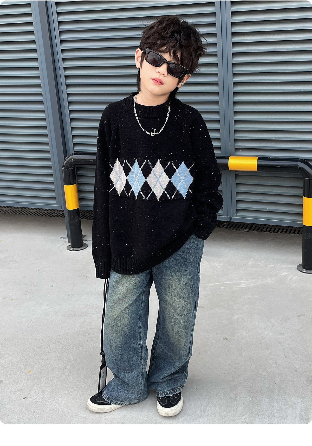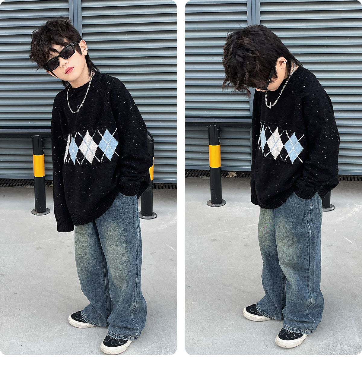 DK 아동복 가을 겨울 대학 스타일 마름모 무늬 울 스웨터 어린이 남아 여아 패셔너블 두꺼운 캐주얼 스웨터 니트웨어스토어 가기
