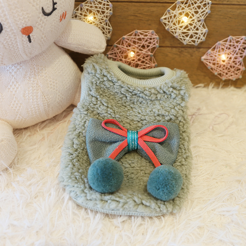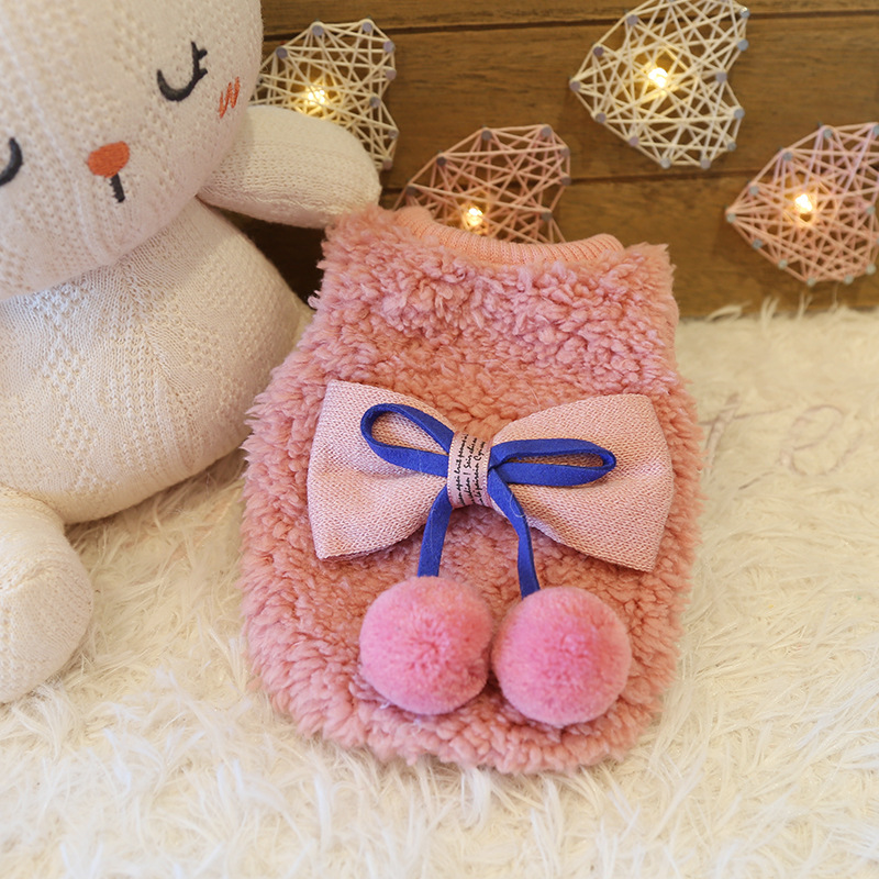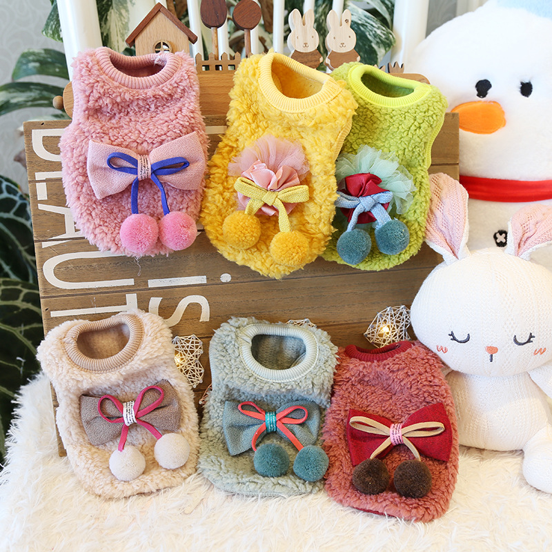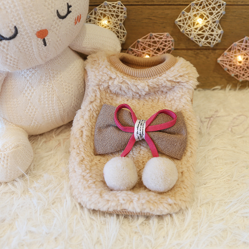페트스타일 활 봉제 우유 개 조끼 귀여운 벨벳 우유 개 코트 강아지 강아지 강아지 고양이 옷 새로운