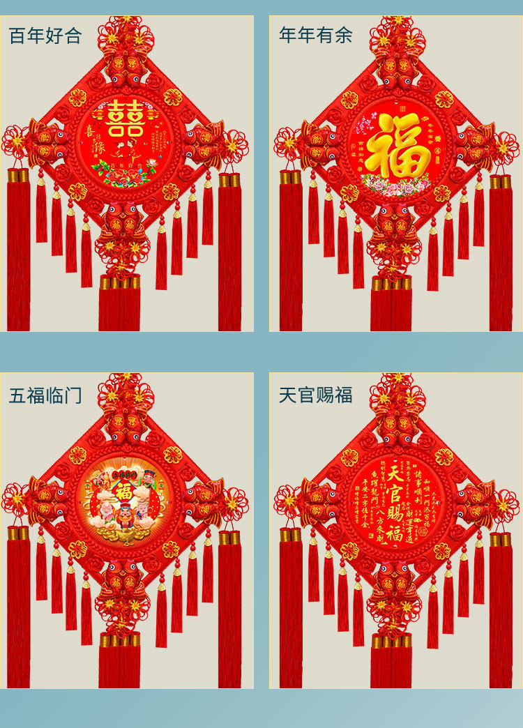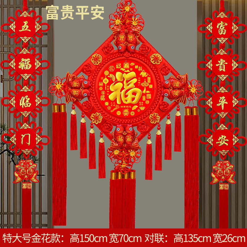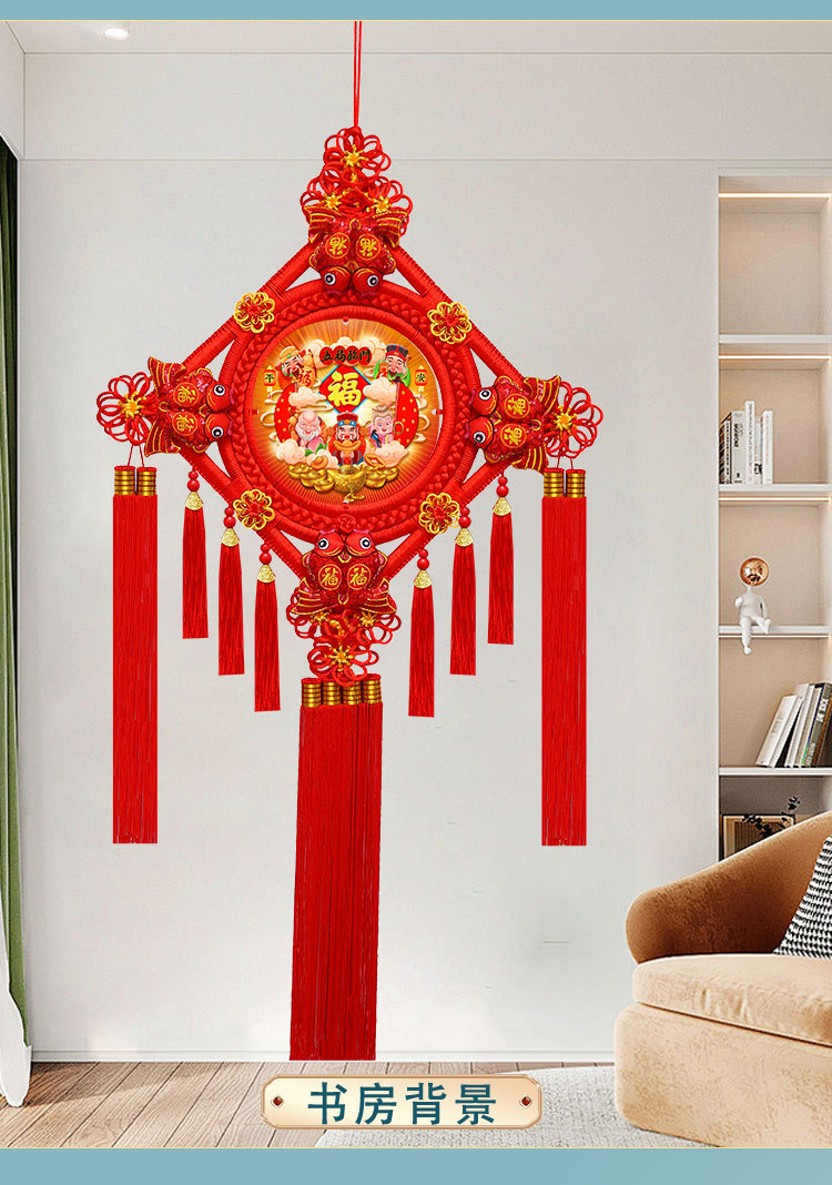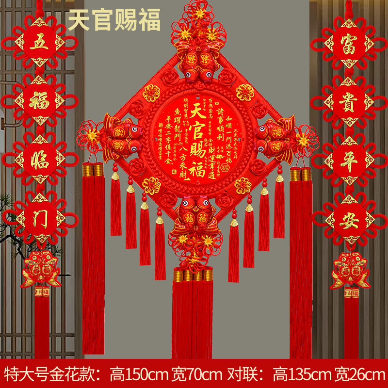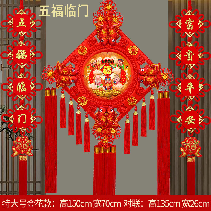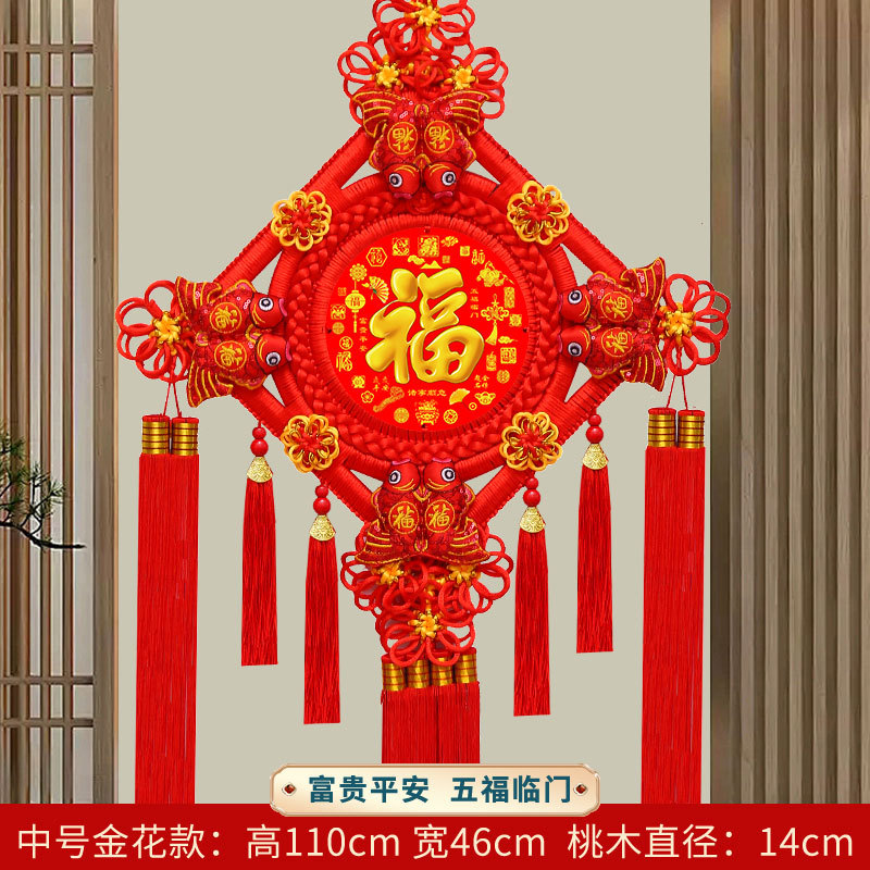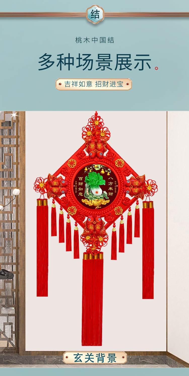 새로운 중국 매듭 펜던트 오프닝 대형 복숭아 우드 푸 캐릭터 거실 복도 집들이 문 새해 장식
