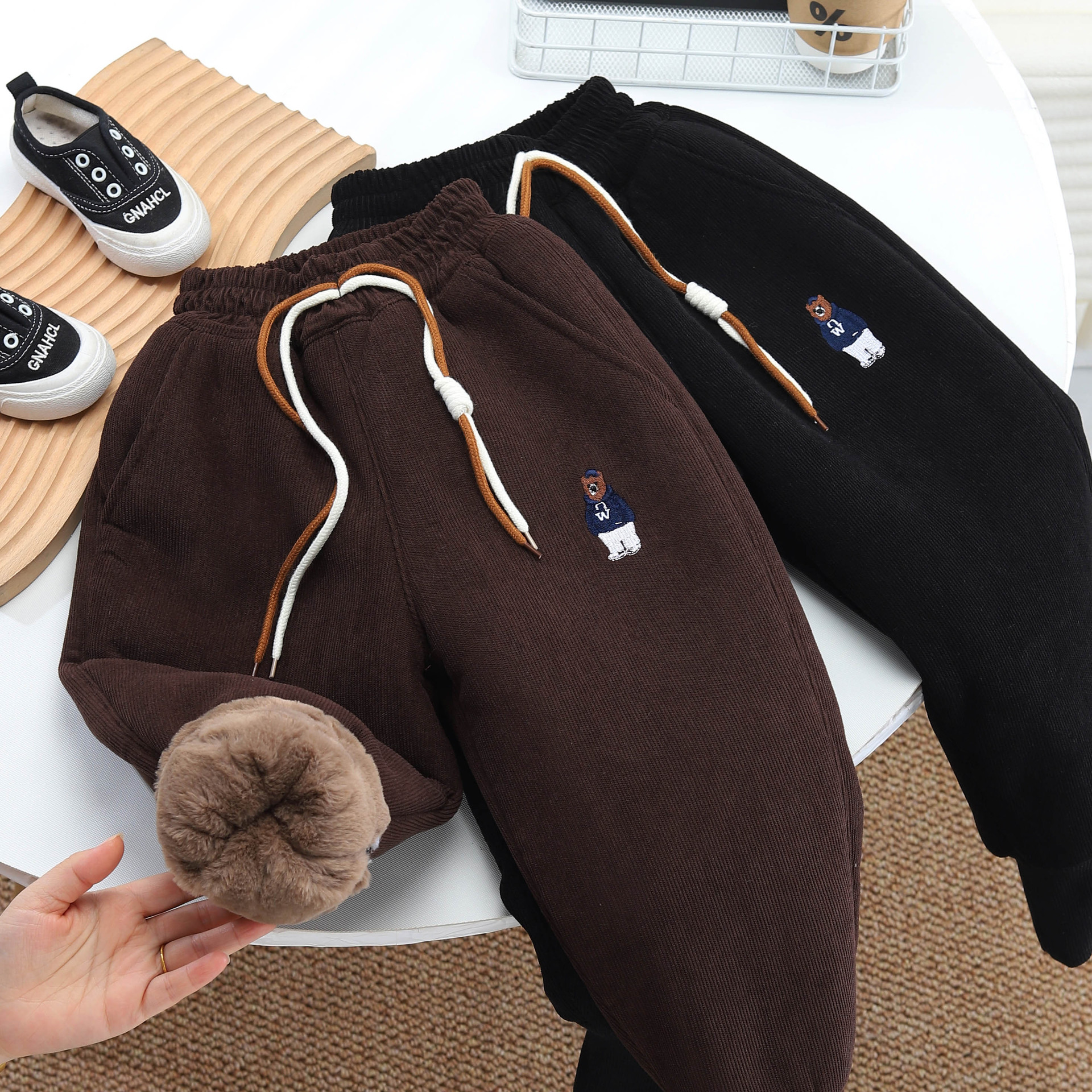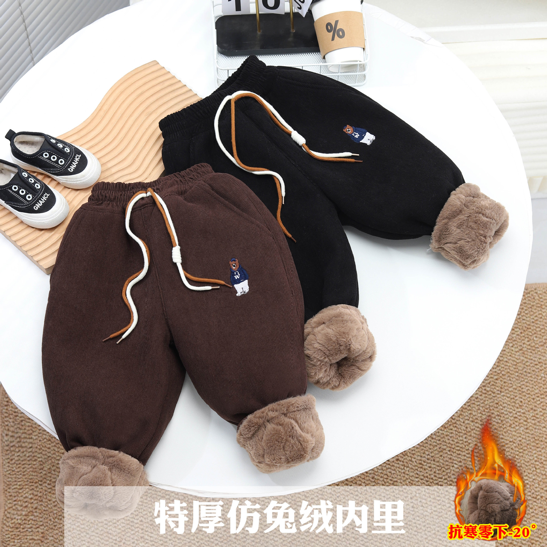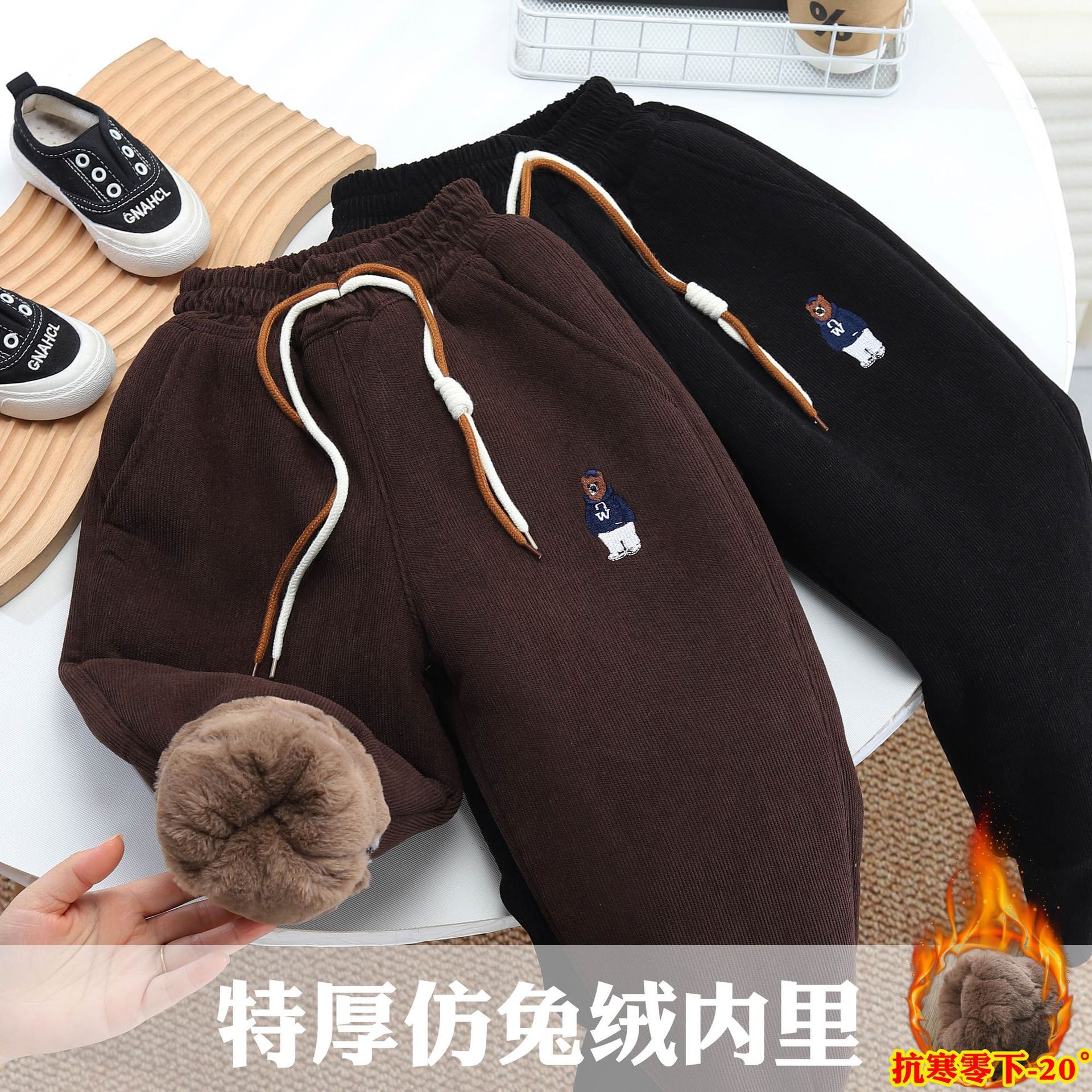 [4 층 토끼 모피 팬츠] 980g 겨울 따뜻한 어린이 바지 조수 소년 면화 바지스토어 가기