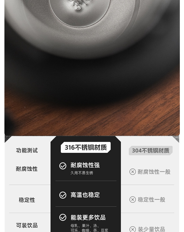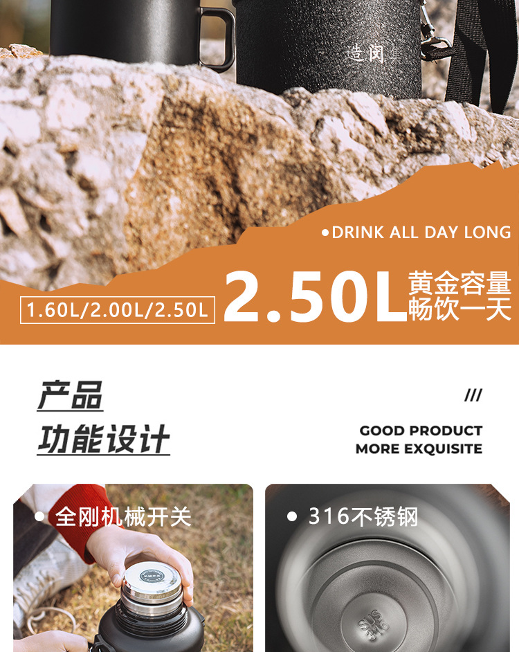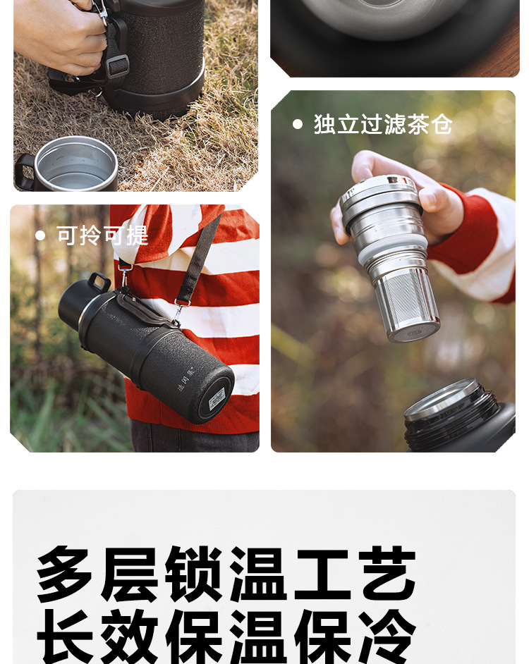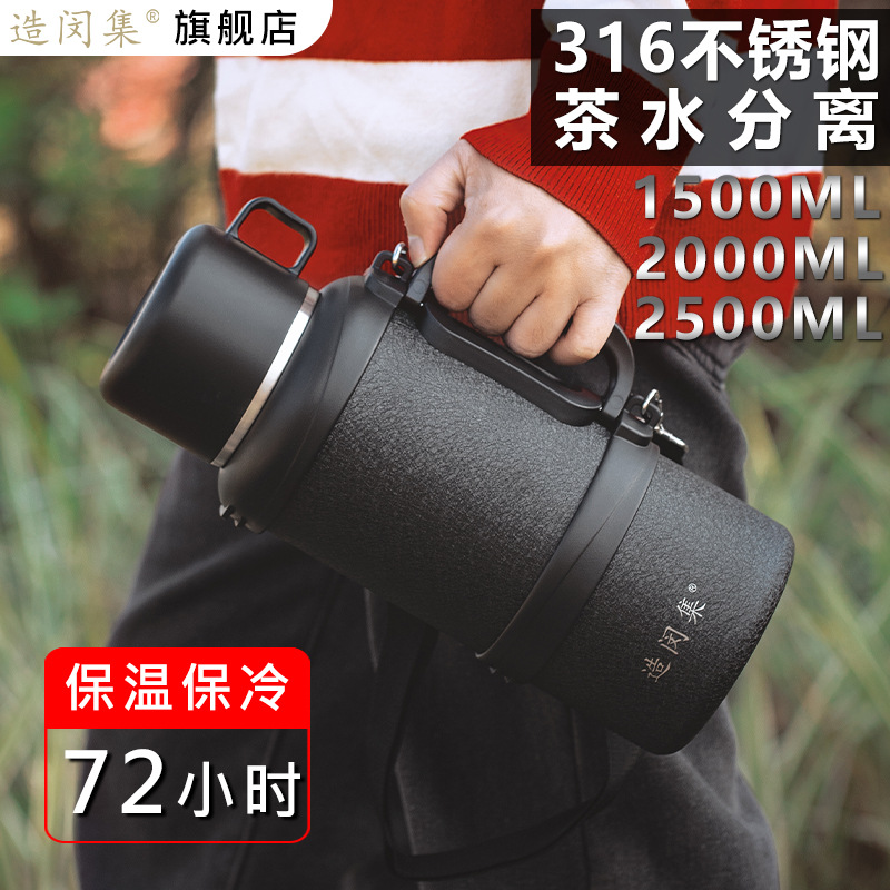 민지 스테인레스 스틸 야외 열 냄비 대용량 316 가정용 주전자 휴대용 자동차 등산 및 캠핑 여행
