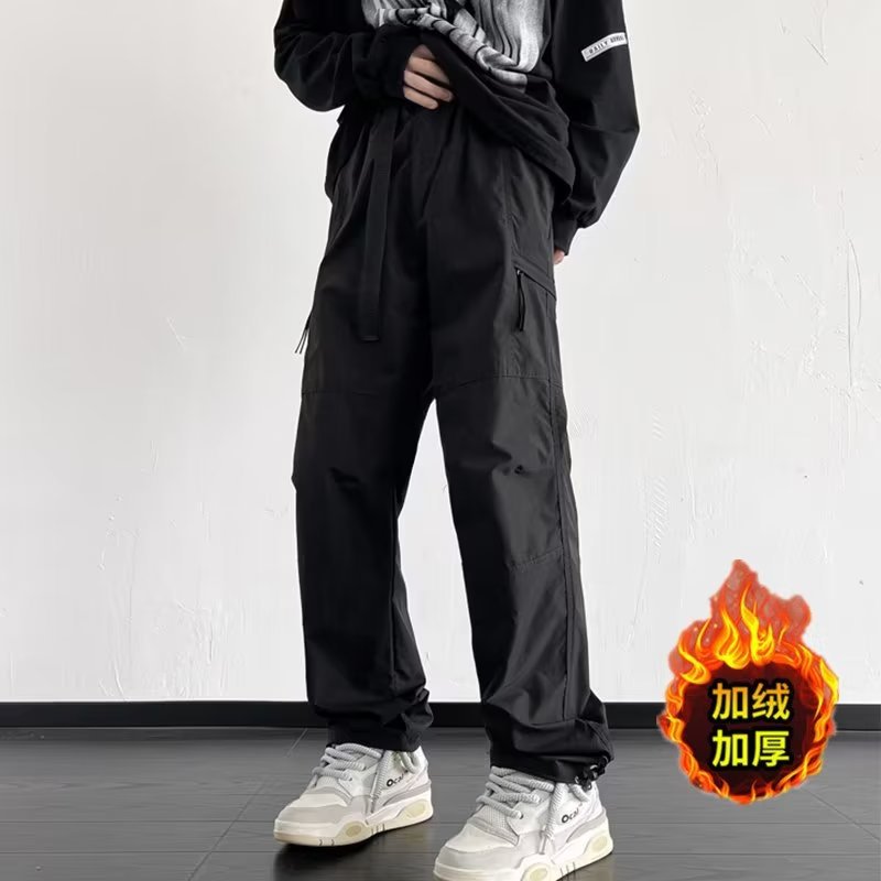 기모 충전 바지 남자 겨울 느슨한 직선 등산 크록 바지 유행 브랜드 미국식 낙하산 기능성 캐주얼 바지스토어 가기