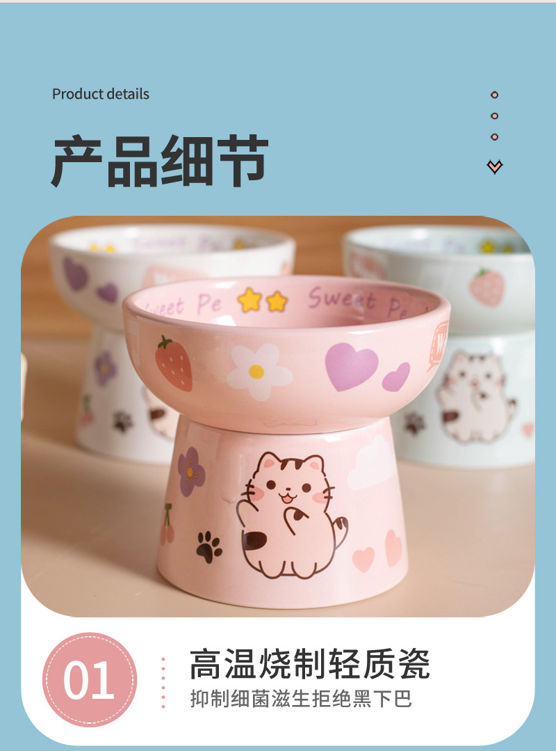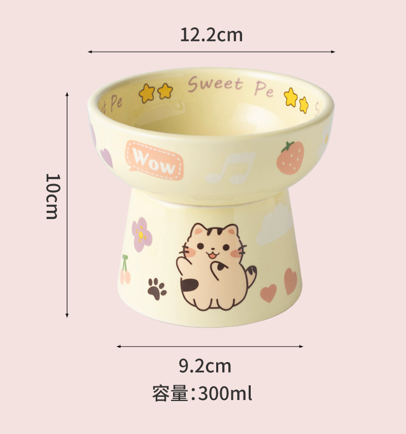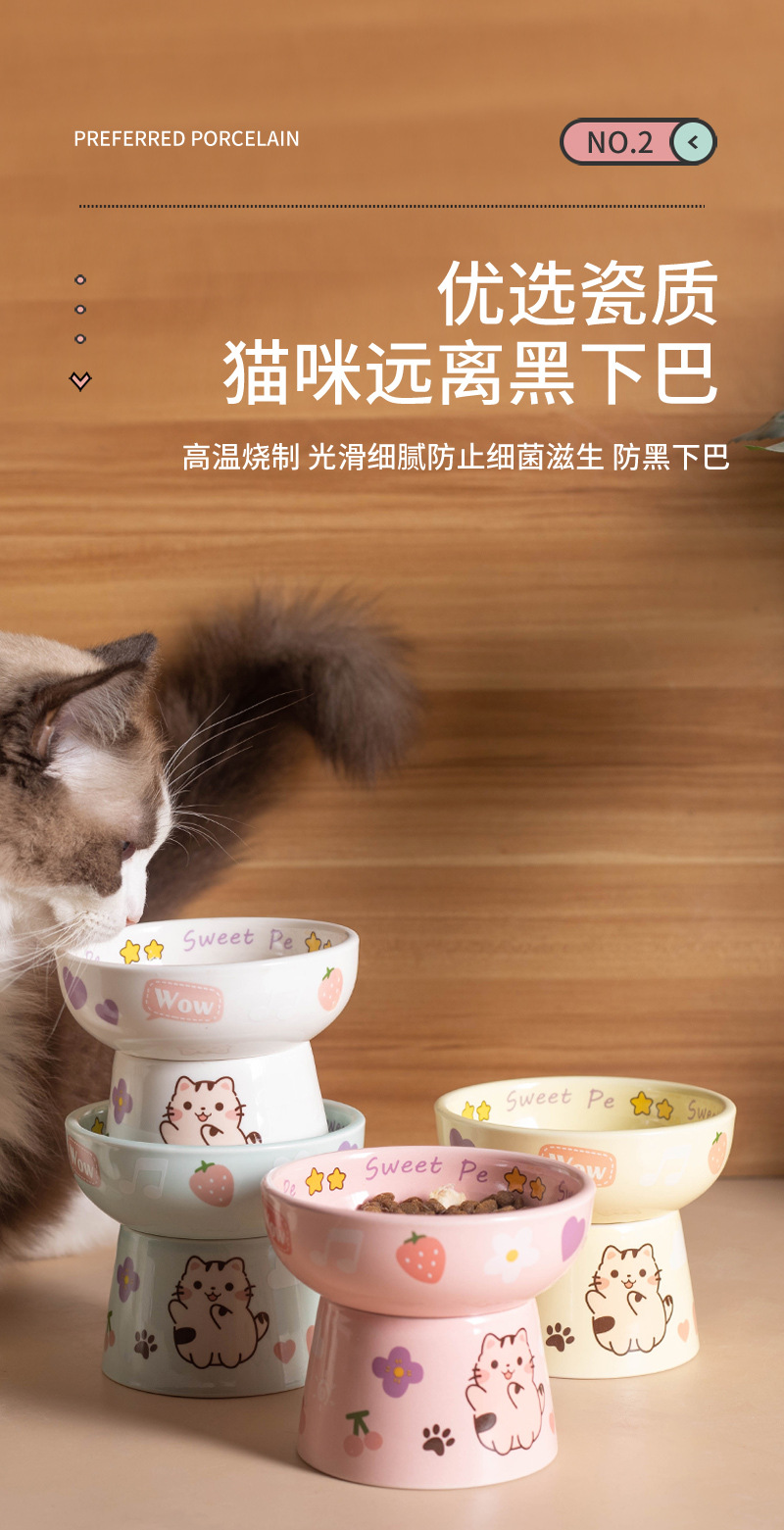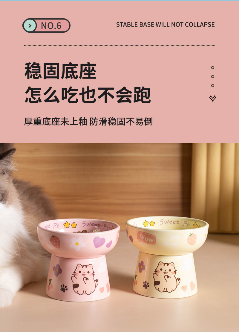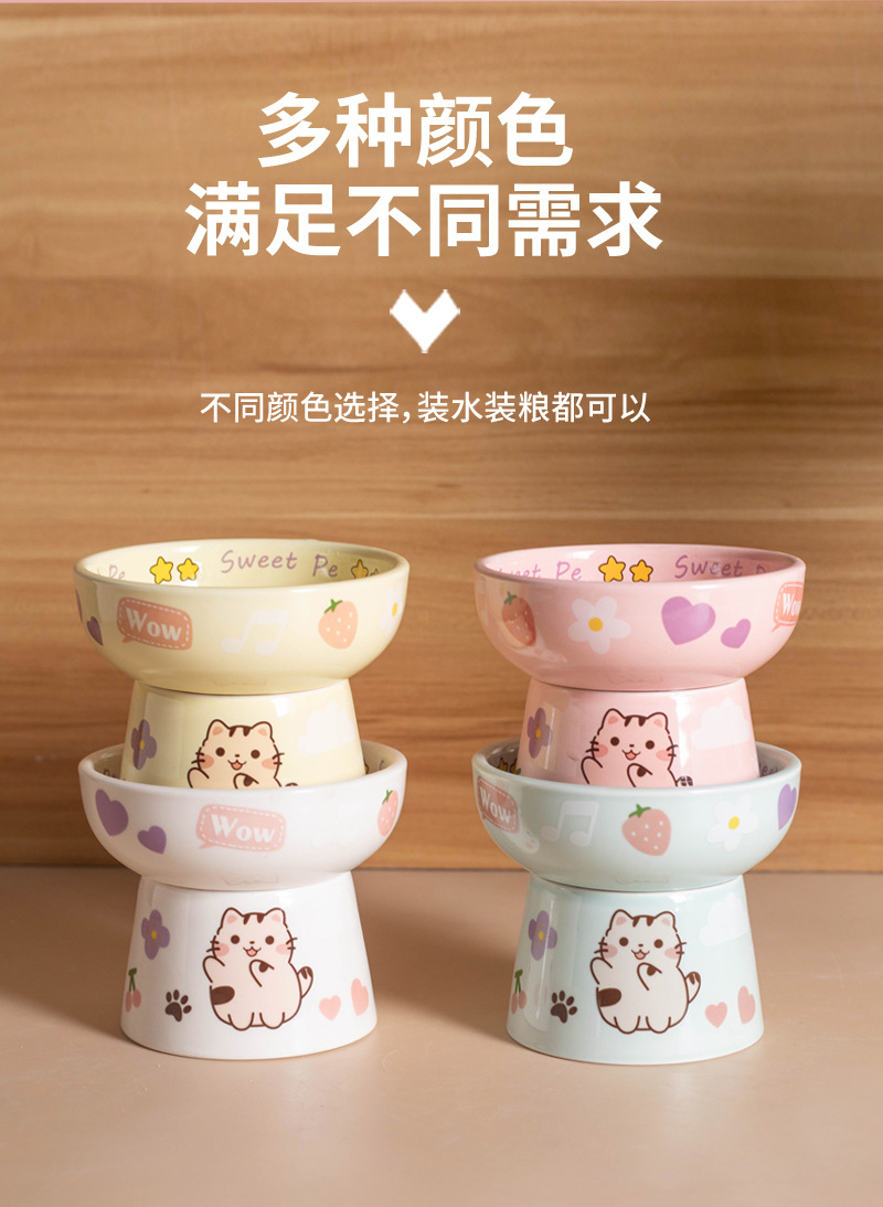 고양이 그릇 세라믹 높은 발 목 보호 고양이 음식 분지는 검은 턱 평평한 그릇 아이들의 재미를 고양이 새끼 고양이 밥 그릇에 두드리기 쉽지 않습니다.스토어 가기