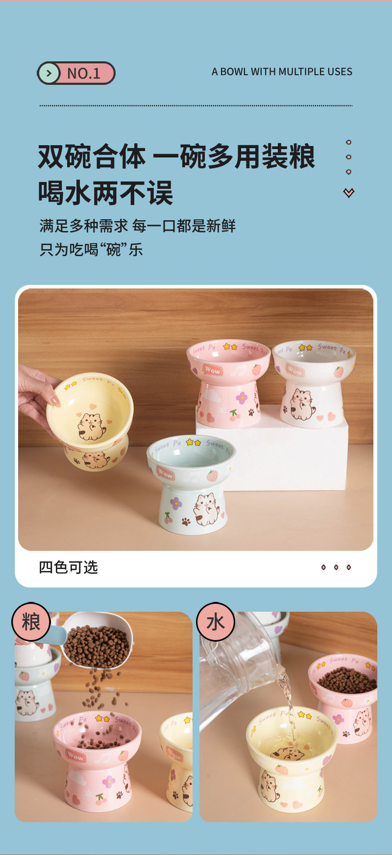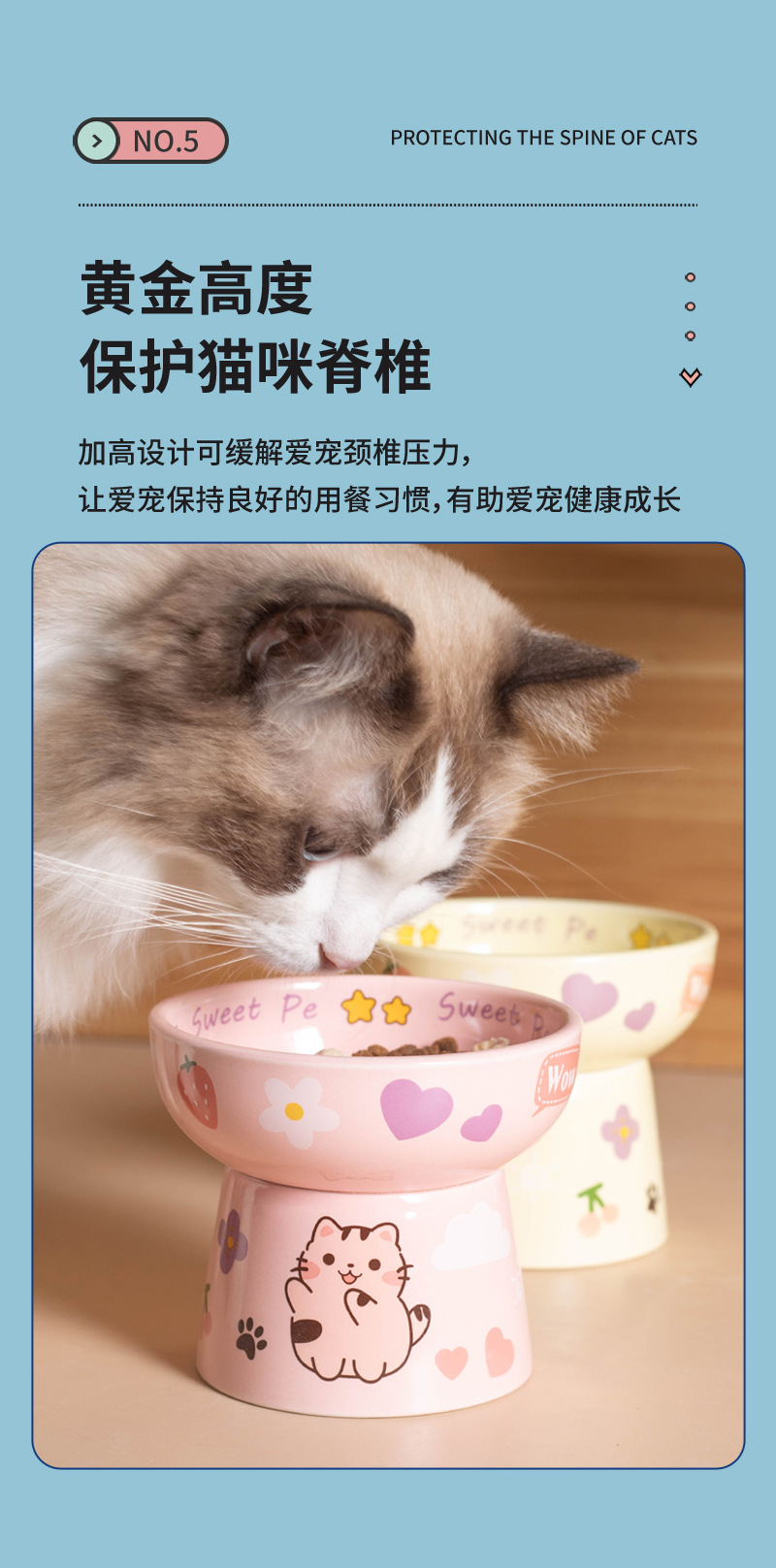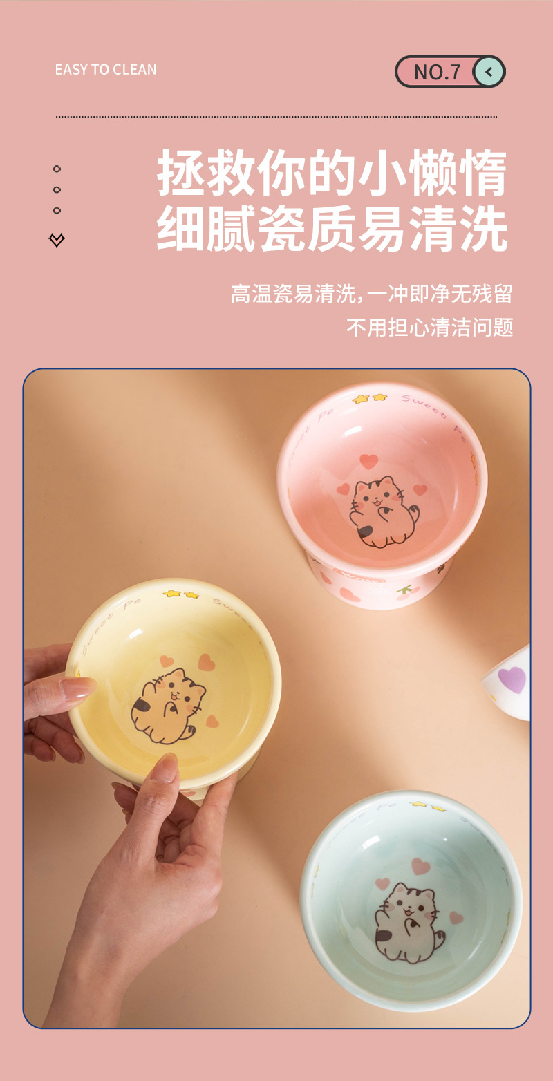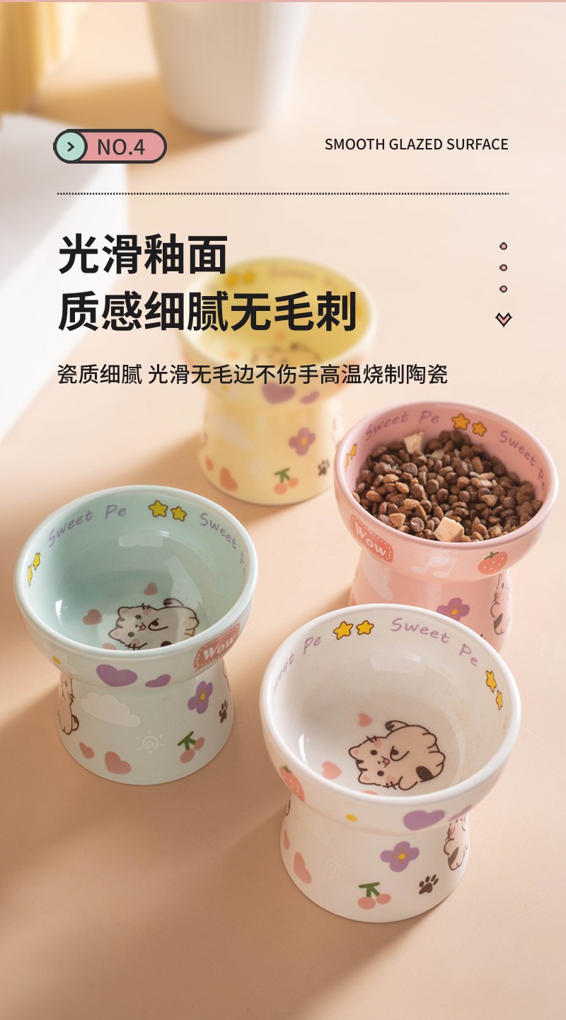 고양이 그릇 세라믹 높은 발 목 보호 고양이 음식 분지는 검은 턱 평평한 그릇 아이들의 재미를 고양이 새끼 고양이 밥 그릇에 두드리기 쉽지 않습니다.스토어 가기