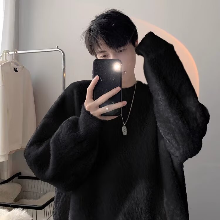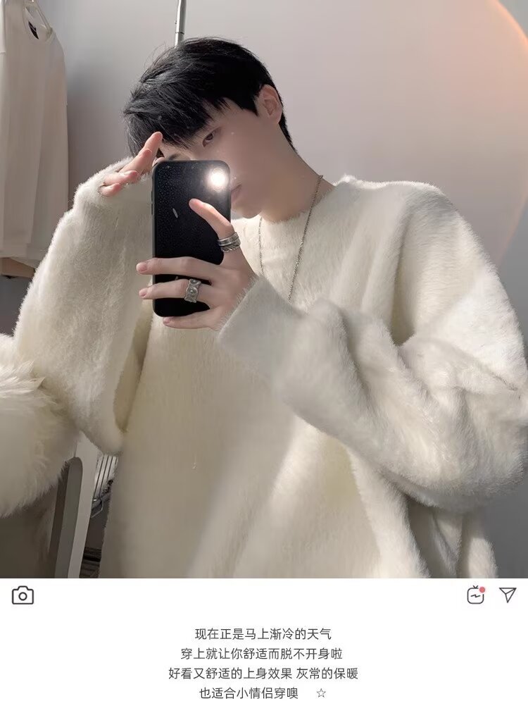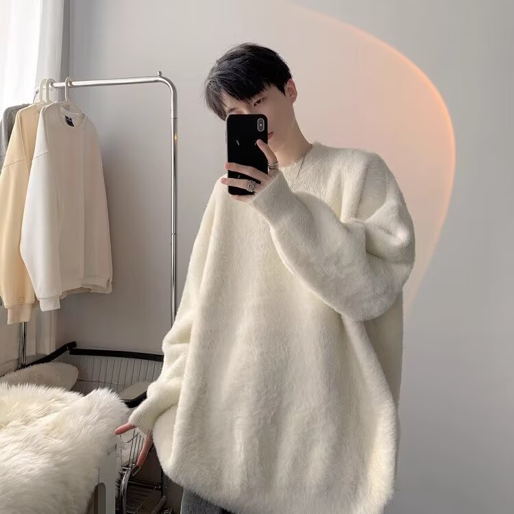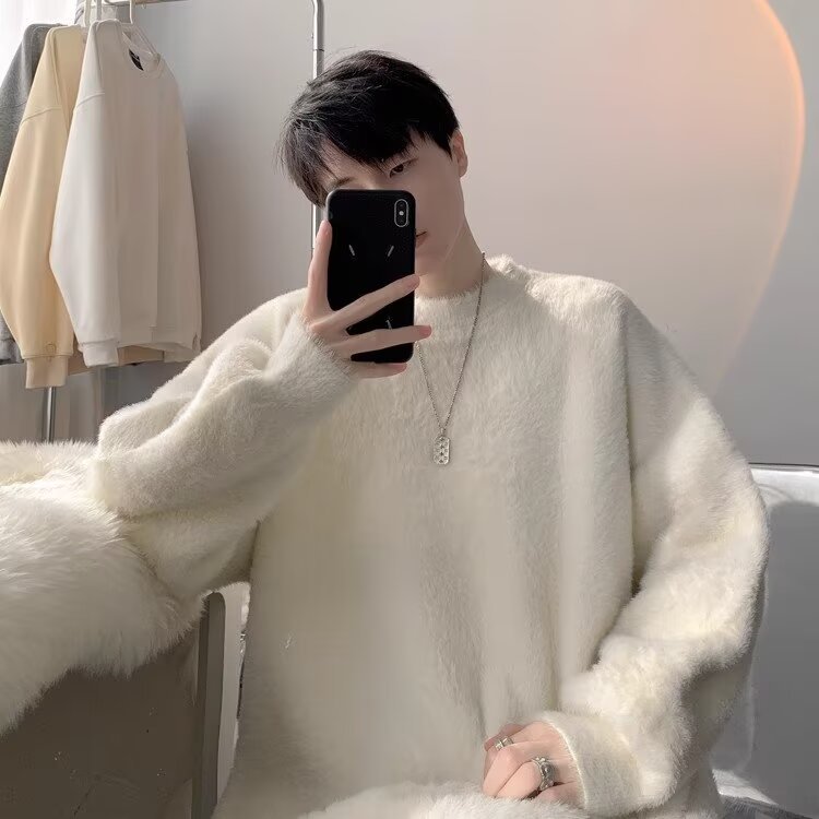 가을 겨울 남성용 스웨터 두꺼운 트렌디 브랜드 루즈한 게으른 스타일 흰색 부드럽고 왁시한 밑단 밍크 벨벳 커플 스웨터스토어 가기
