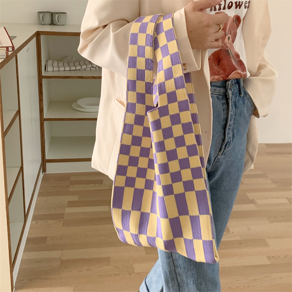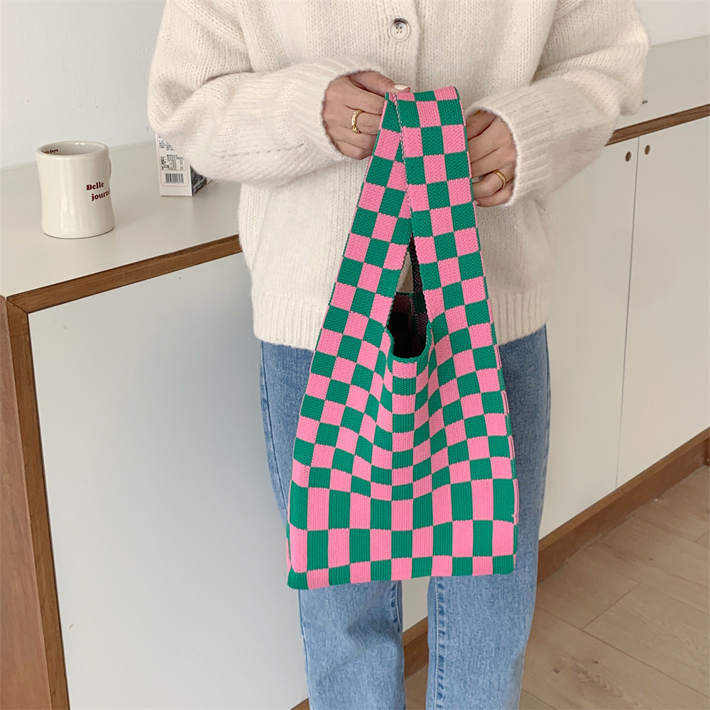 19281 올 매치 니트 체크 무늬 핸드백 쇼핑 핸드 백 대용량 핸드 백 디자인