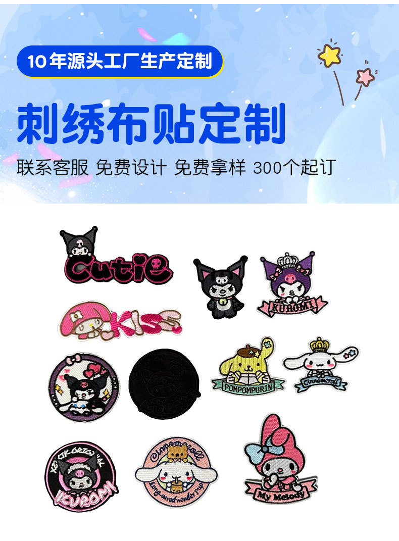 산리오 시리즈 천 패치, 옷에 구멍이 나면 바느질 필요 없는 자가 접착 패치, 컴퓨터 자수 부자재 도매, 벨크로