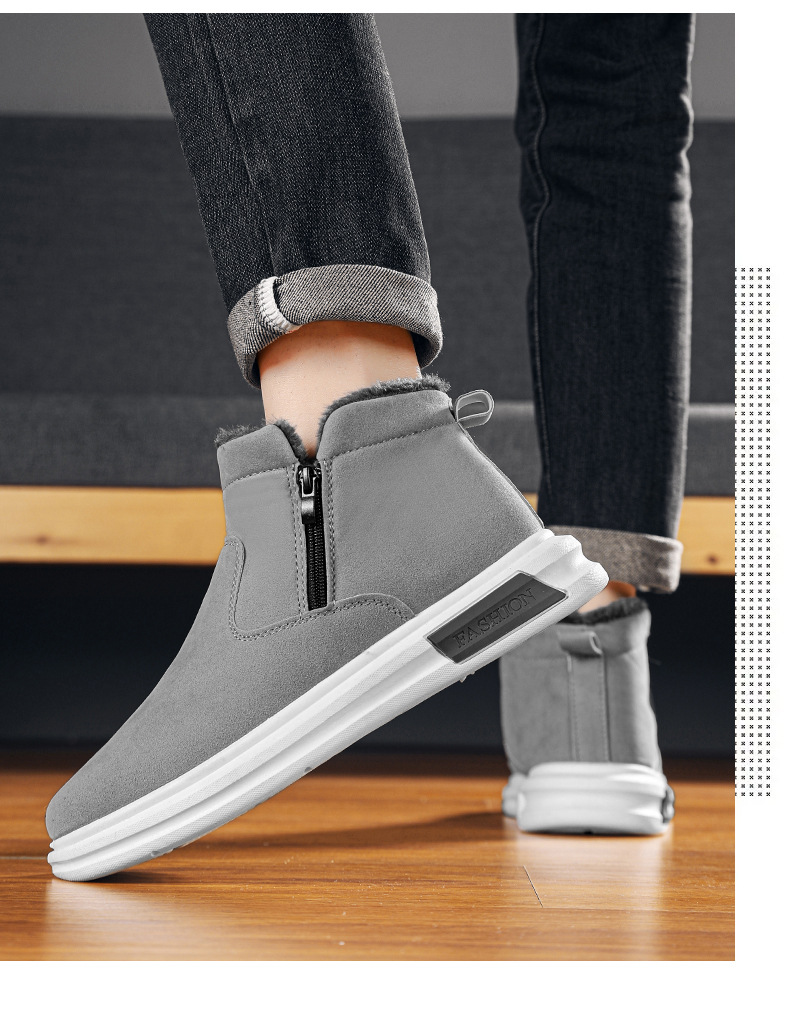 남성용 신발 겨울 새로운 유행 올 매치 높이 증가 청소년 캐주얼 하이 탑 야외 경량 기모 따뜻한 코튼 신발