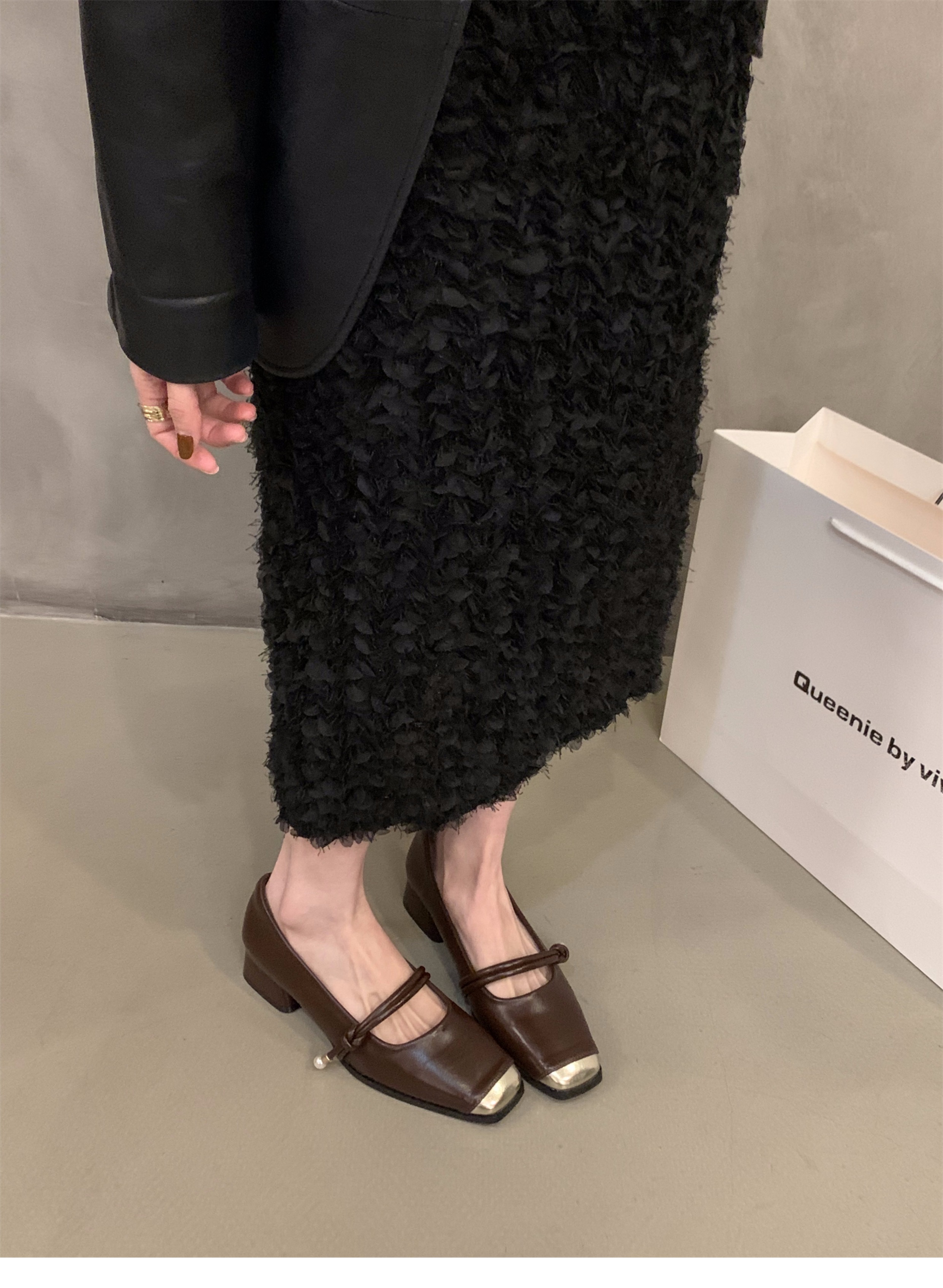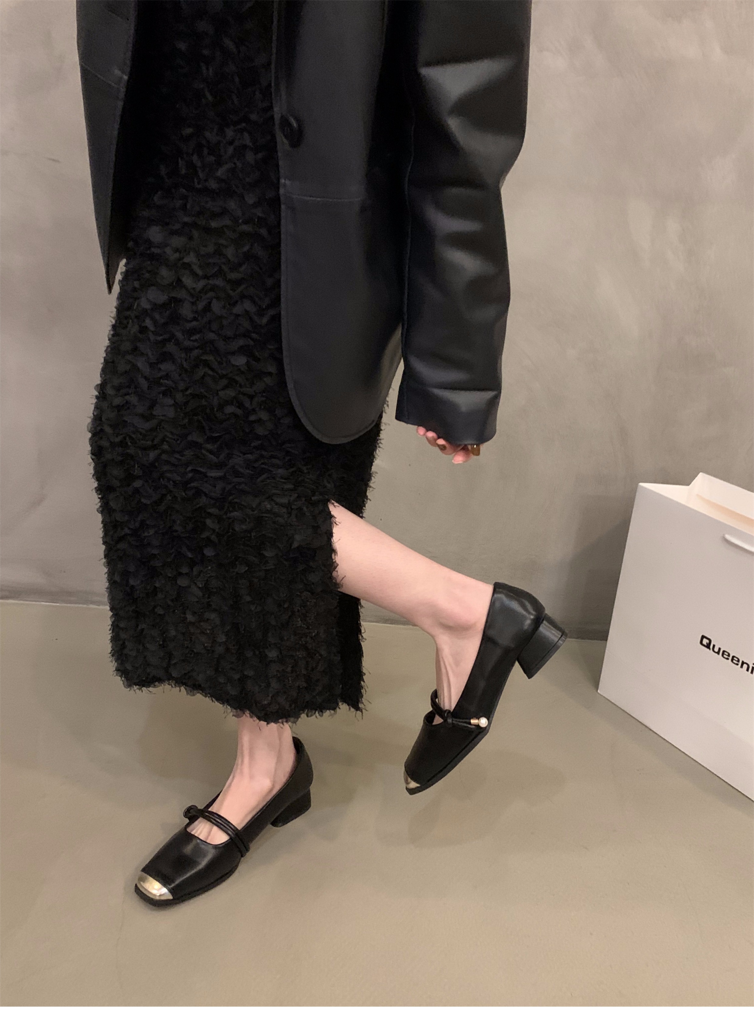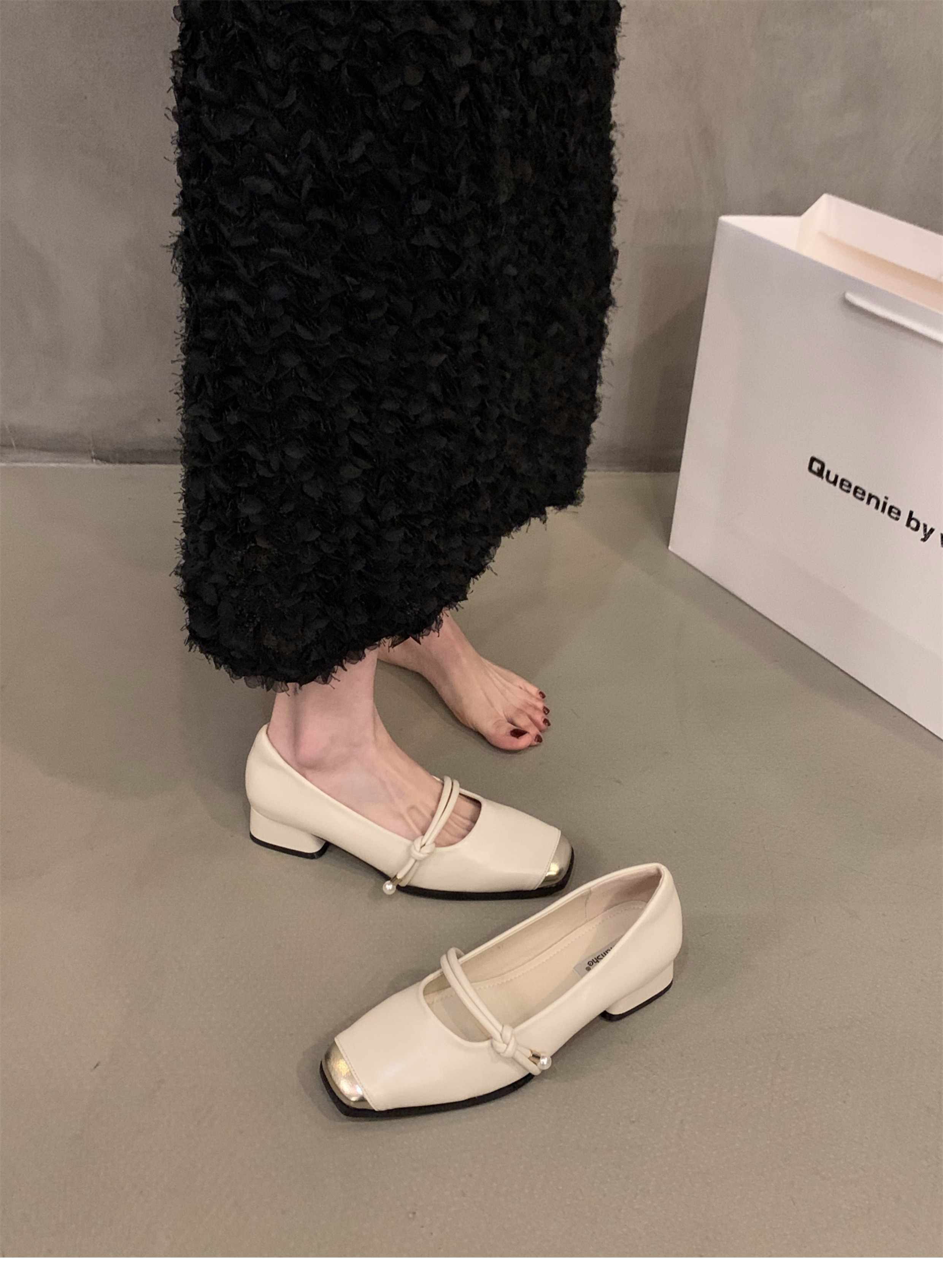 청키 힐 봄 달콤한 스타일 메리 제인 싱글 레이어 신발 여성 신발 2025 새로운 봄과 가을 프랑스 스타일 블랙 스퀘어 발가락 저녁 신발스토어 가기