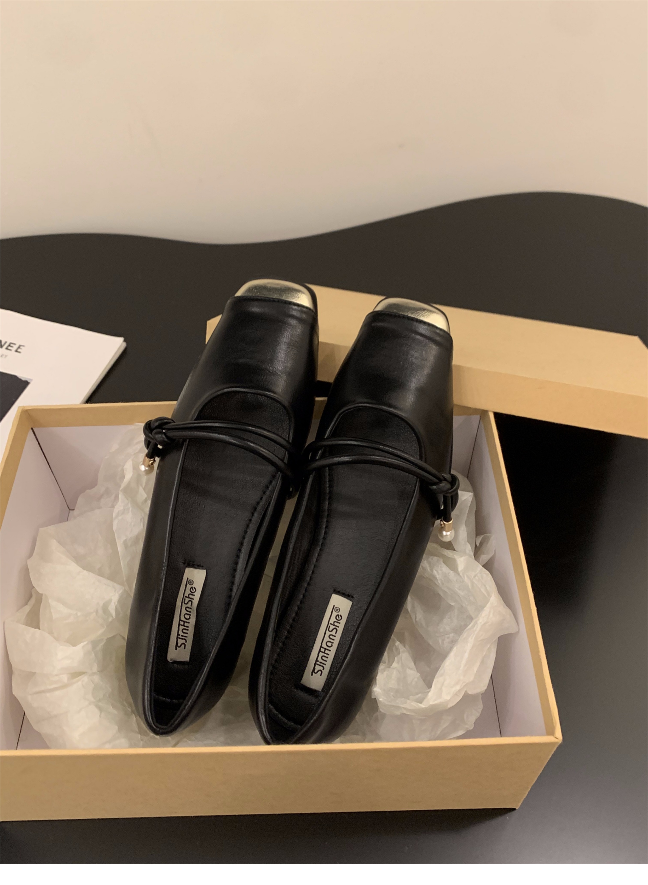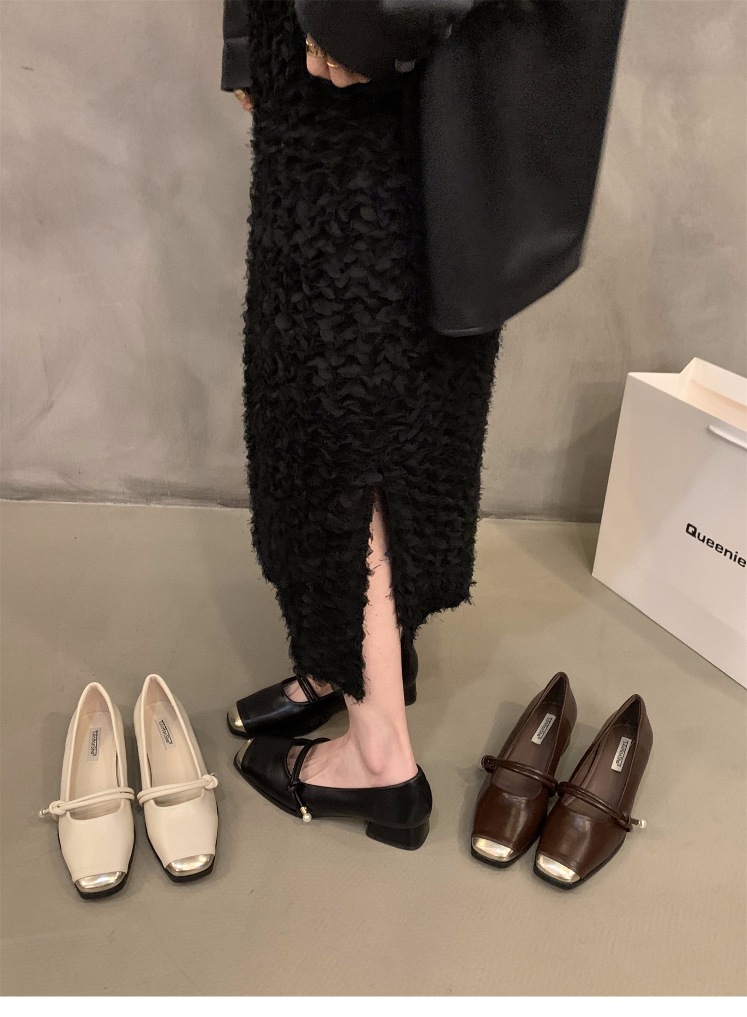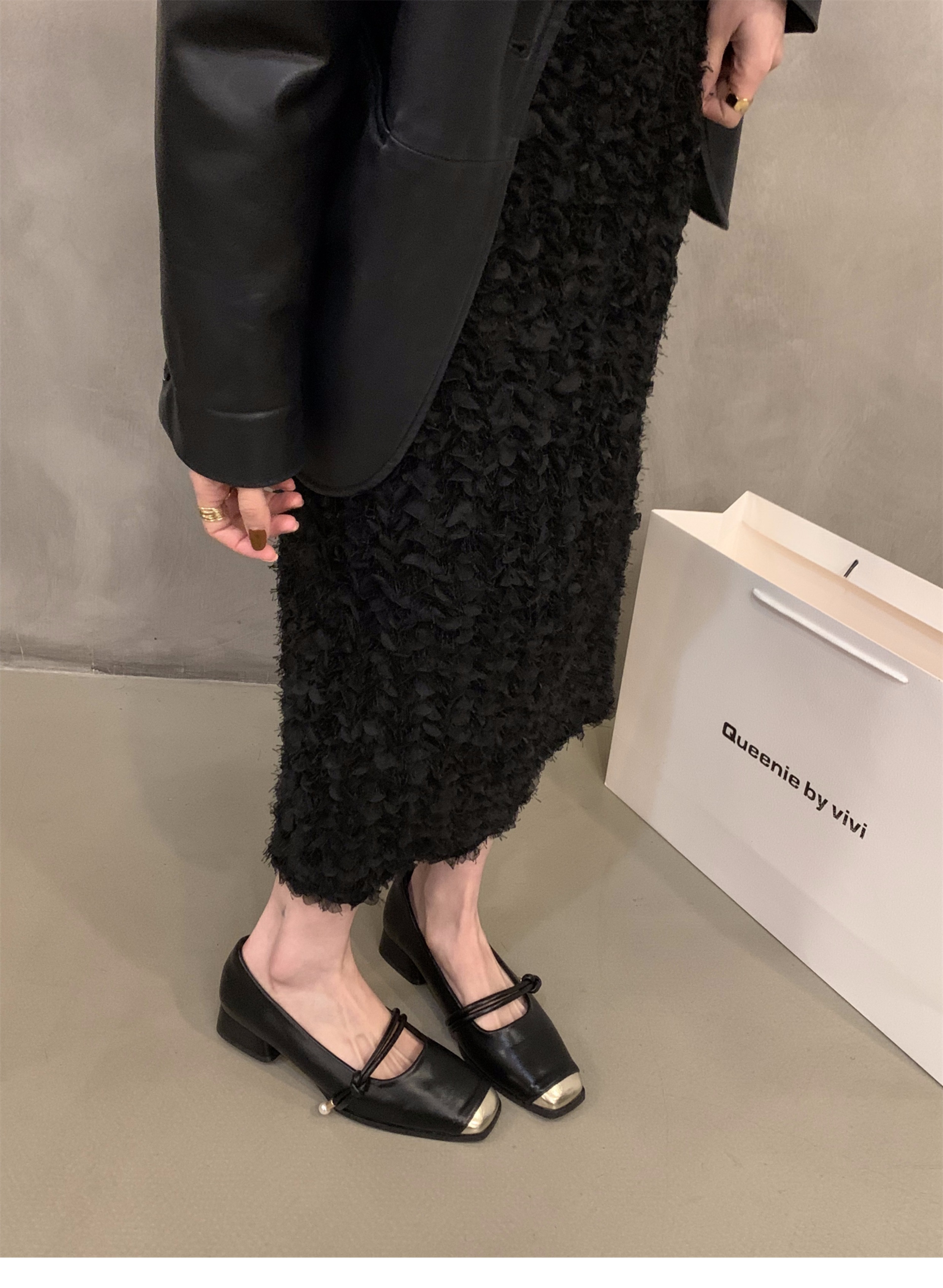 청키 힐 봄 달콤한 스타일 메리 제인 싱글 레이어 신발 여성 신발 2025 새로운 봄과 가을 프랑스 스타일 블랙 스퀘어 발가락 저녁 신발스토어 가기