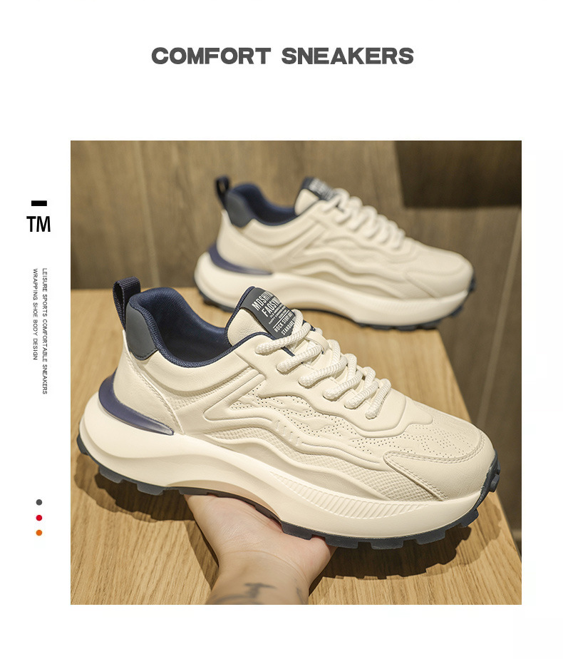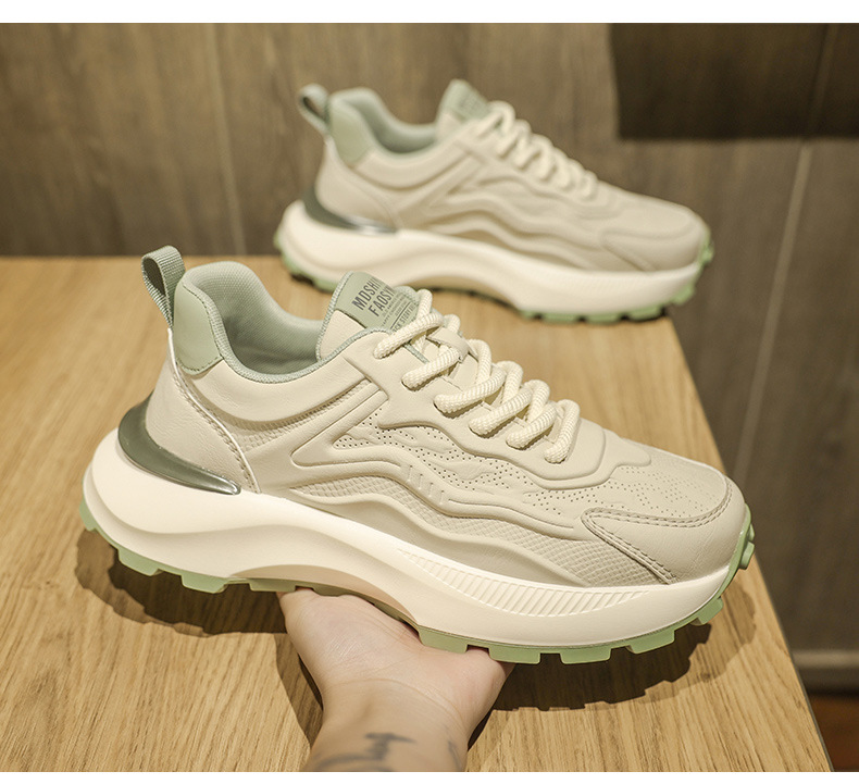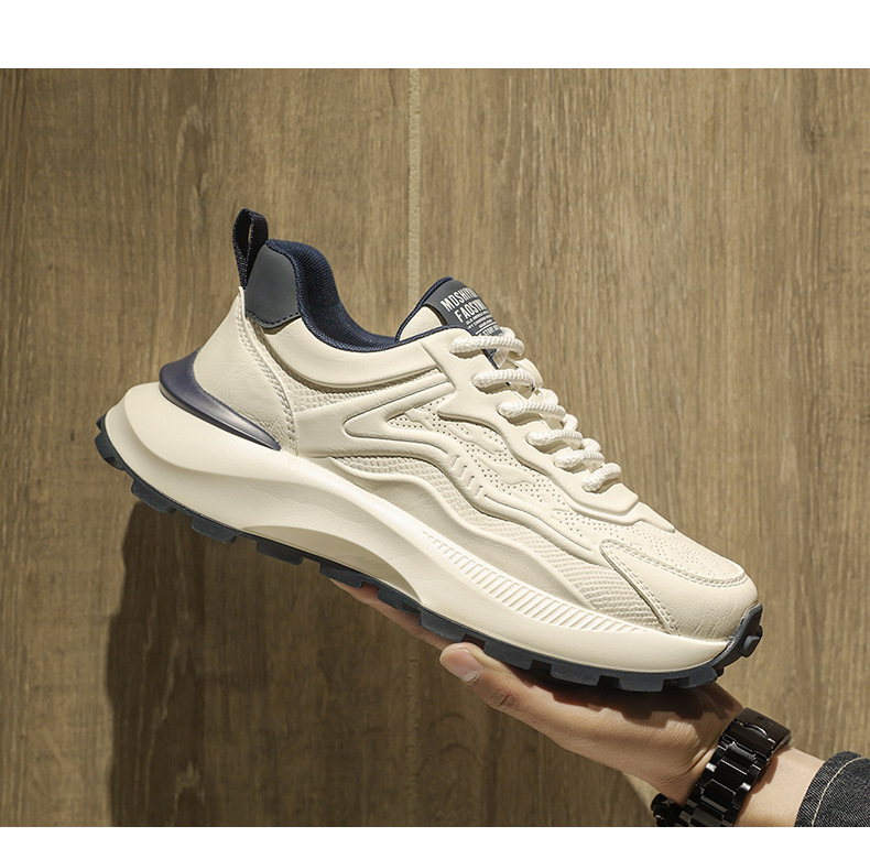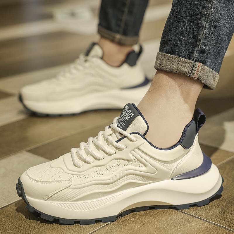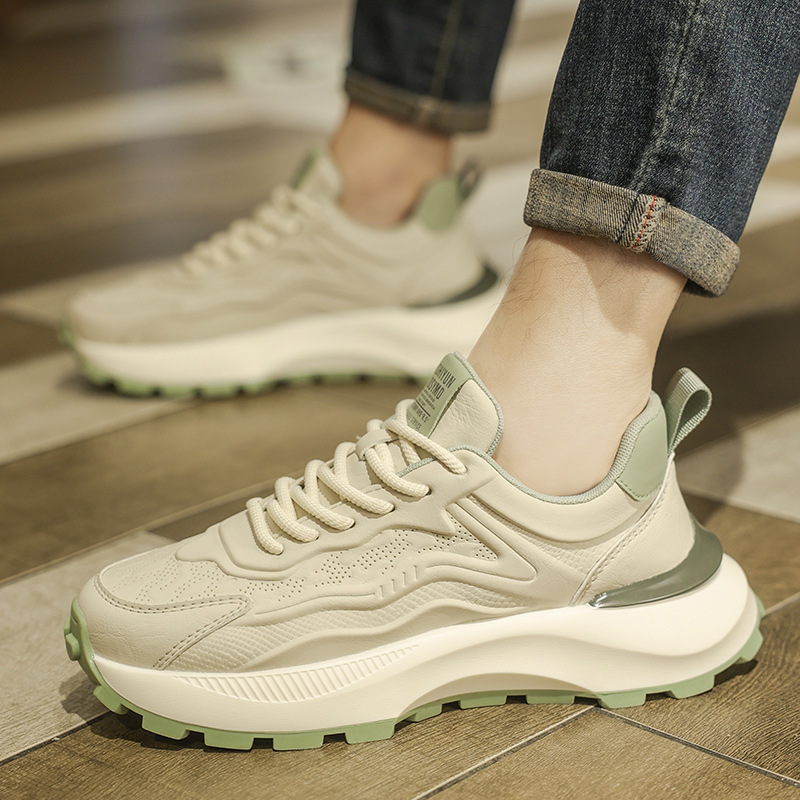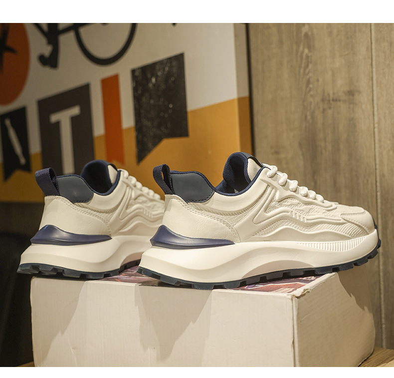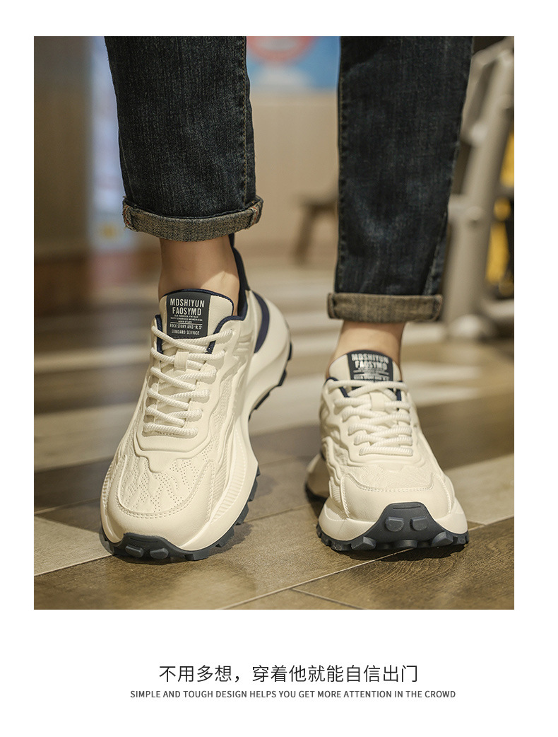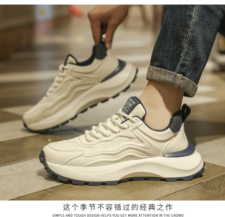 남성 신발 2025 봄 새로운 두꺼운 단독 토레 신발 남성 가죽 스포츠 화이트 신발 청소년 캐주얼 트렌디 신발