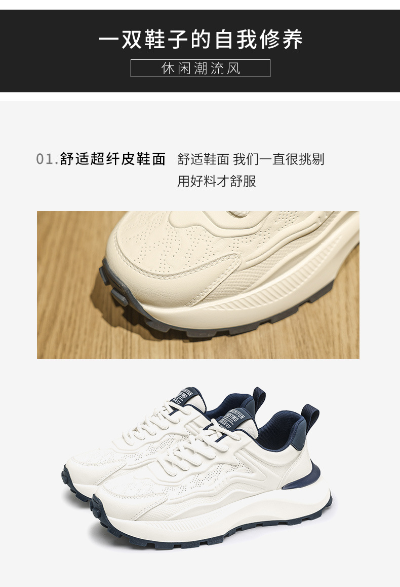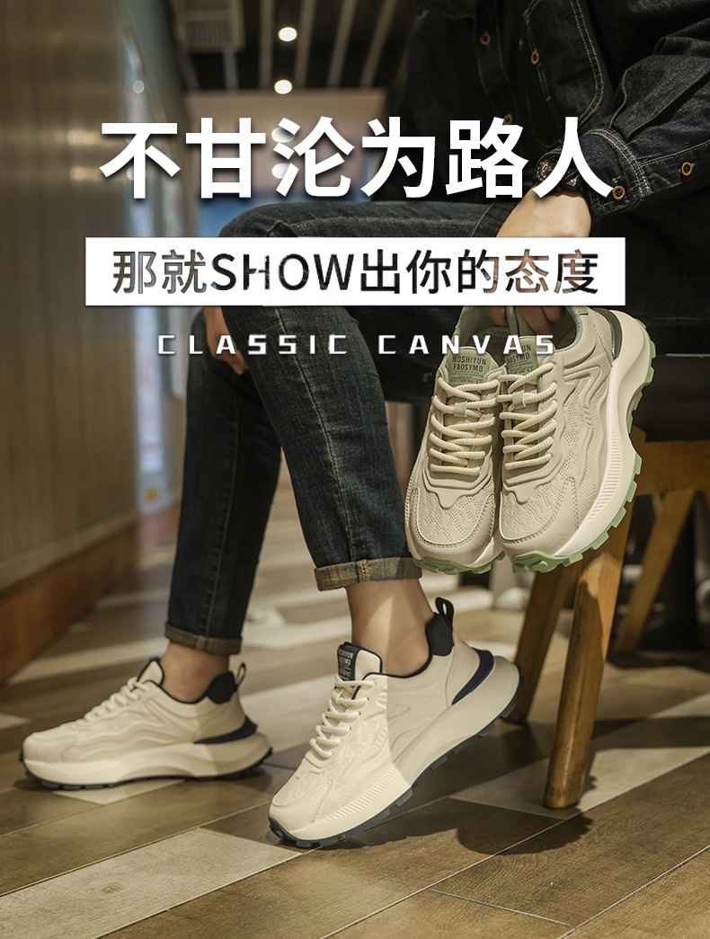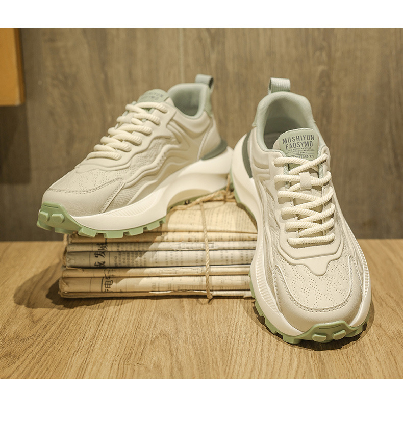 남성 신발 2025 봄 새로운 두꺼운 단독 토레 신발 남성 가죽 스포츠 화이트 신발 청소년 캐주얼 트렌디 신발스토어 가기