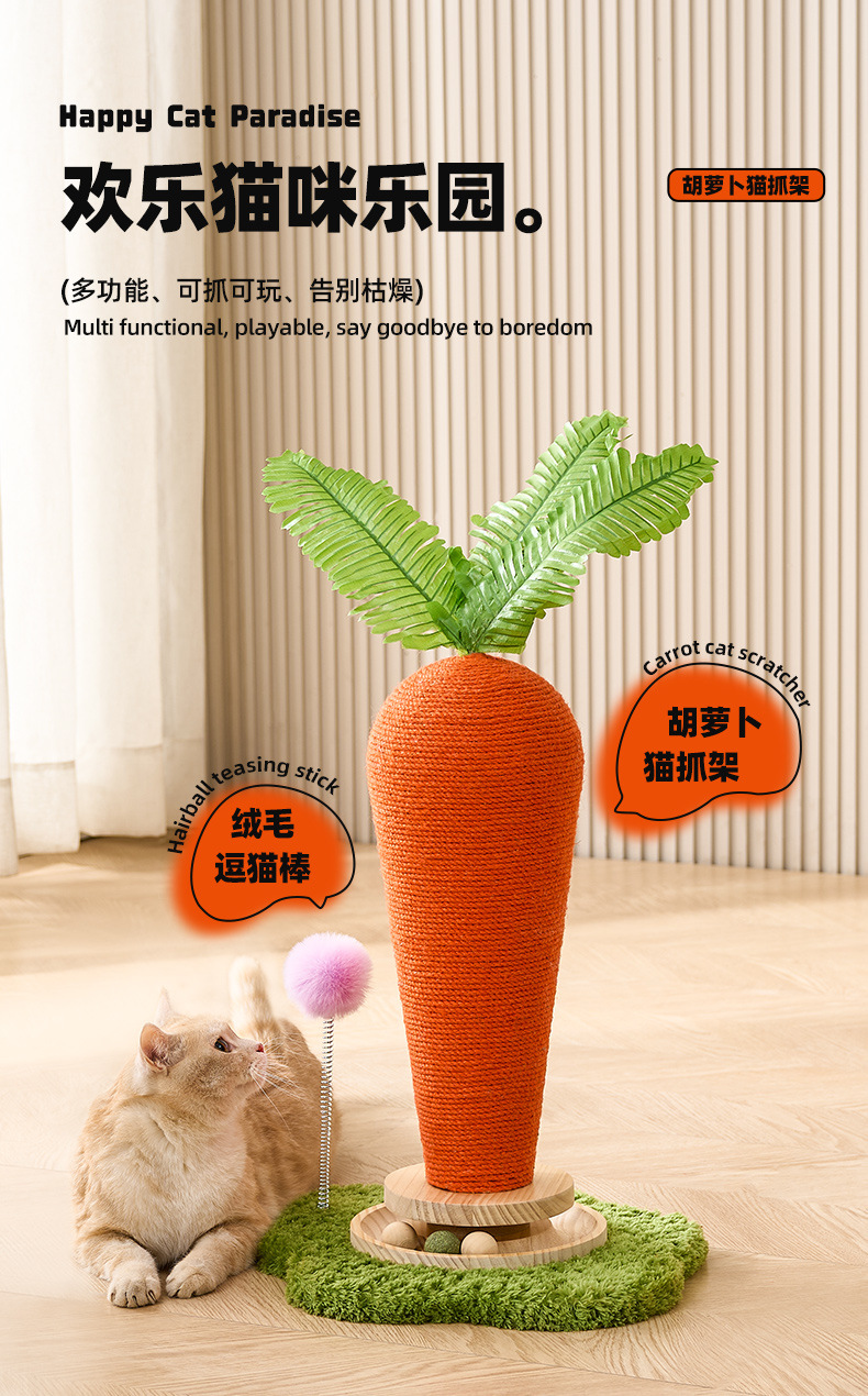 사이 잘 고양이 긁는 보드 당근 고양이 긁는 열 고양이 등반 랙 통합 내마모성 스크랩 프리 수직 발톱 그라인더 고양이 장난감