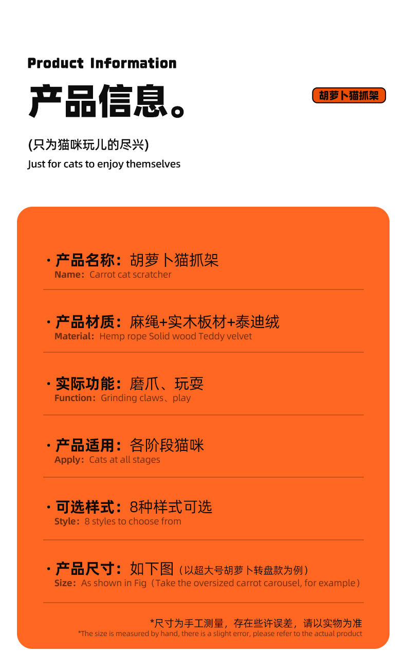 • 당근 고양이 긁는 기둥 - 특대형