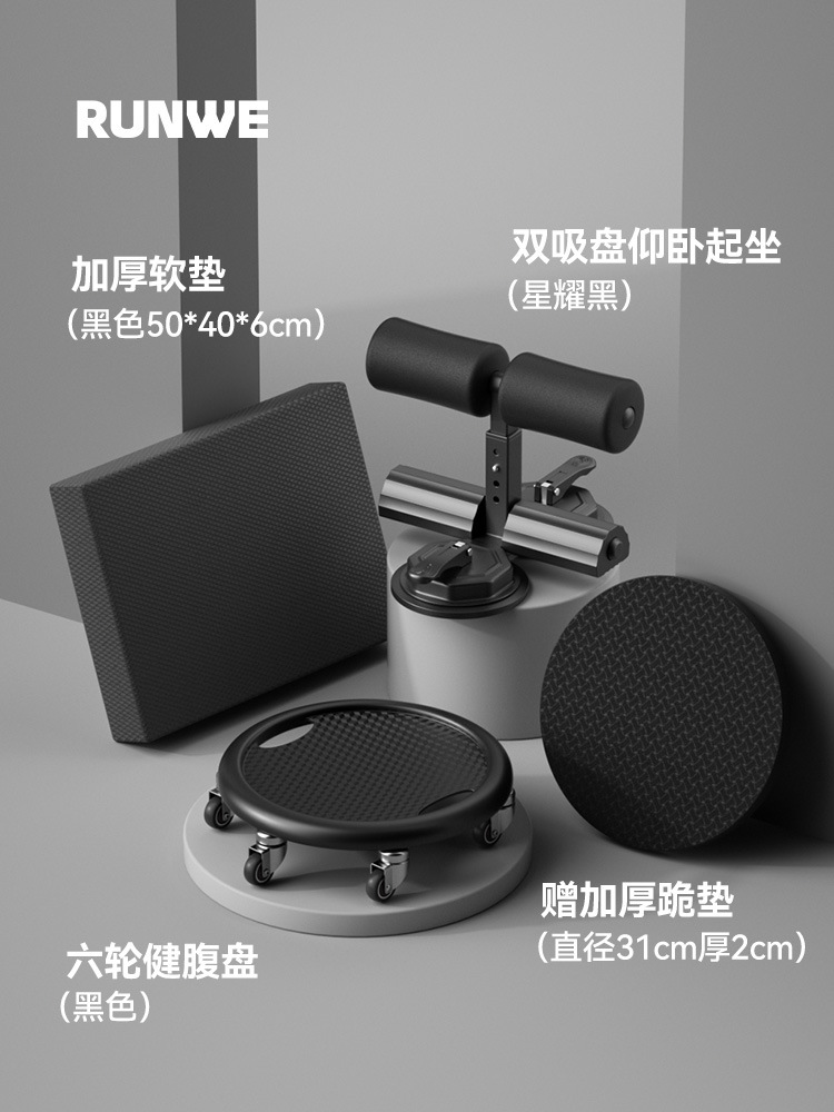 • [조끼라인 3종세트] 블랙 6륜 슬라이드 + 대형 패드 + 윗몸일으키기 보조기구