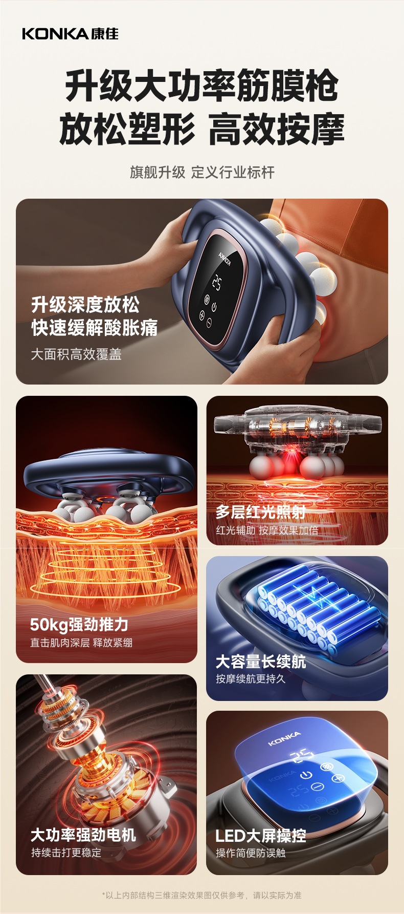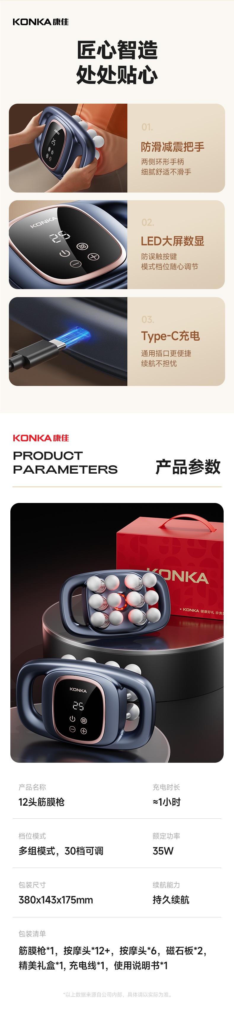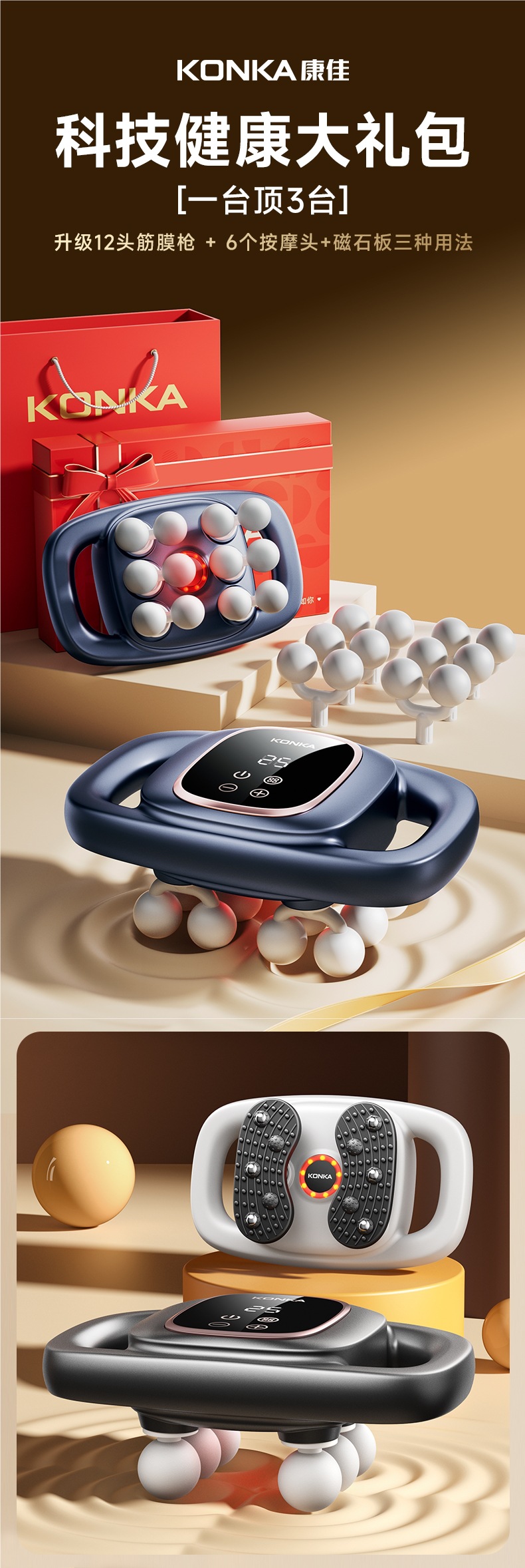 Konka 12 6 머리 Fascia 총 근육 마사지 기기 전기 큰 힘 전신 송아지 이완 멀티 헤드 마사지 건스토어 가기